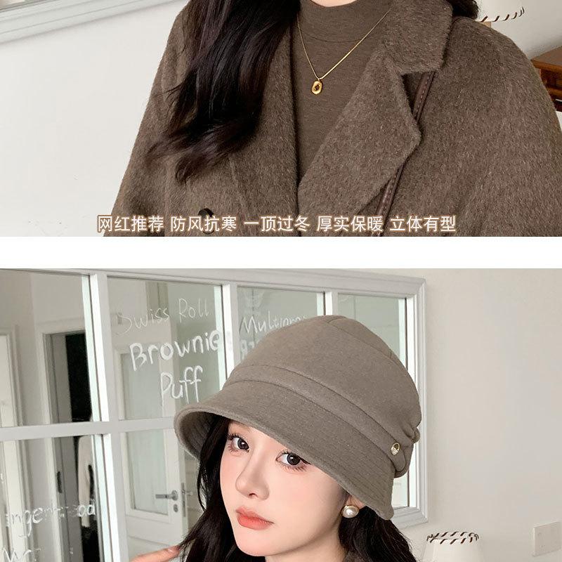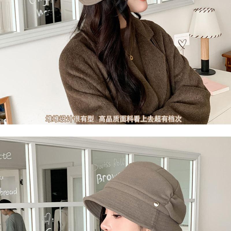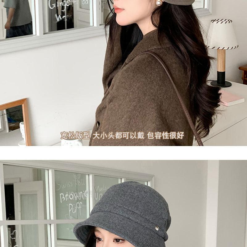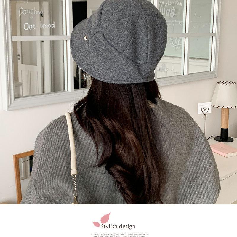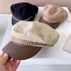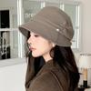 Gorro Sombrero de Mujer Visera Logotipo Metálico Moda Boina de Mujer Adelgazante Facial Otoño-Invierno Versátil Sombrero Ecuestre Estilo Extranjero Sombrero Casual