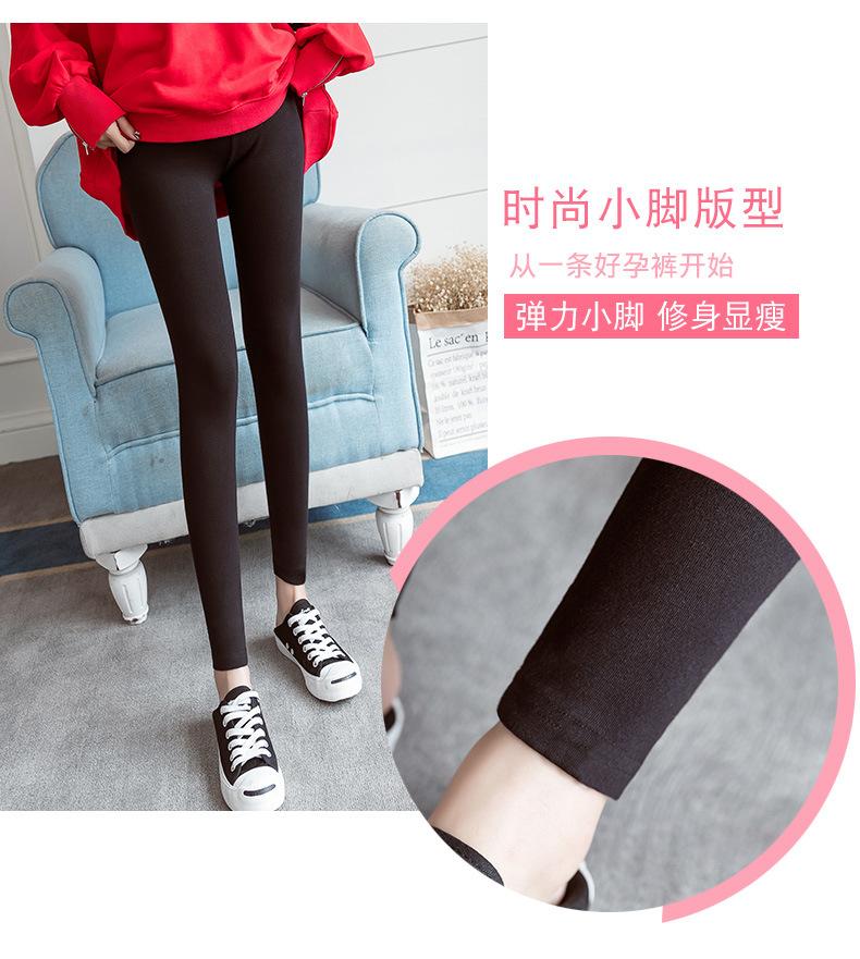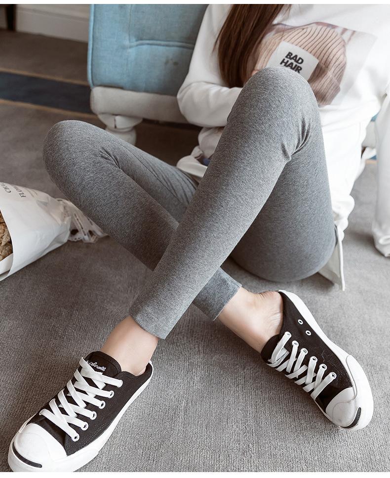 Leggings de Maternidad para Primavera y Otoño Ropa Exterior Color Puro Versátil Elástico Look Adelgazante Entrepierna que no se Cae Pantalones de Soporte para el Vientre durante el Embarazo