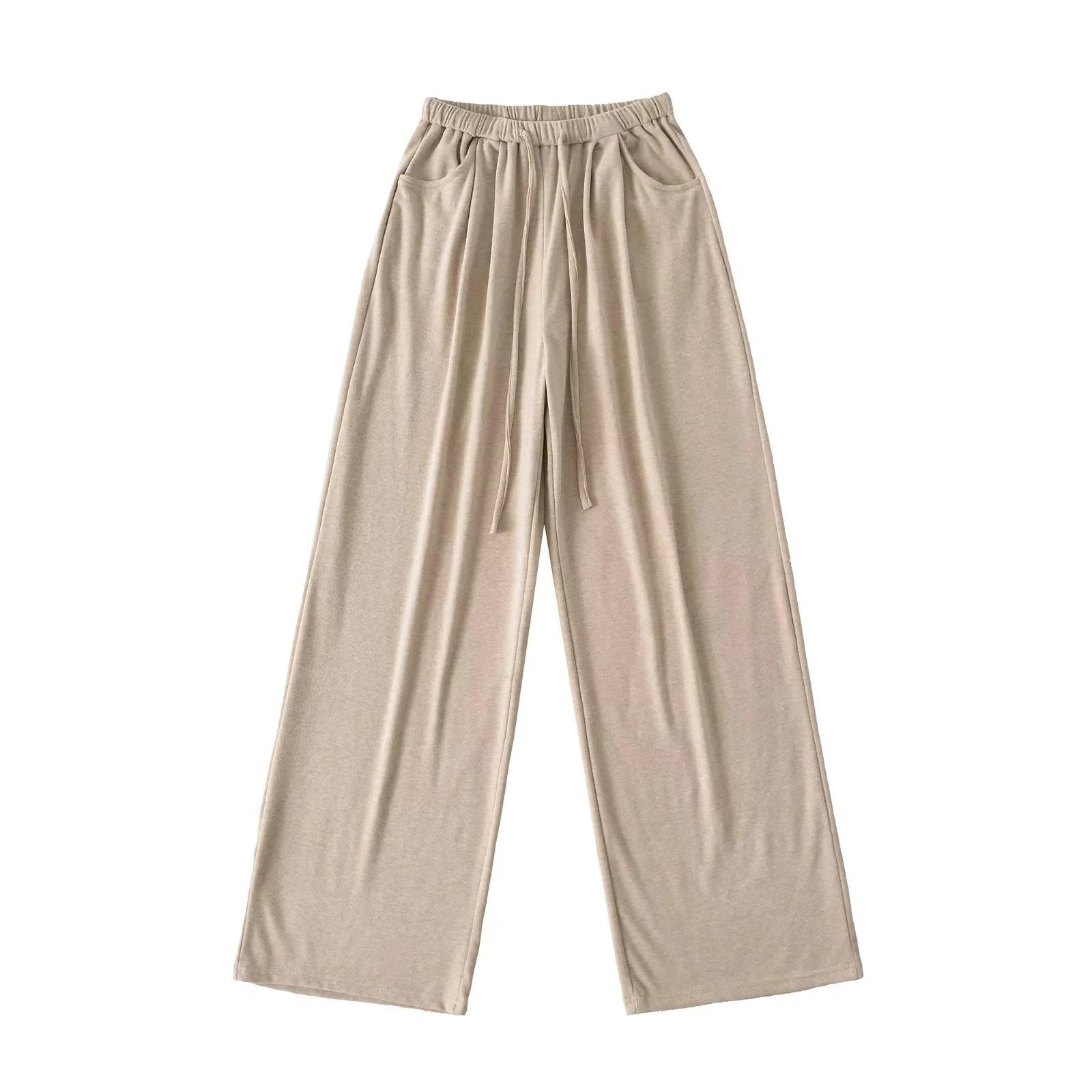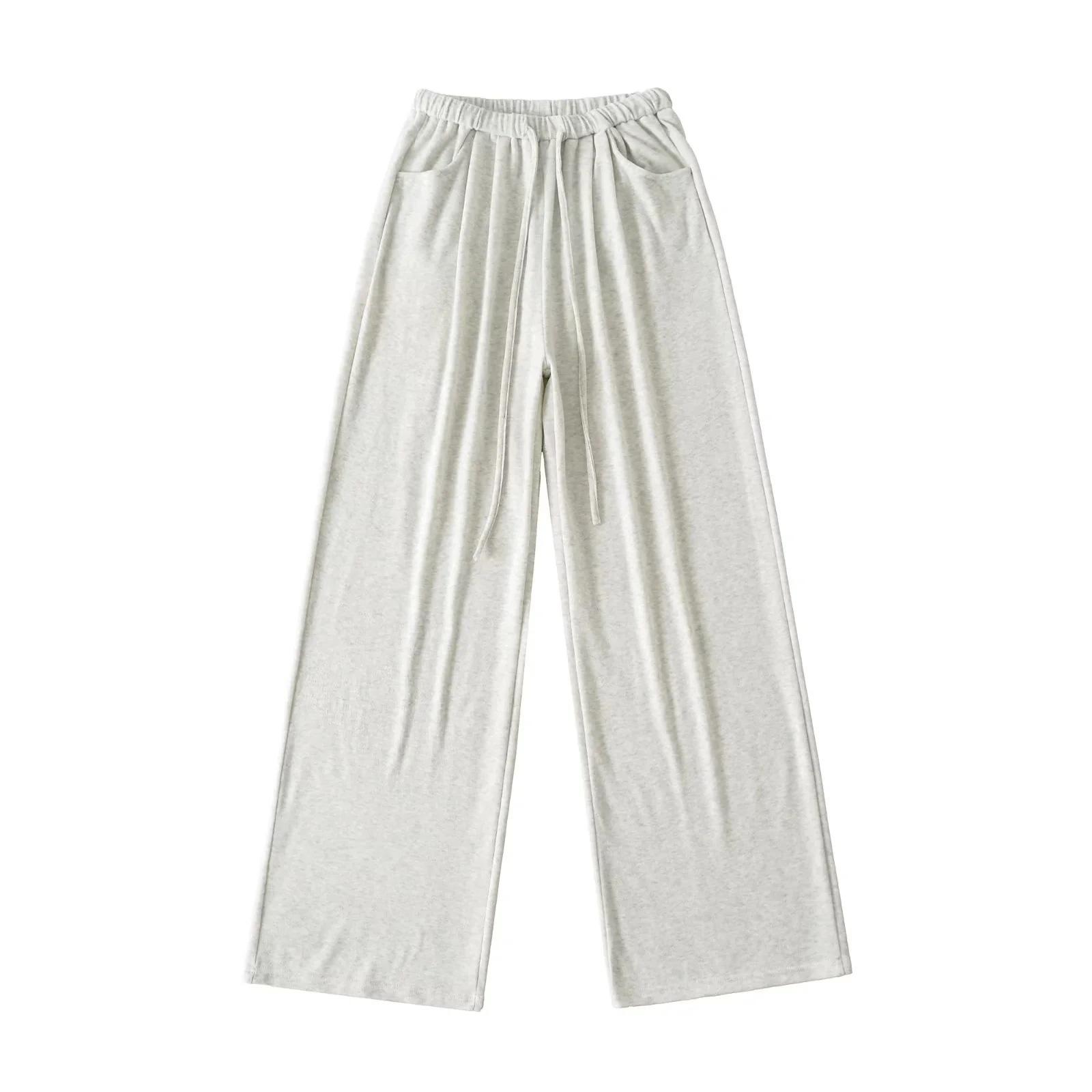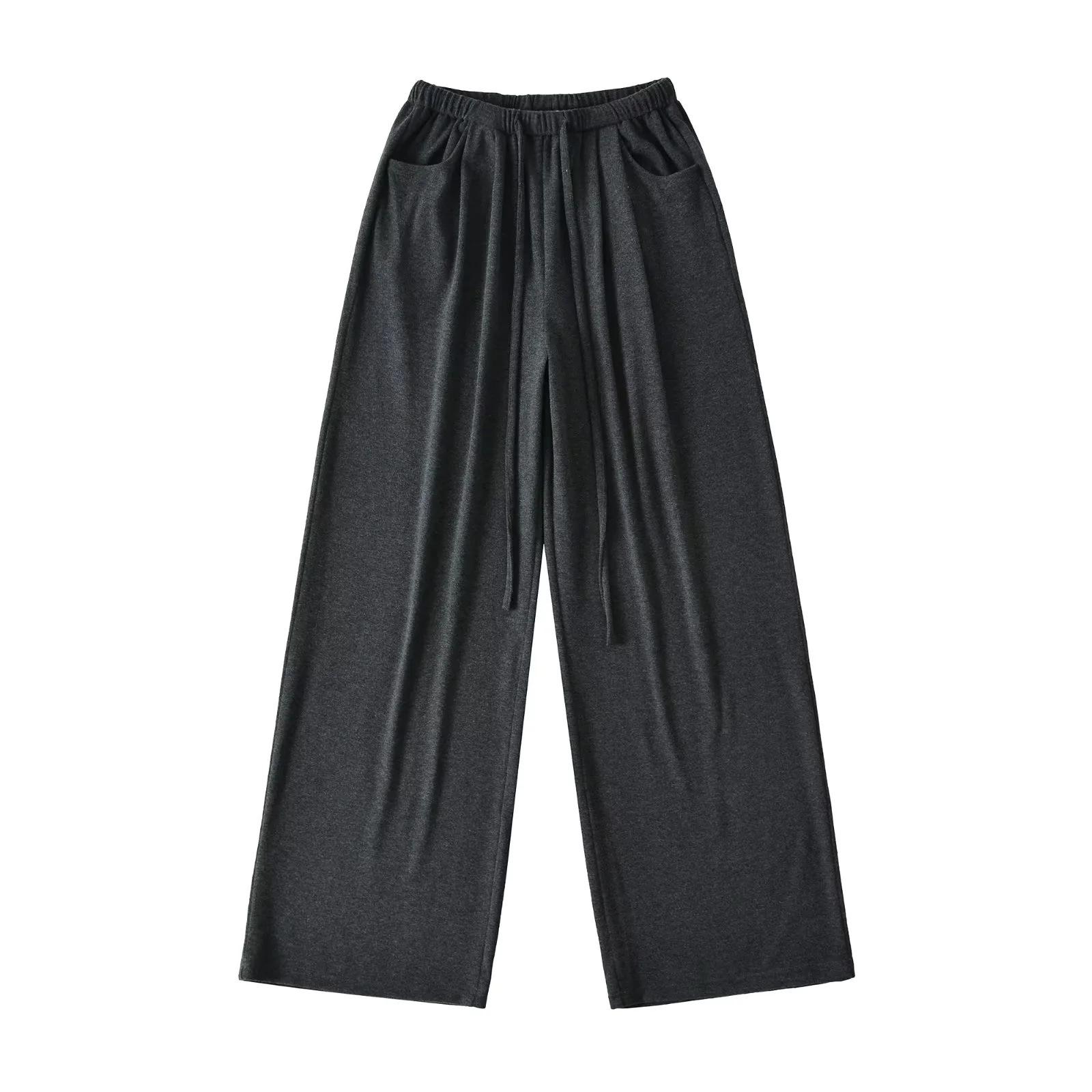 Pantalones casuales de cintura alta nuevos de primavera y otoño 2025 para mujer, pantalones grises holgados y adelgazantes de pierna ancha, pantalones casuales rectos hasta el suelo