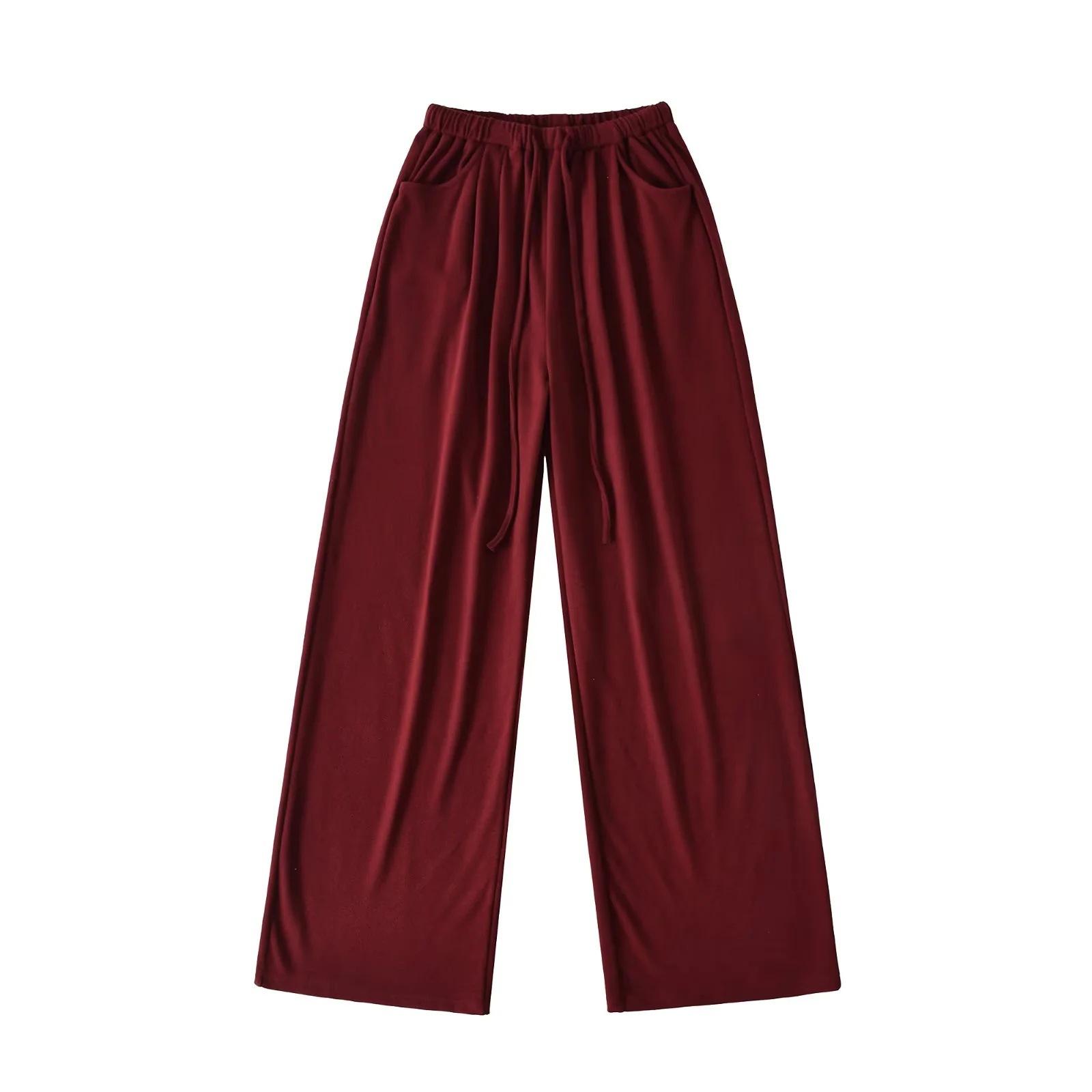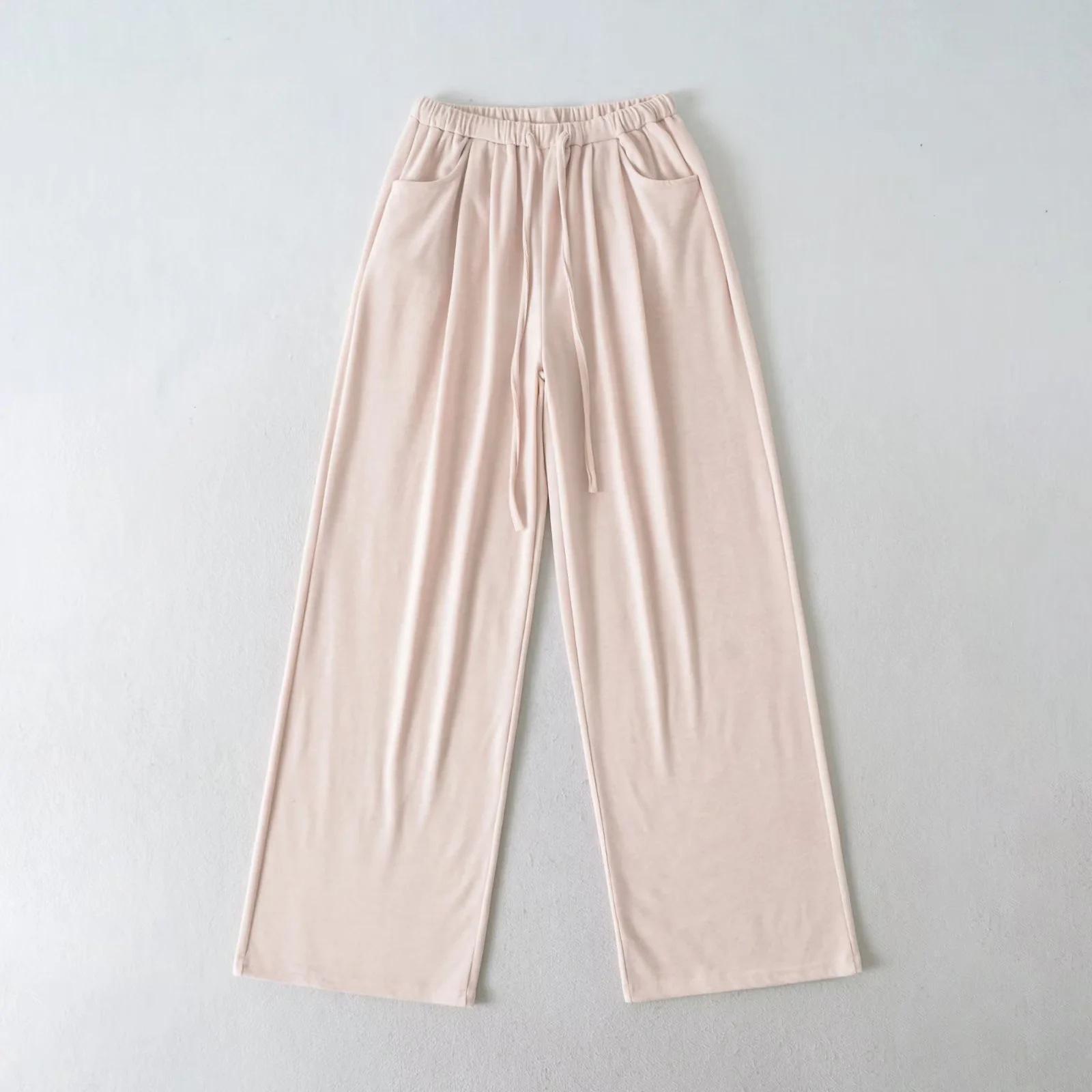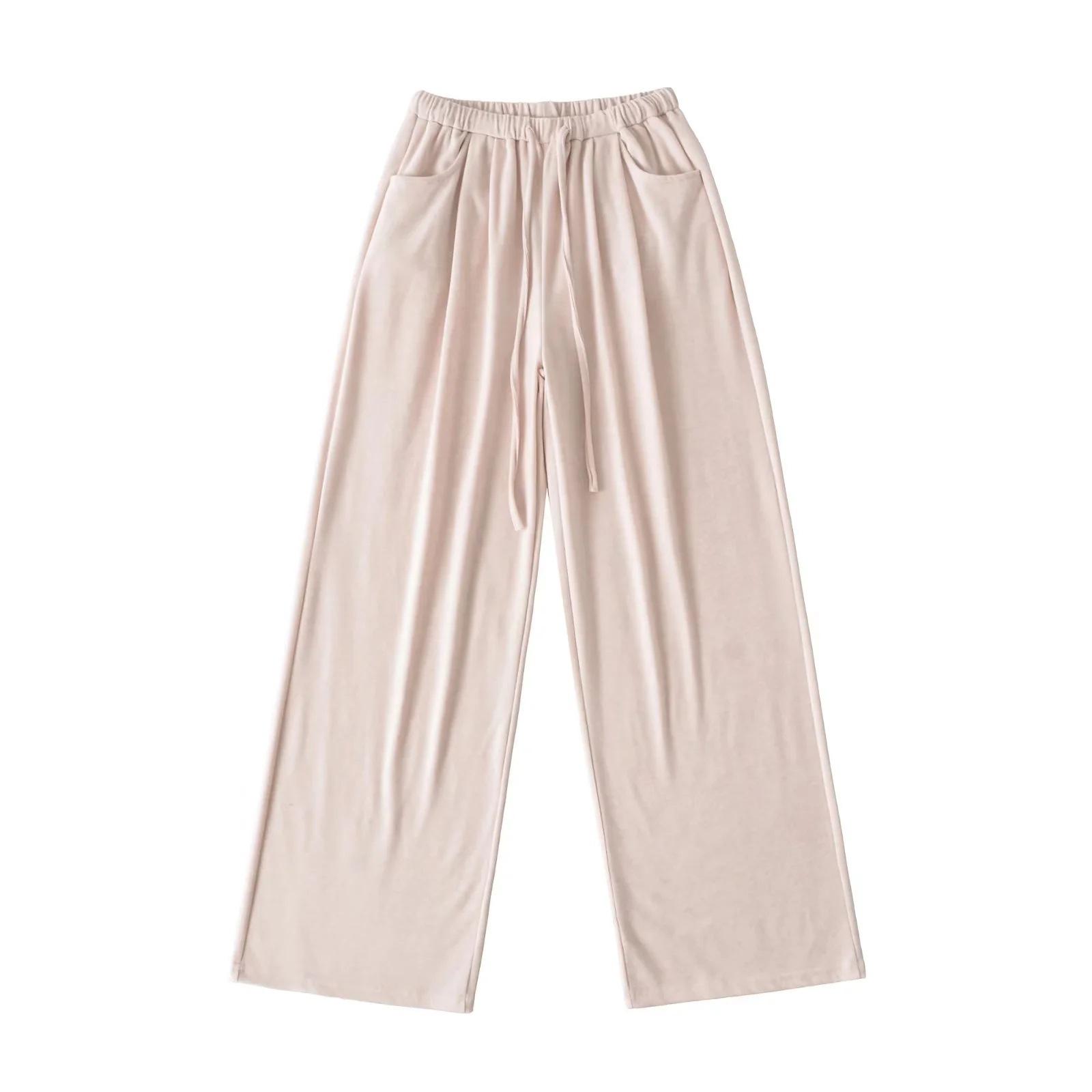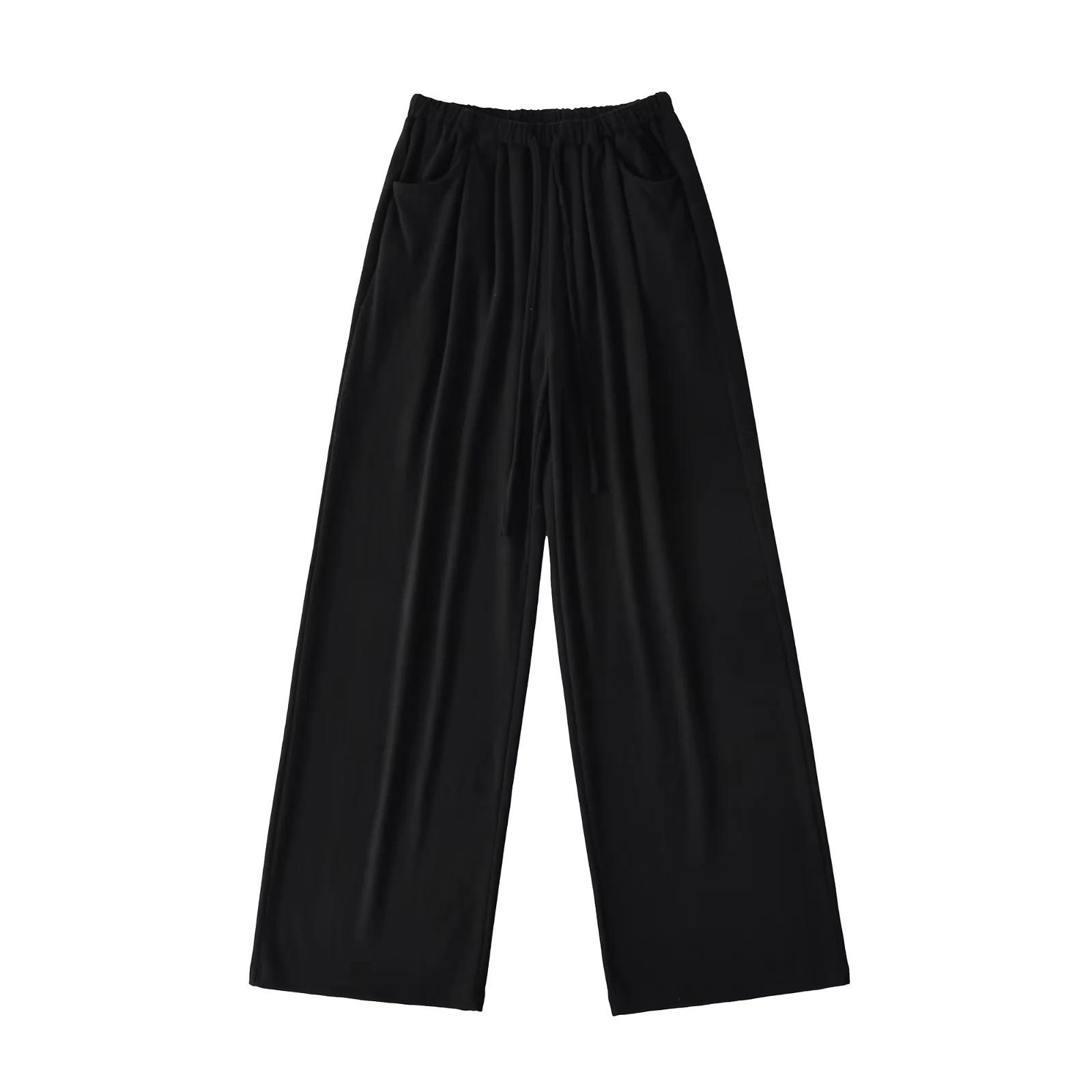 Pantalones casuales de cintura alta nuevos de primavera y otoño 2025 para mujer, pantalones grises holgados y adelgazantes de pierna ancha, pantalones casuales rectos hasta el suelo