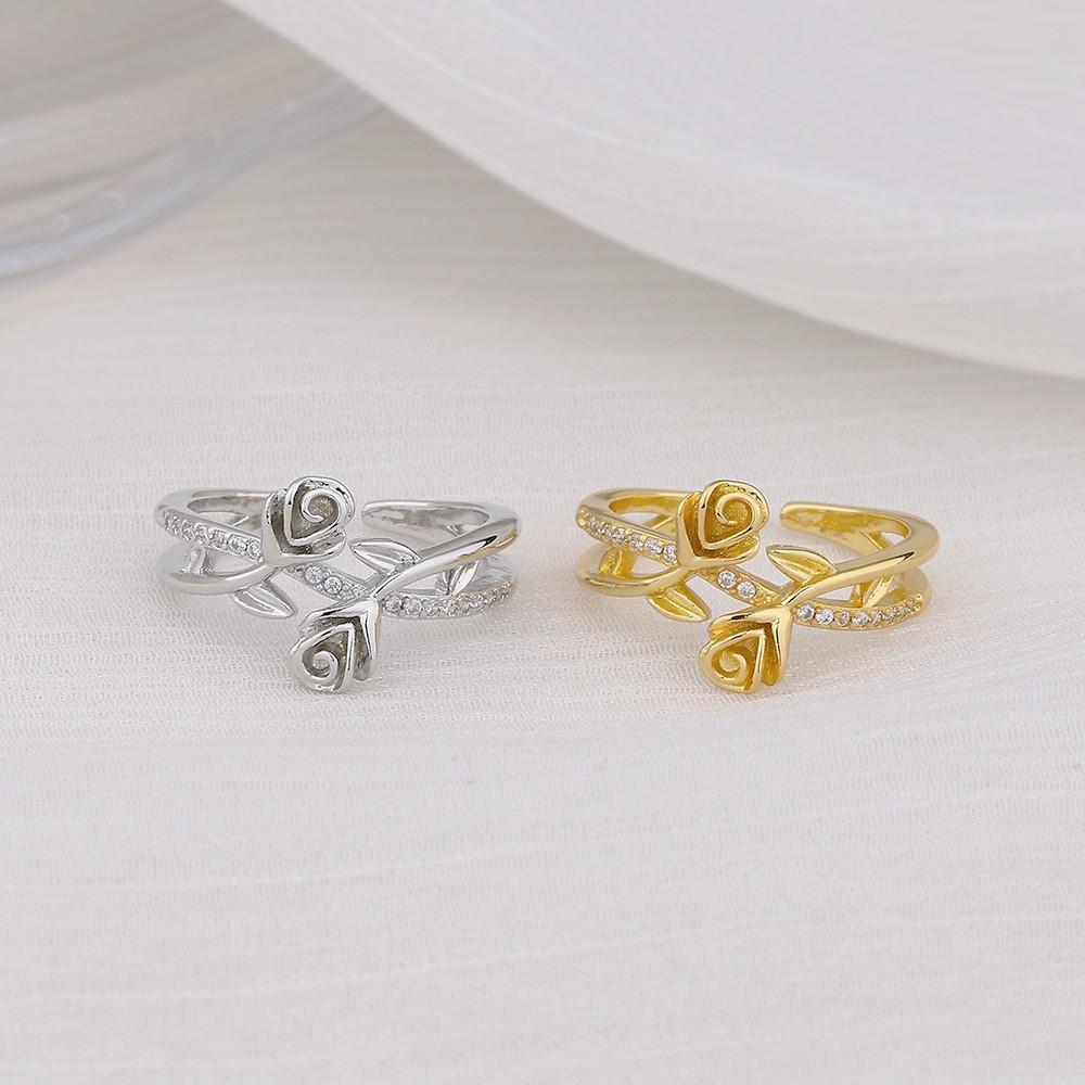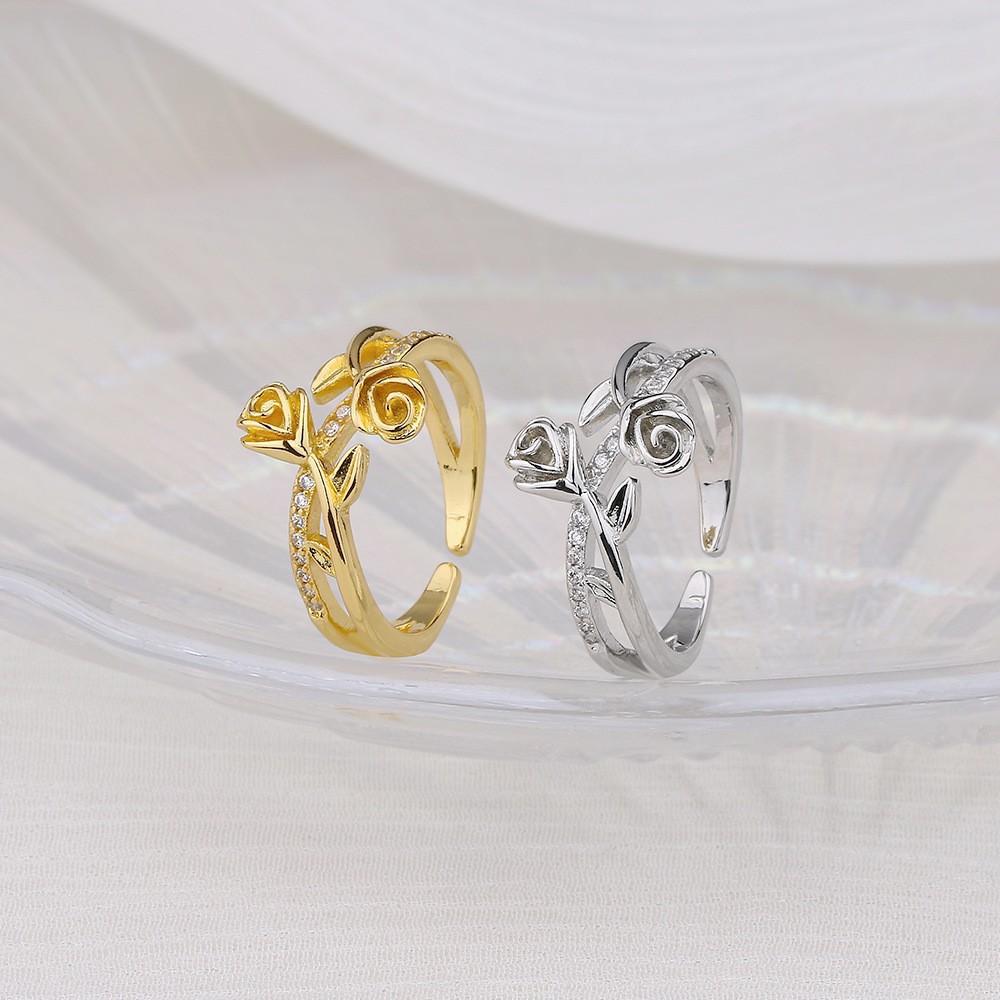 Anillo de Flor de Diamante para Mujer Nuevo Estilo Transfronterizo Estilo Francés Personalizado Doble Capa Ajustable Anillo Rosa Gemelo
