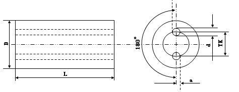 Diagrama esquemático de barra redonda de doble agujero y especificaciones de material en bruto: