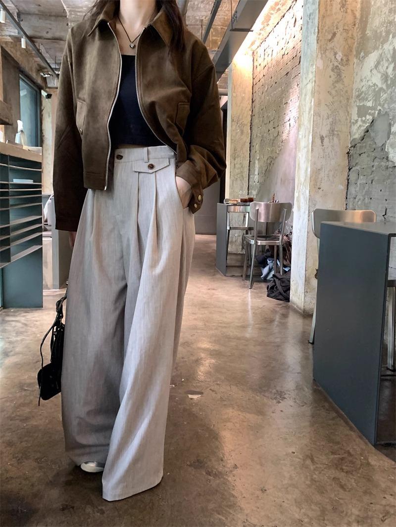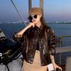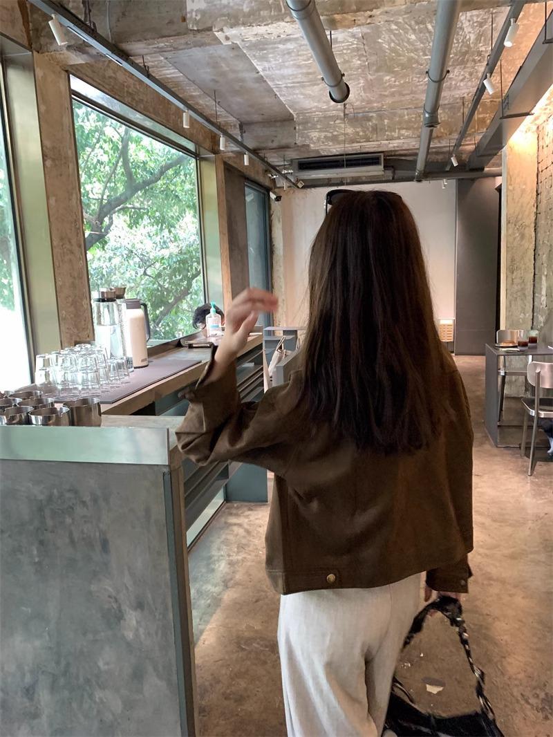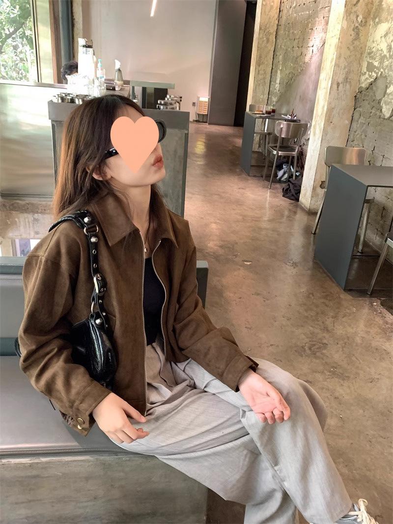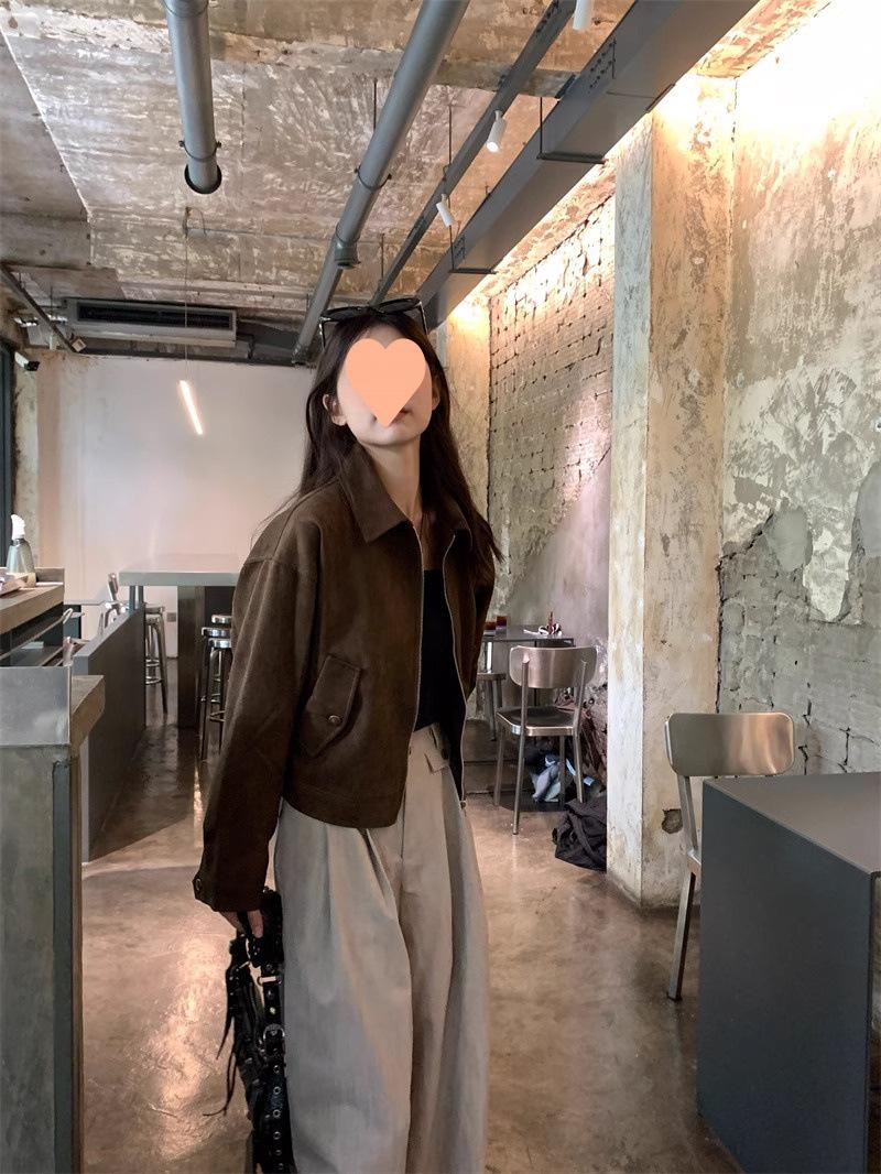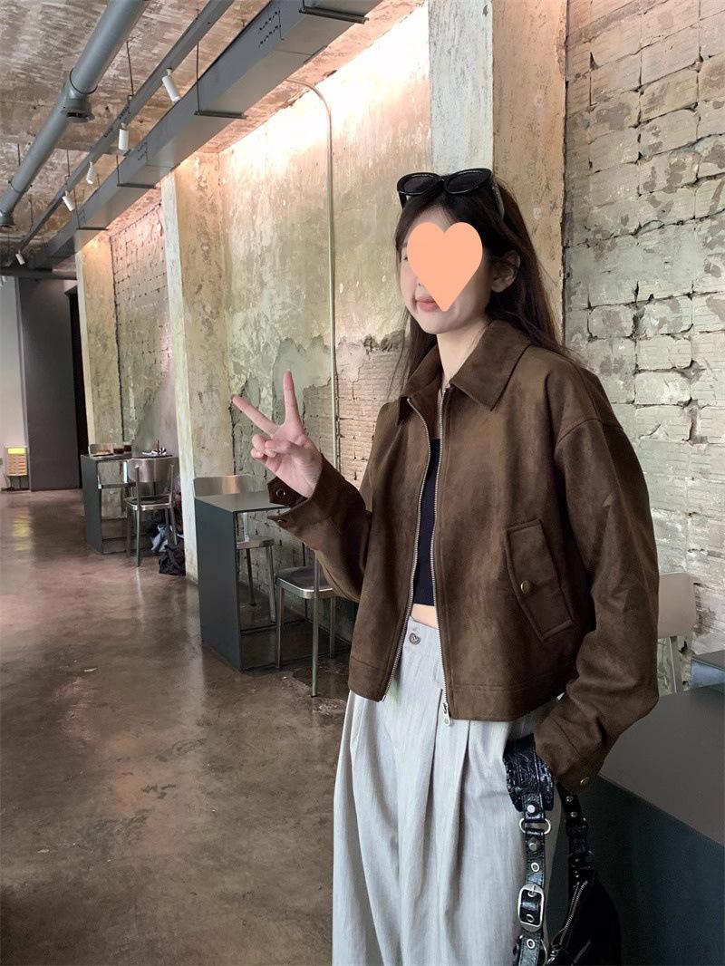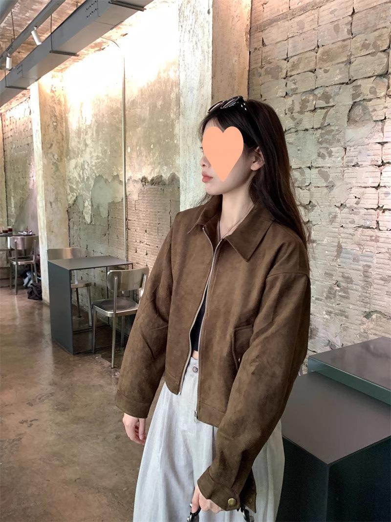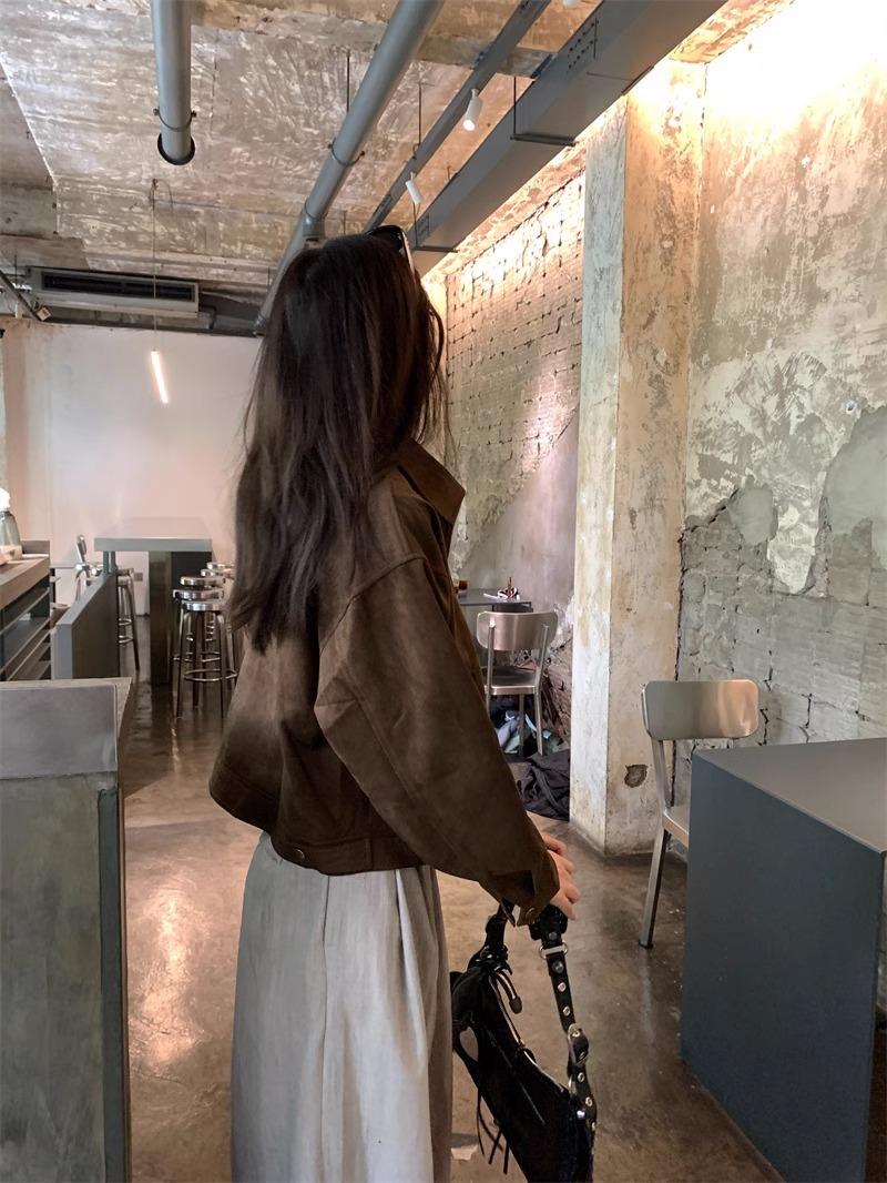 Chaqueta de Gamuza Color Café Dulce y Cool para Mujer Primavera y Otoño Nueva Retro Nicho Corta Top Chaqueta Petite