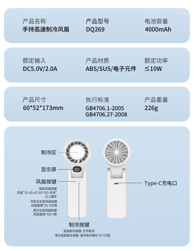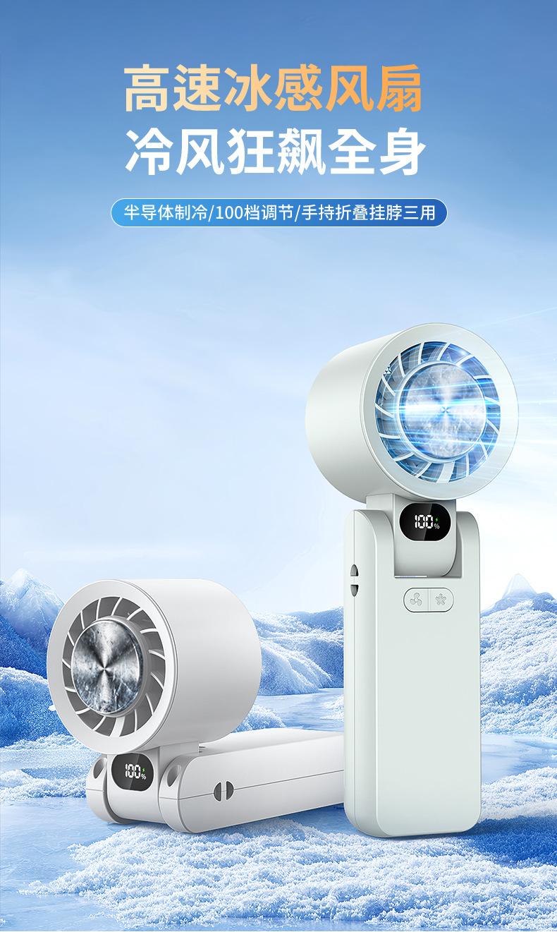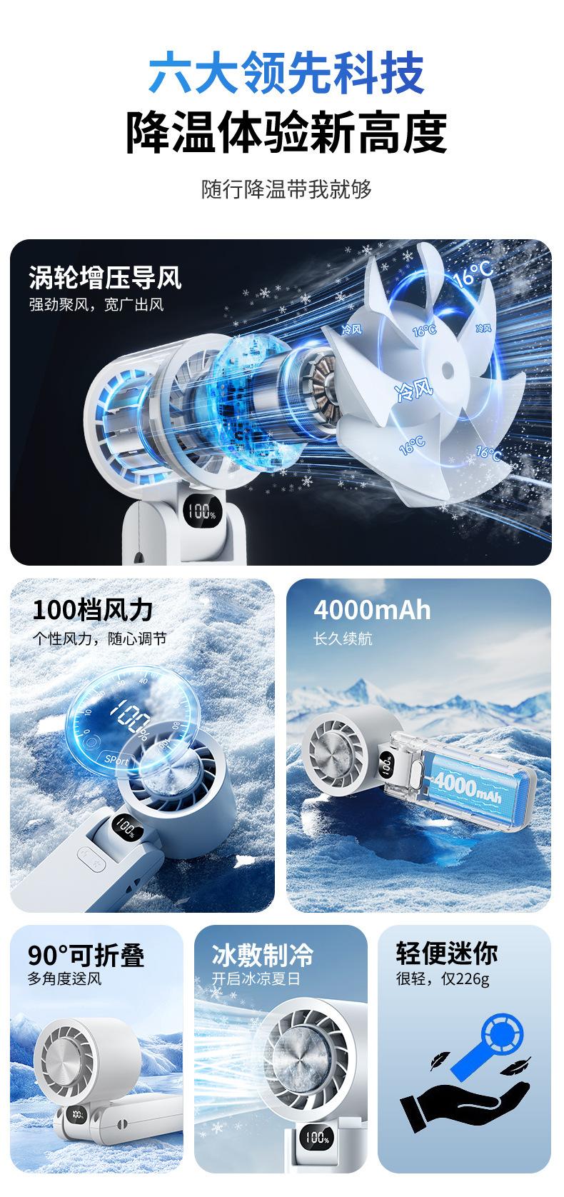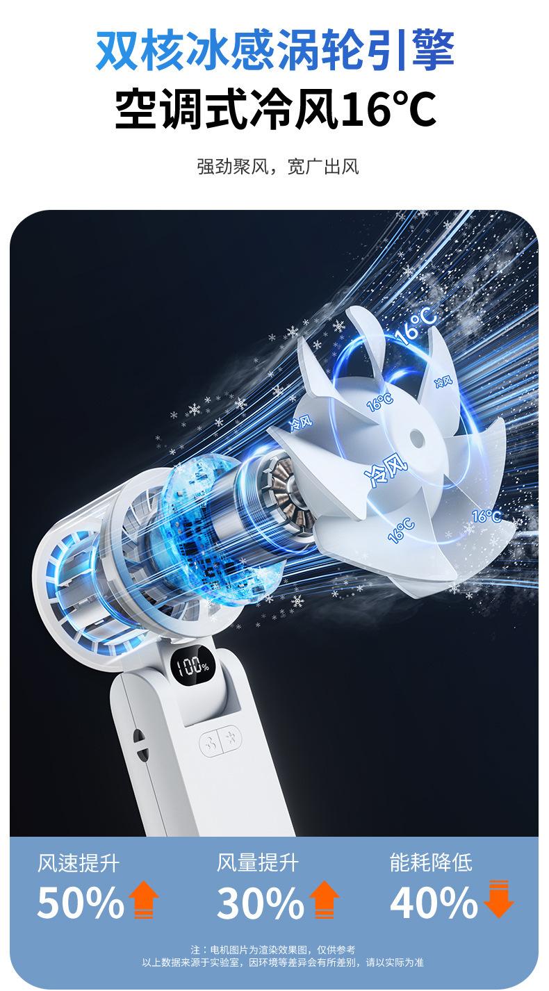 Ventilador Plegable de Enfriamiento por Hielo Transfronterizo de Alta Velocidad con Control de 100 Velocidades Ventilador de Enfriamiento Mini Ventilador de Mano USB para Exteriores Venta al por Mayor