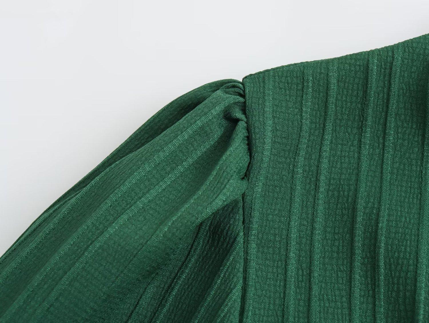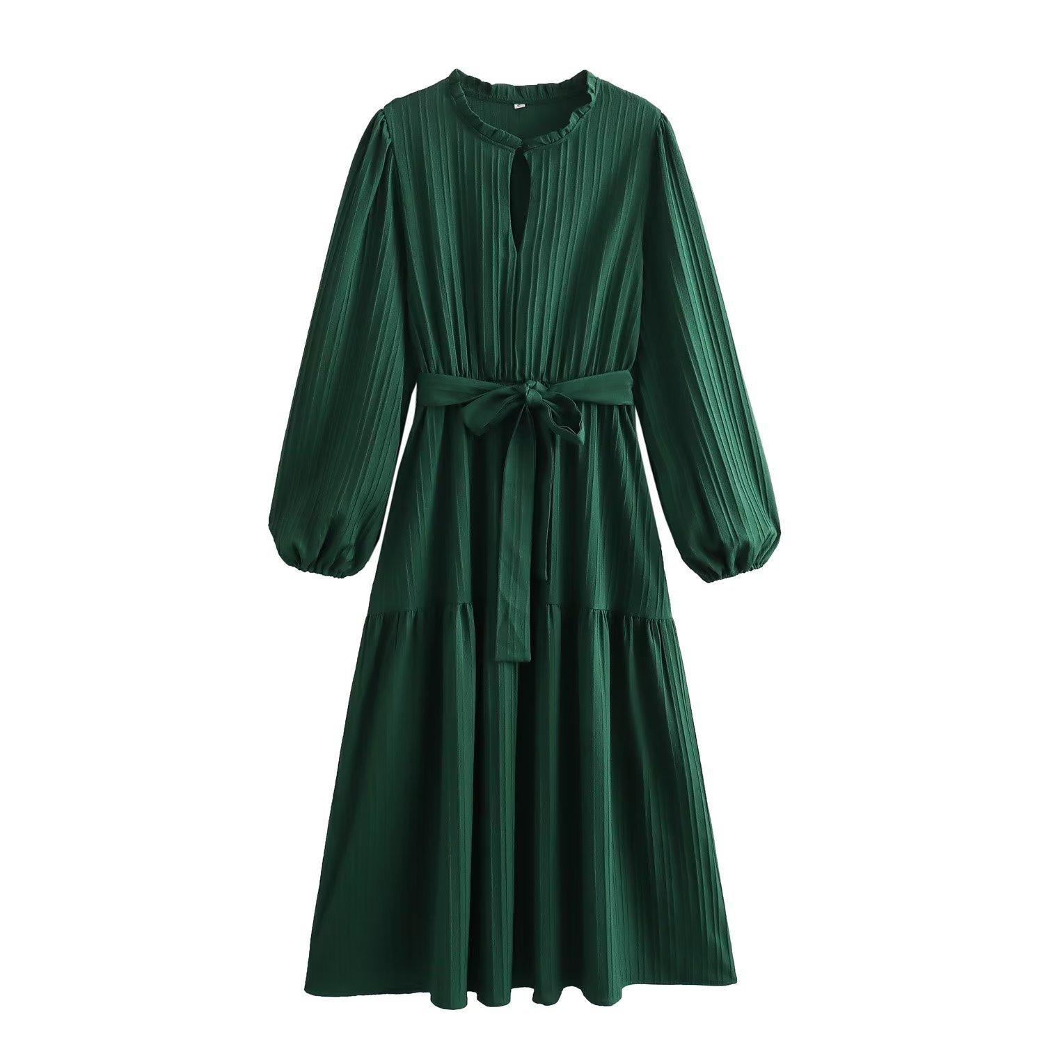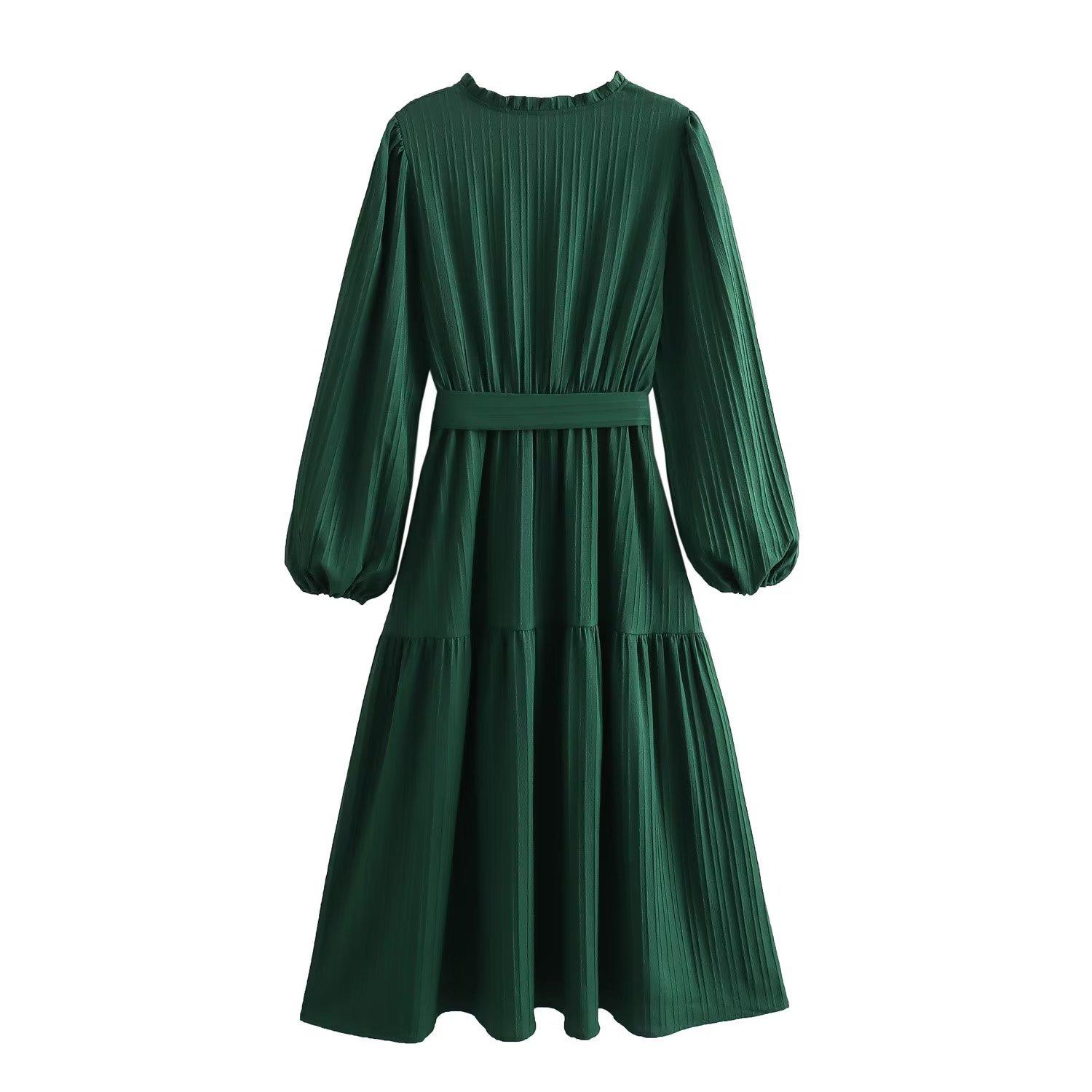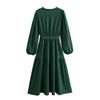 Venta al por mayor 2023 otoño nuevo estilo europeo y americano ropa de mujer verde temperamento vestido de manga larga