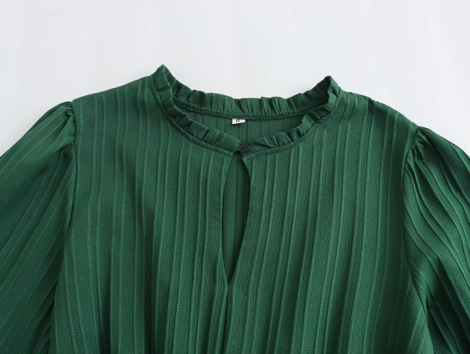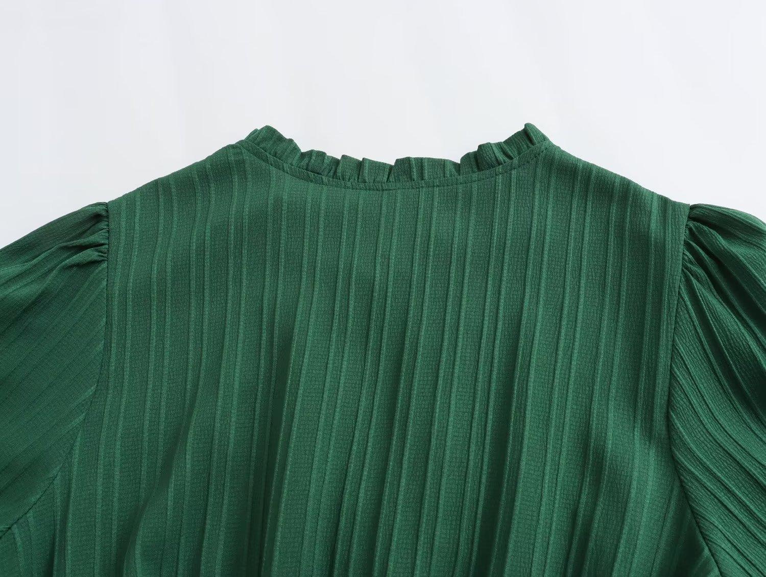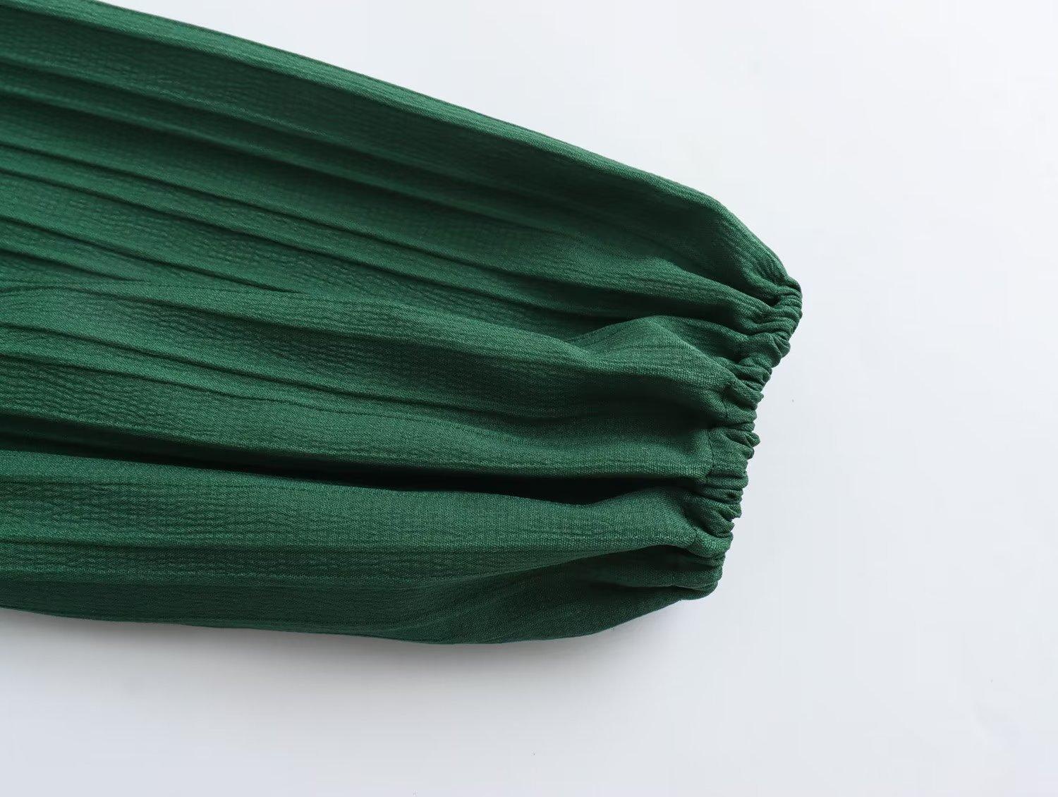 Venta al por mayor 2023 otoño nuevo estilo europeo y americano ropa de mujer verde temperamento vestido de manga larga