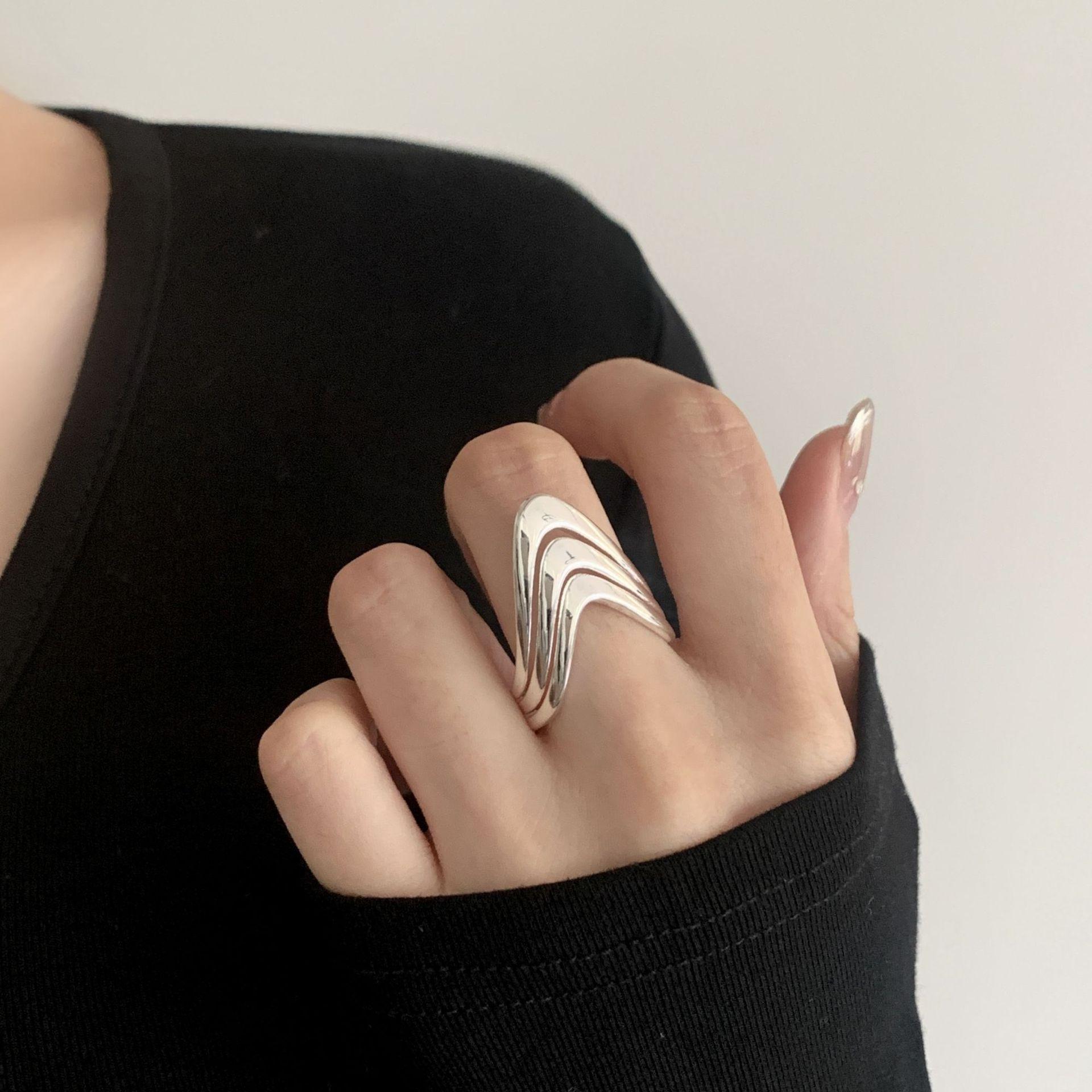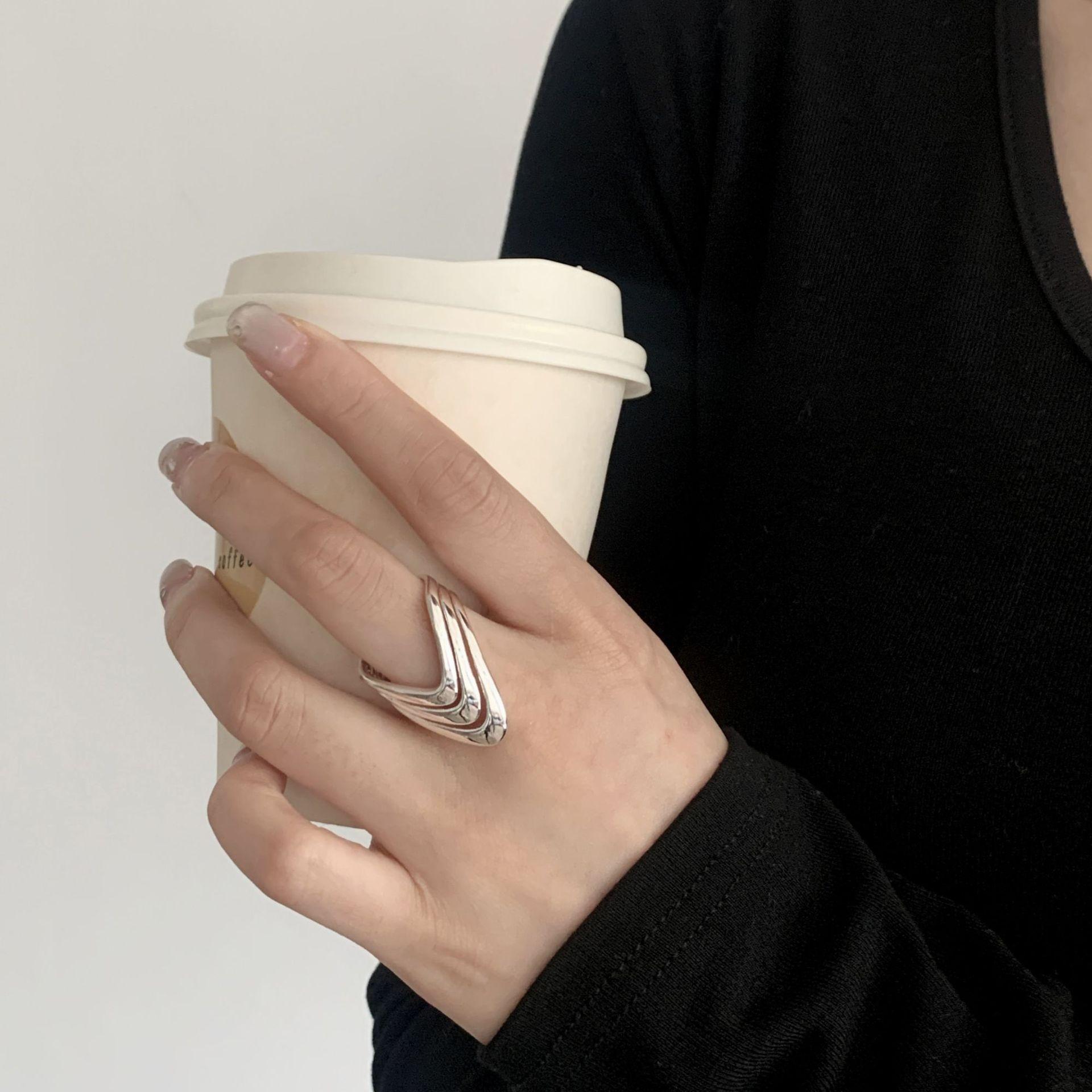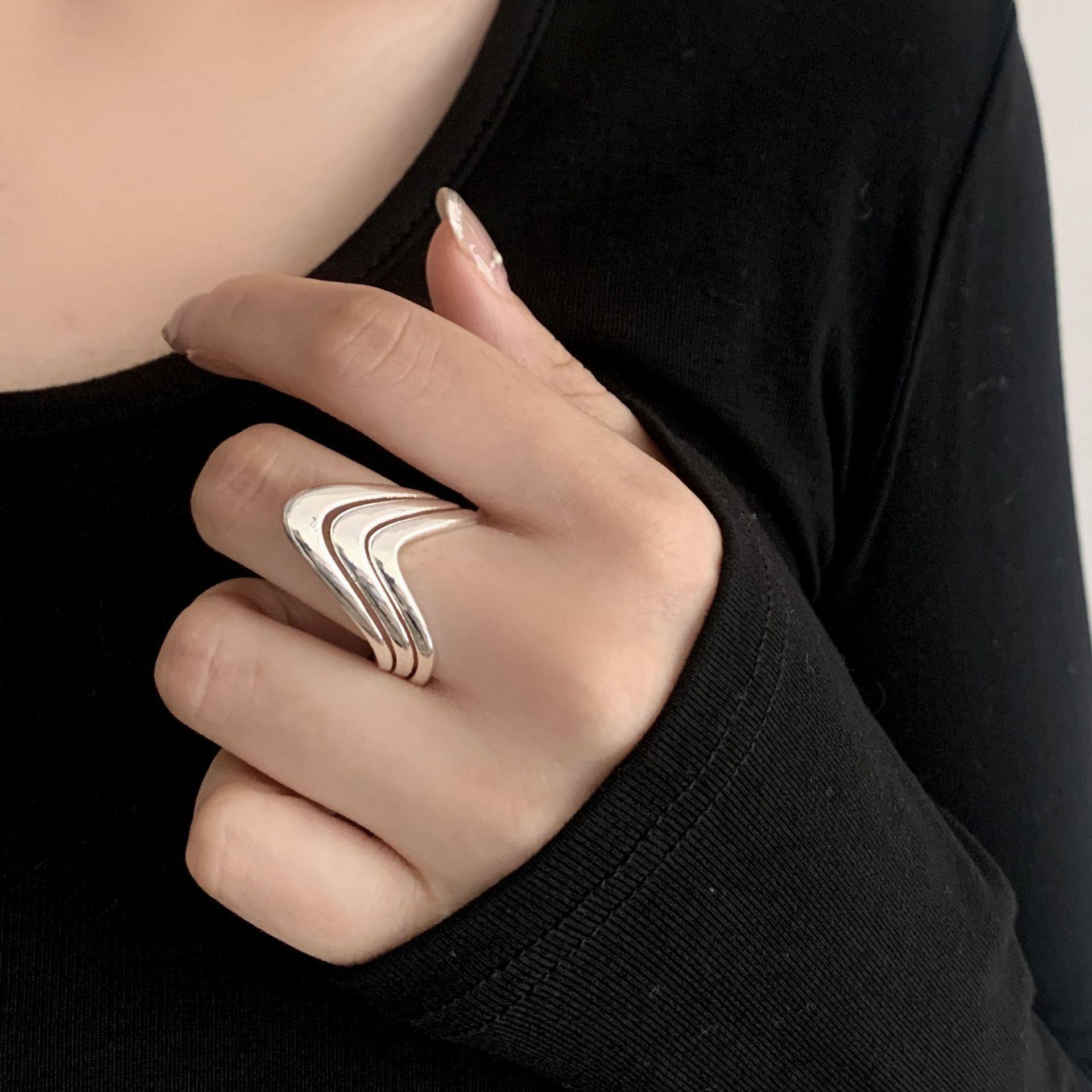 Anillo Multicapa en Forma de V con Sentido del Diseño para Mujer, Personalidad Nicho Versátil Moda Exquisito Anillo Abierto para Dedo Creativo Anillo para Dedo Índice Tendencia