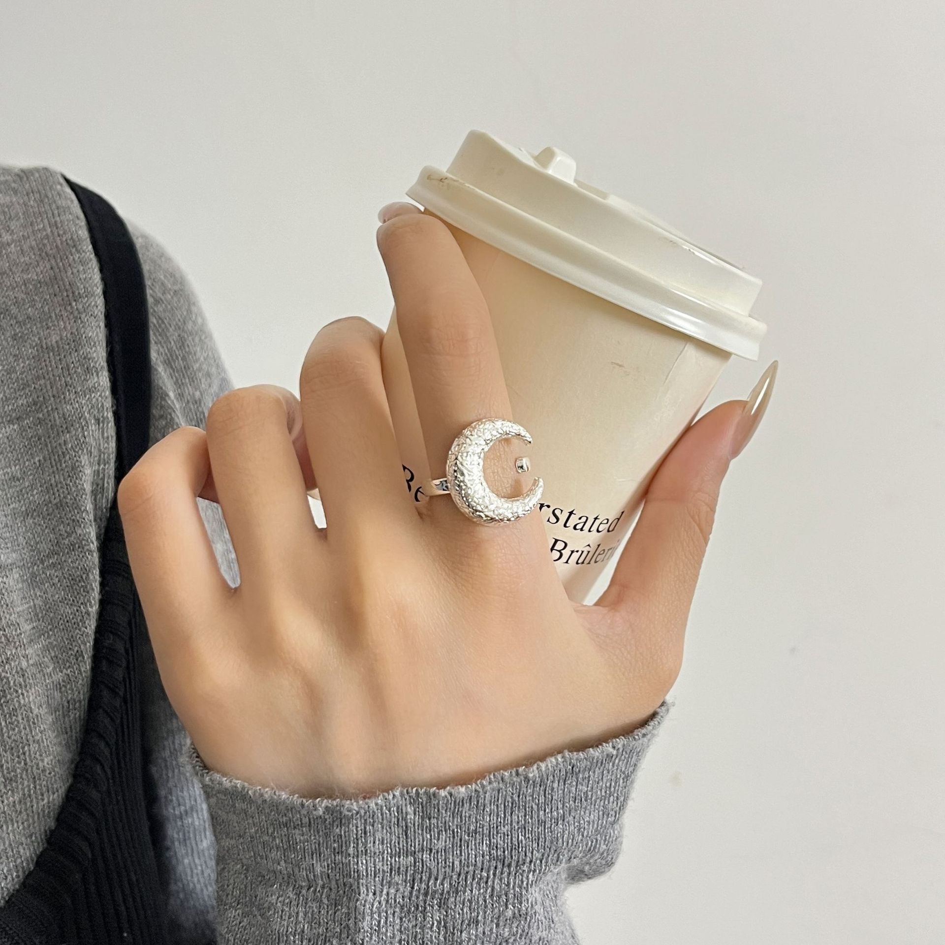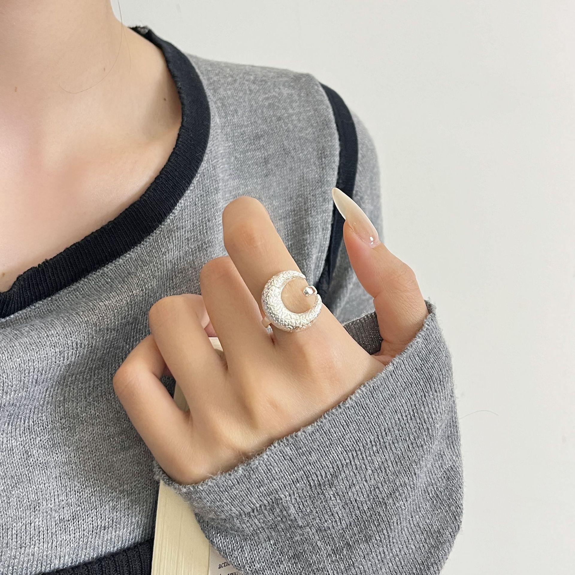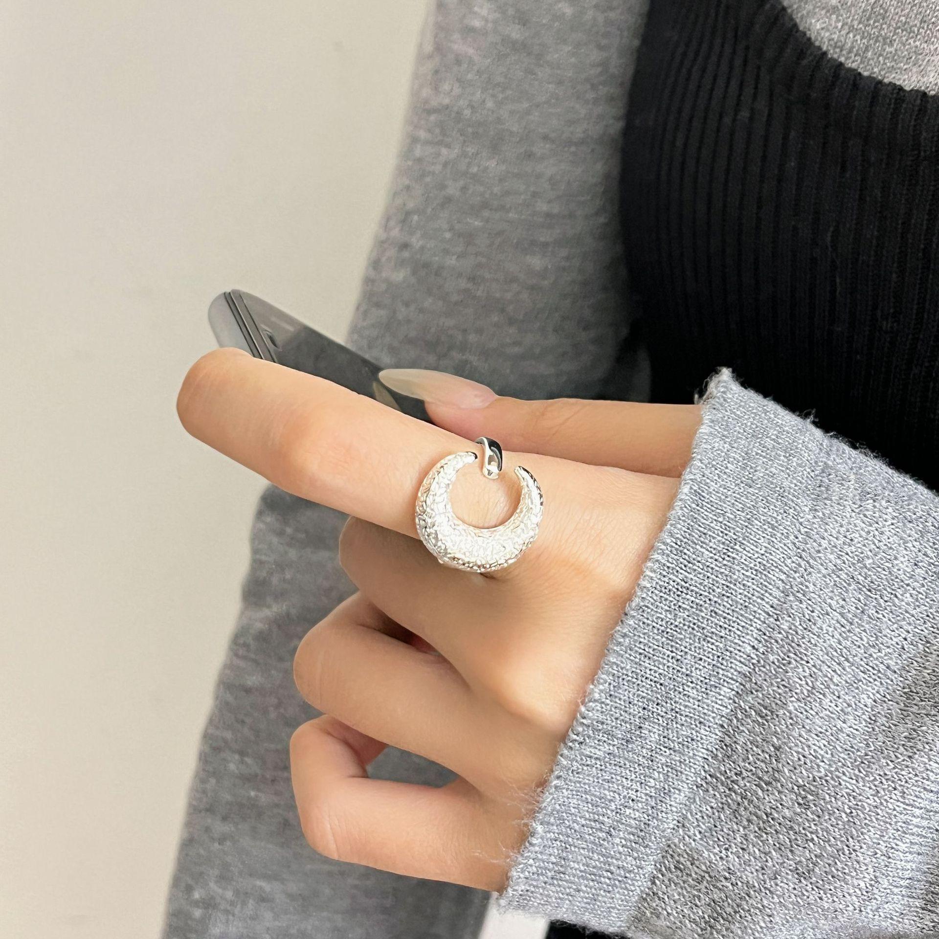 Anillo con textura de luna estilo japonés y coreano para mujer, personalidad nicho, diseño minimalista, sentido del diseño, anillo abierto estilo ins, anillo para el dedo índice