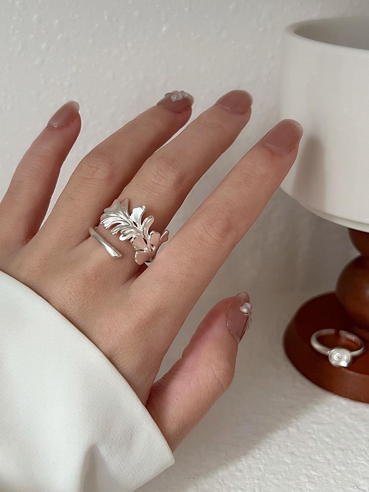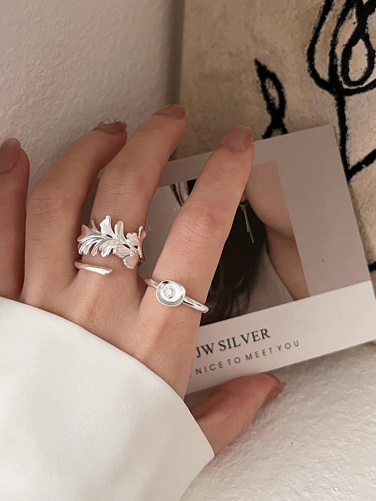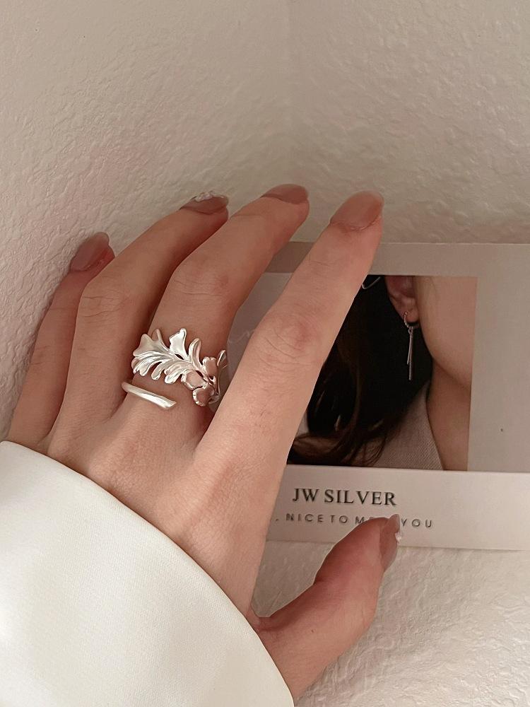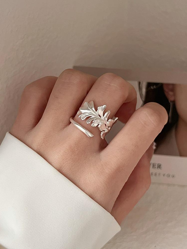 Anillo Irregular de Hoja de Ginkgo para Mujer, Anillo Abierto de Lingote Tridimensional Personalizado, Anillo Versátil Apilable de Moda para el Dedo Índice