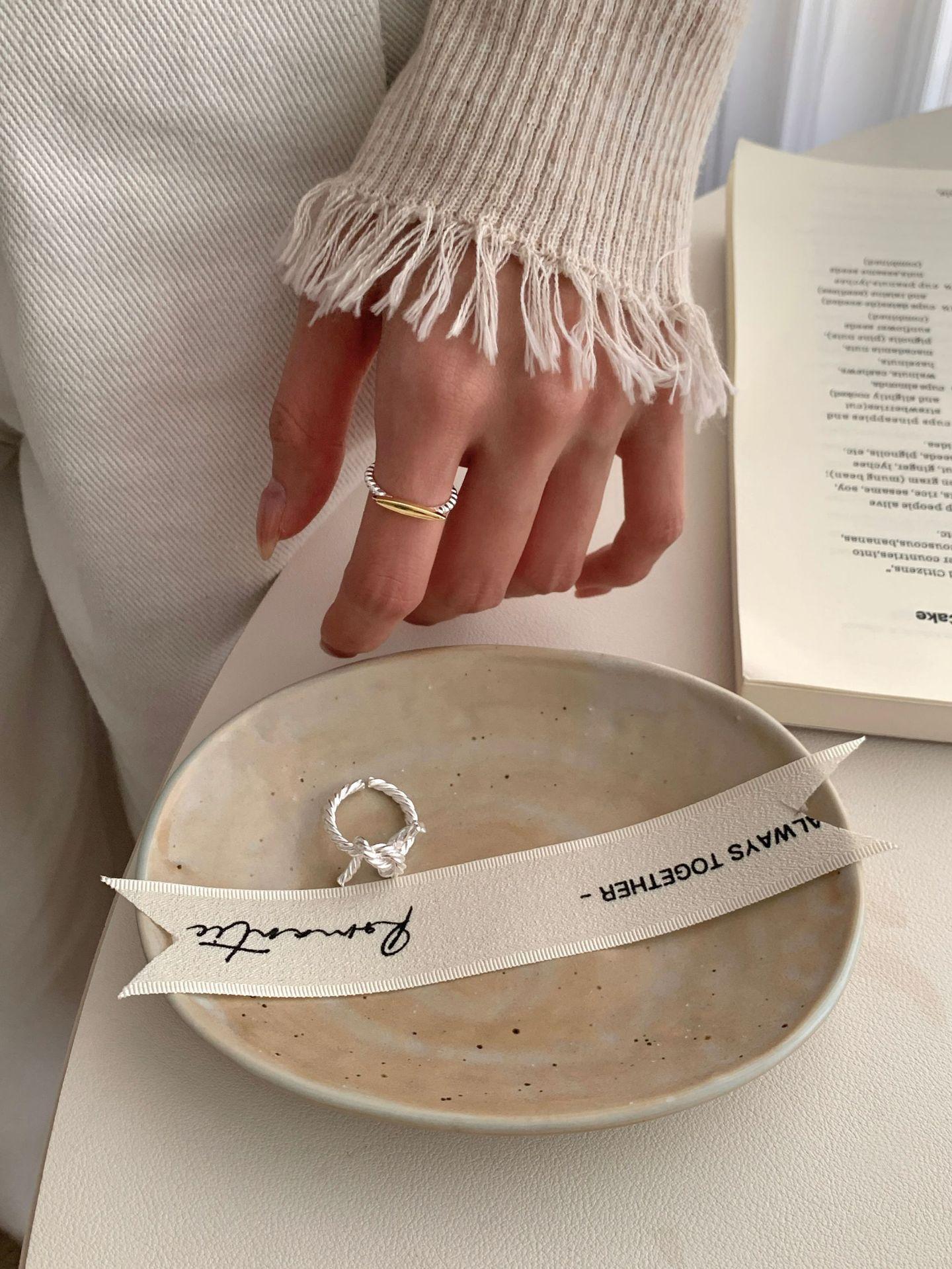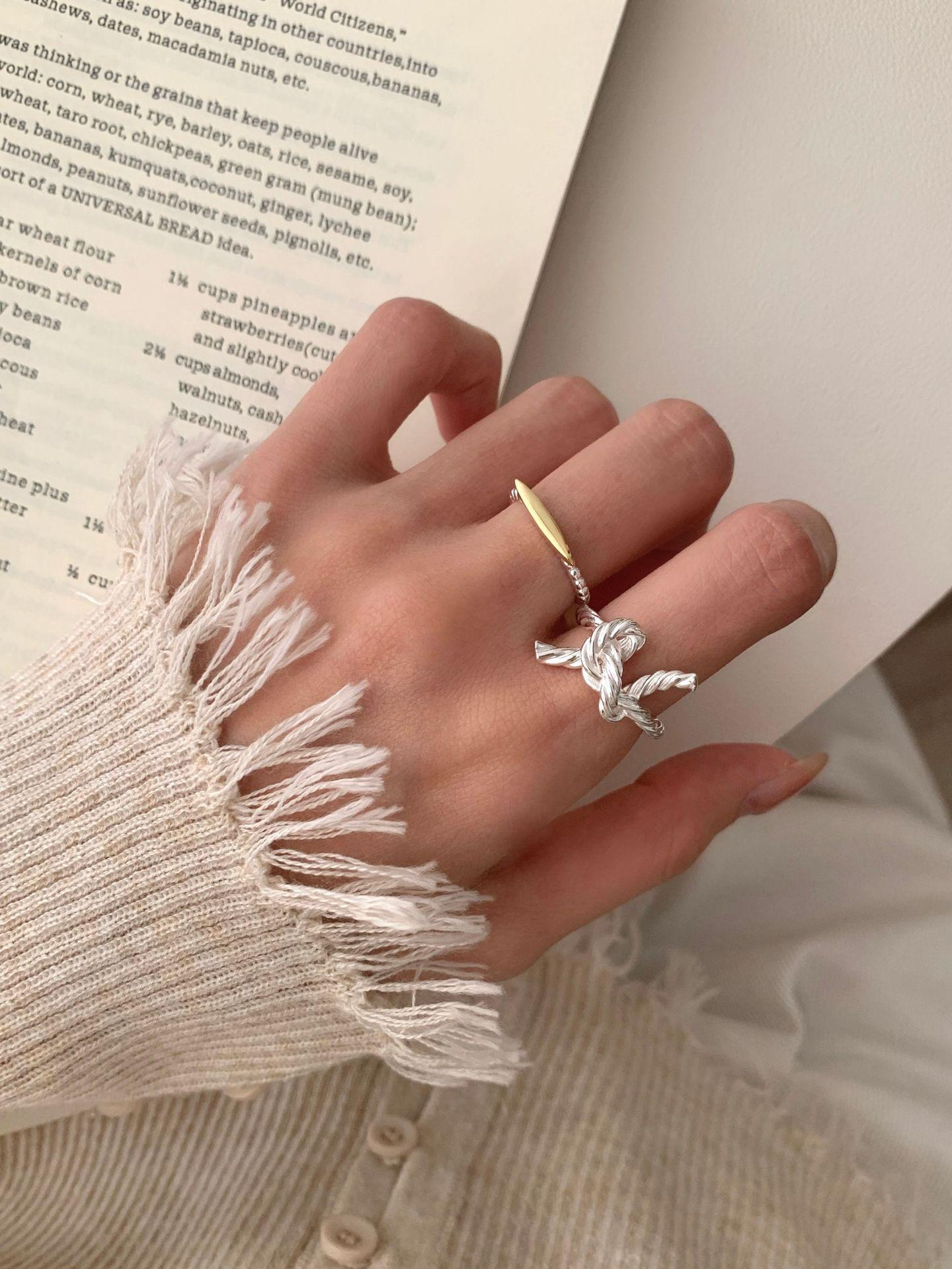 Anillo de Gota de Agua Dulce y Sencillo para Mujer, Nudo de Cuerda de Línea Geométrica, Anillo Abierto Versátil Minimalista, Anillo de Dedo Índice Nicho Trendy