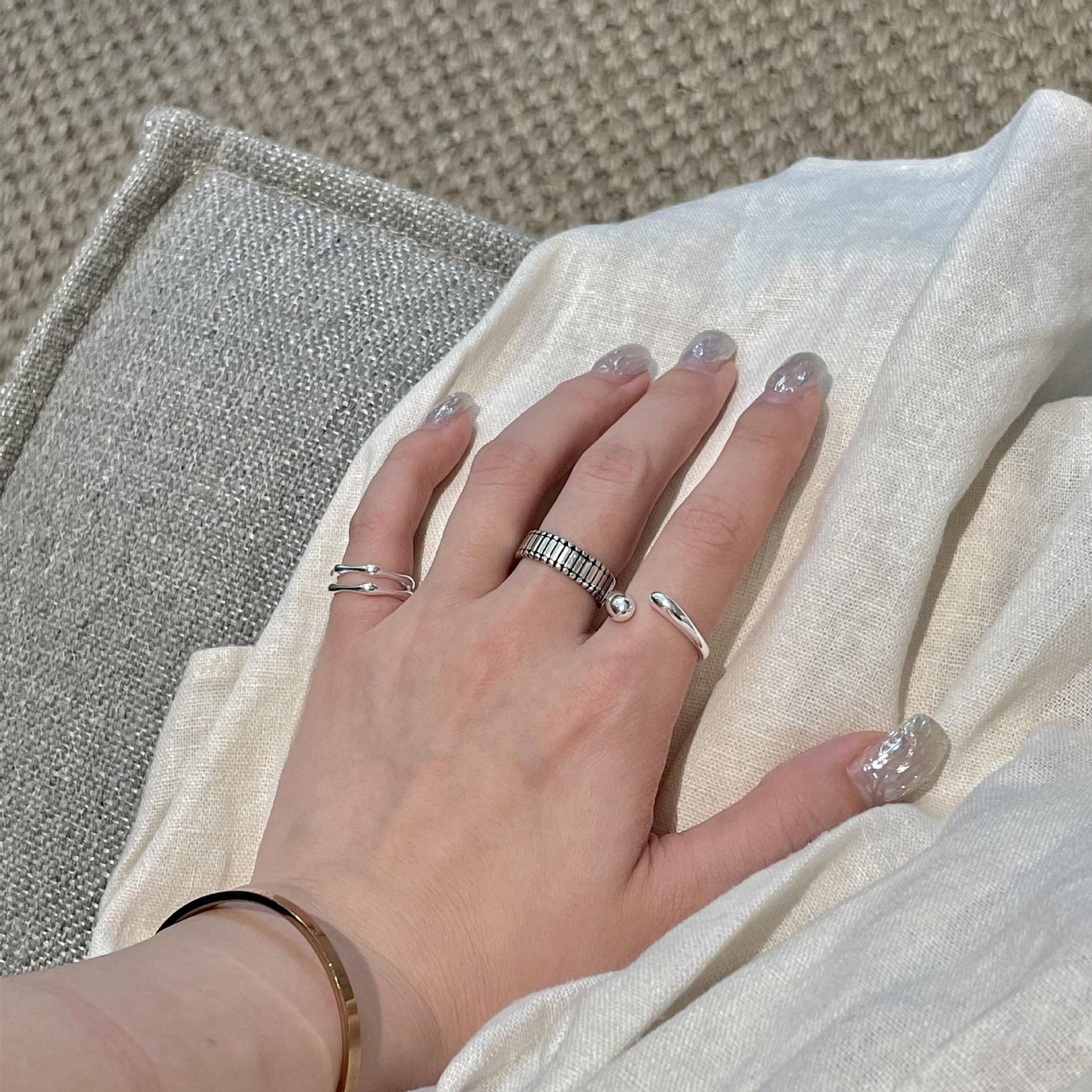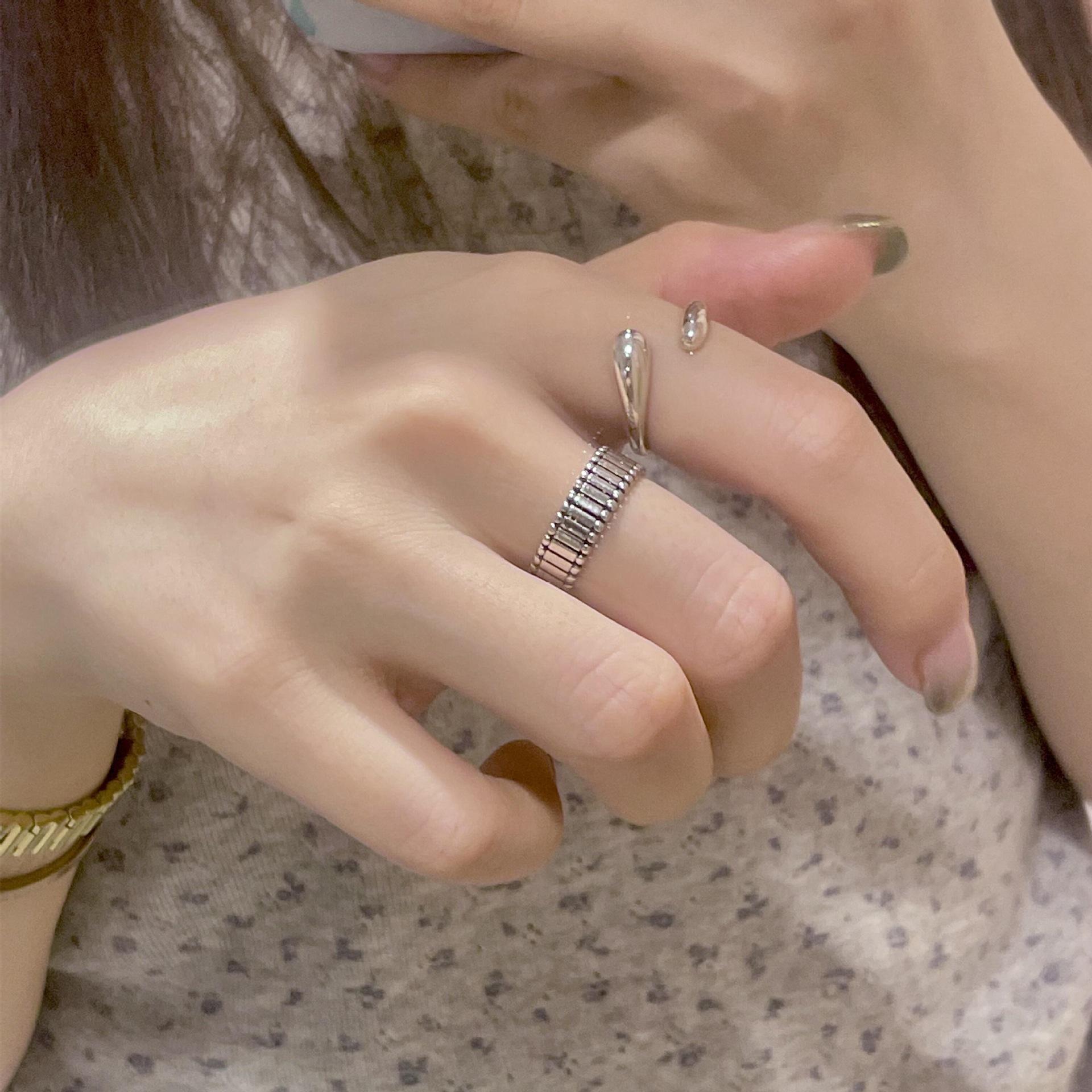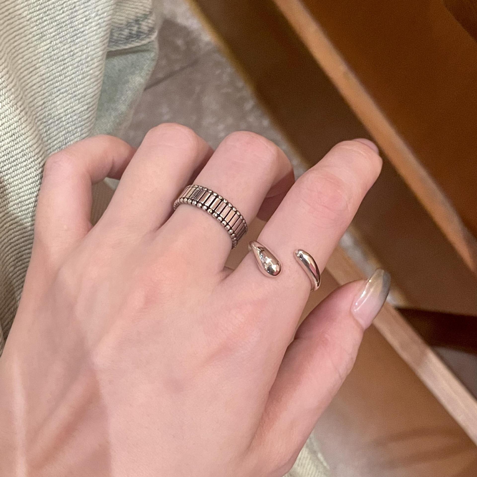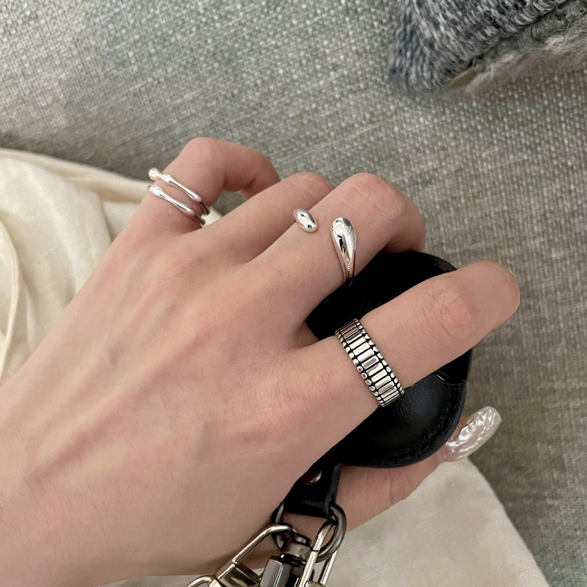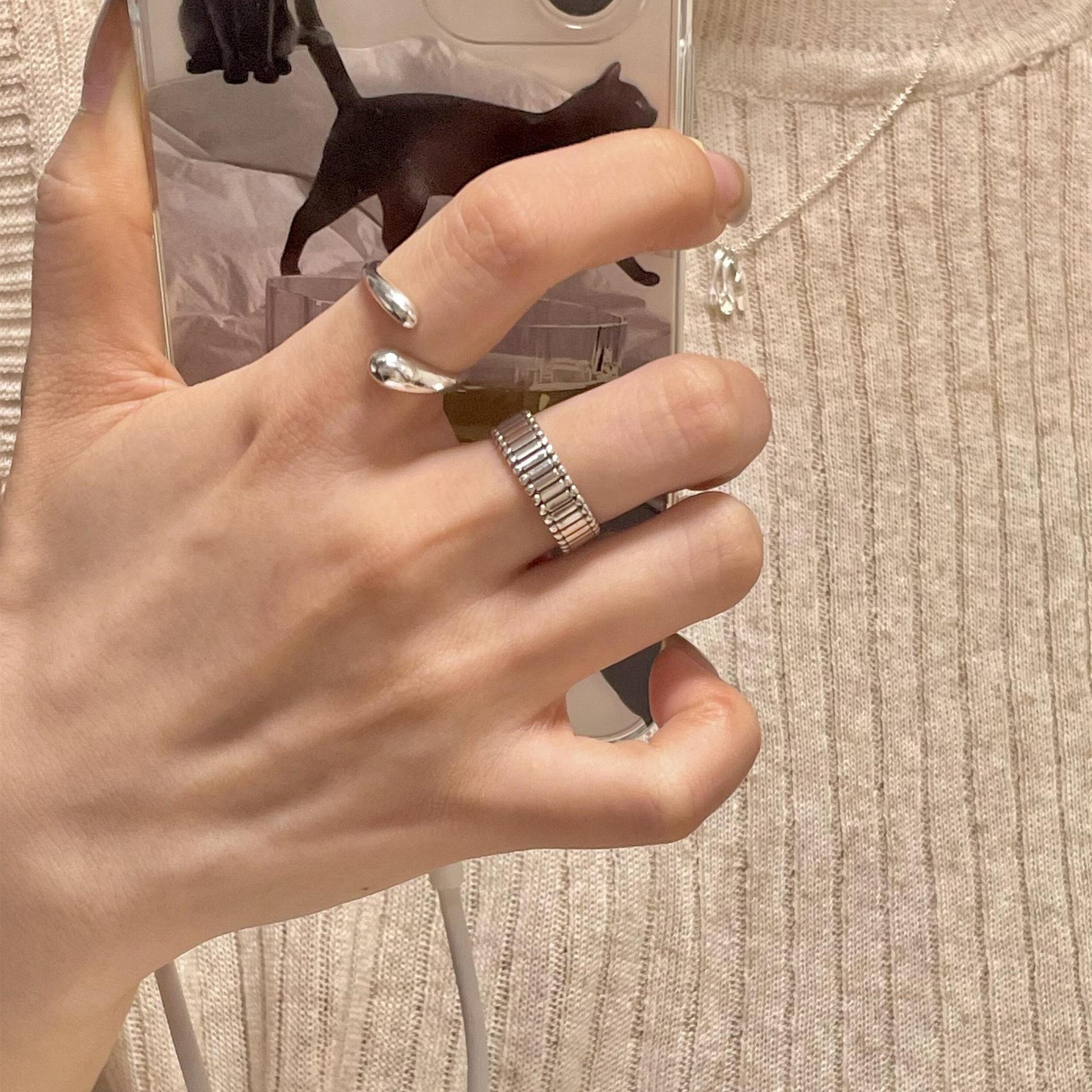 Anillo geométrico de gota de agua para mujer, estilo vintage, elegante, combinable, personalizado, chapado en plata S925, abierto, apilado.