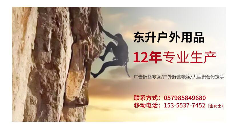 Jinhua Dongsheng Productos para Exteriores Co., Ltd. esUn fabricante especializado en la producción de carpas plegables publicitarias, carpas para acampar al aire libre, carpas grandes para fiestas y sombrillas publicitarias. Después de más de diez años de desarrollo, la marca existente de la empresa "Jubao Tent" ha sido registrada y reconocida por la Oficina de Marcas. Los productos se exportan al Medio Oriente, Europa, América, Asia Pacífico y otras regiones, y sus marcas de producción nacional han llegado a cientos.Entre ellas hay muchas empresas conocidas, como China Telecom, China Unicom, China Mobile, Cerveza Snow, etc., con una rica experiencia en producción.Podemos producir según las muestras proporcionadas por los clientes o diseñar y producir según los requisitos del cliente. Durante muchos años, hemos brindado excelentes servicios y productos a los clientes con el deseo de "cooperación sincera y desarrollo común" y hemos establecido relaciones de cooperación a largo plazo y estables con muchos minoristas y agentes. ¡Damos la bienvenida a clientes nuevos y antiguos para que nos visiten!