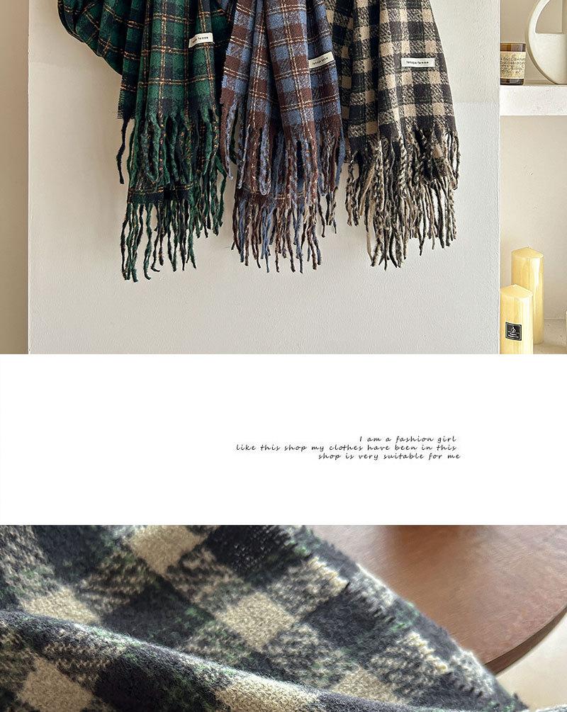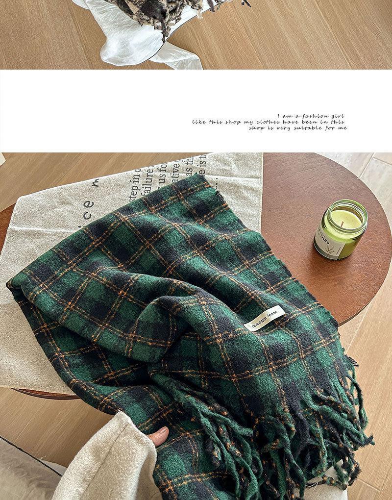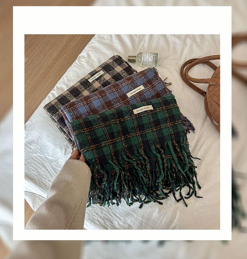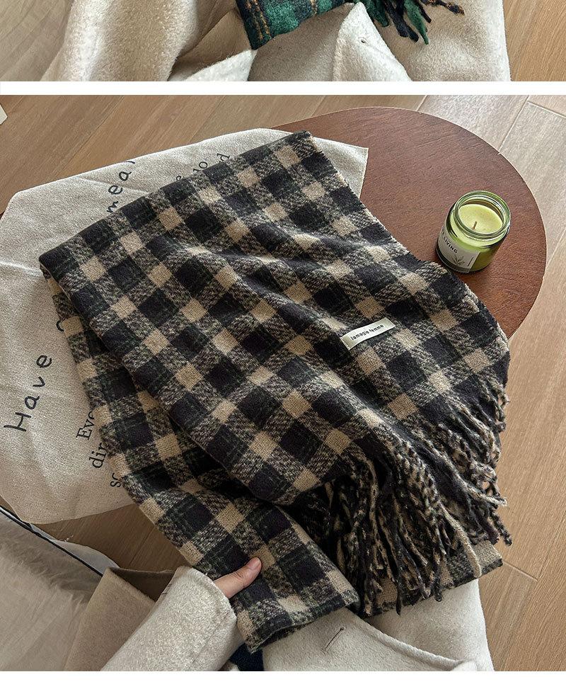 Nueva Bufanda de Cachemira a la Moda a Cuadros para Mujer Invierno Estilo Coreano Todo Combinable Chal con Borlas a Prueba de Frío Cálida Bufanda Gruesa