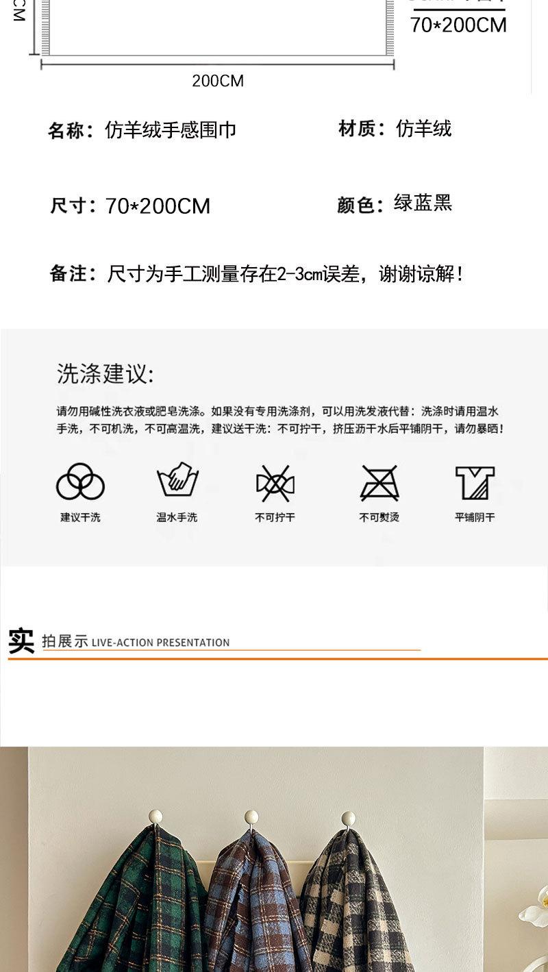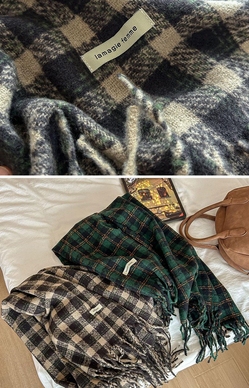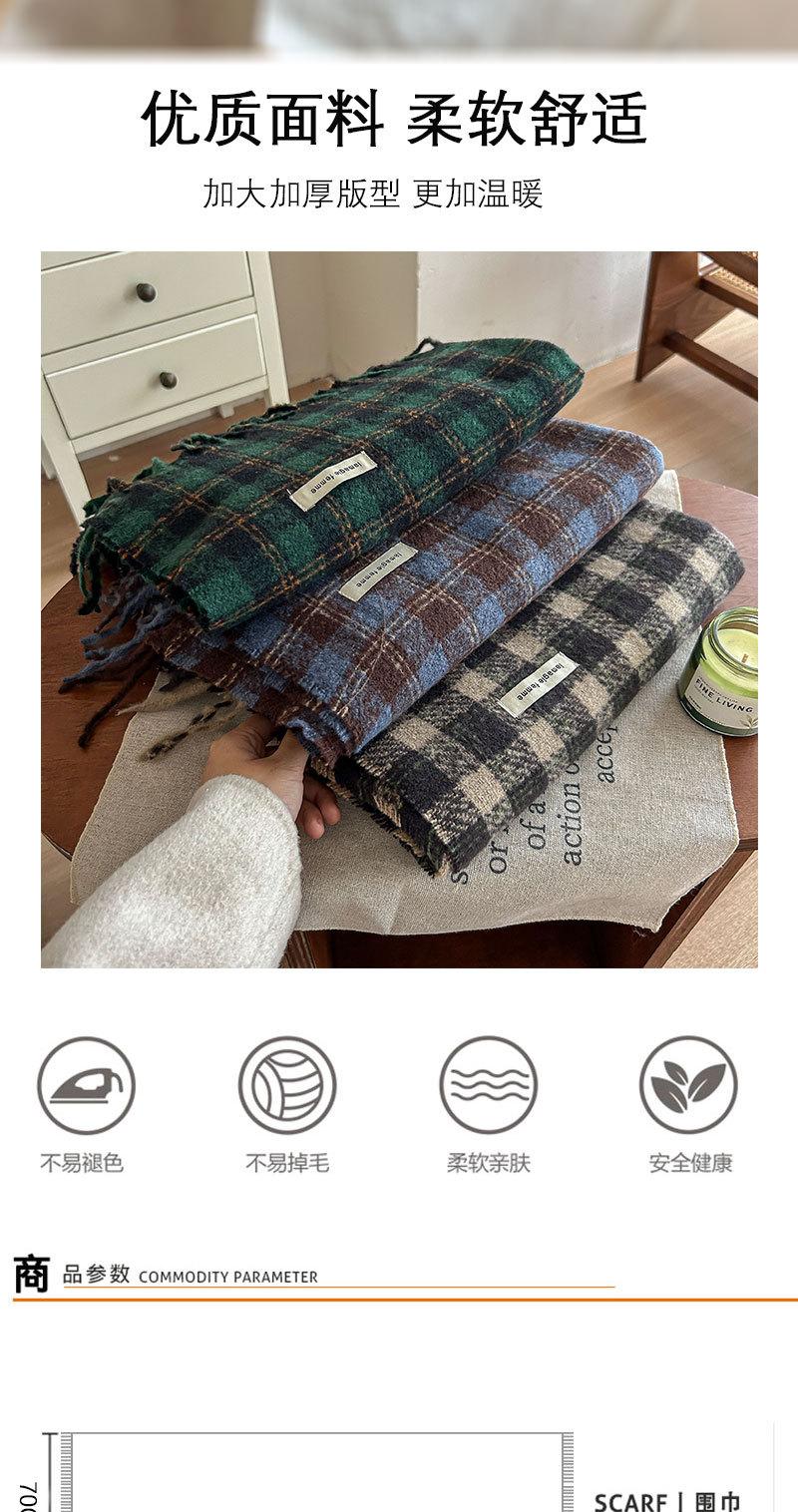 Nueva Bufanda de Cachemira a la Moda a Cuadros para Mujer Invierno Estilo Coreano Todo Combinable Chal con Borlas a Prueba de Frío Cálida Bufanda Gruesa