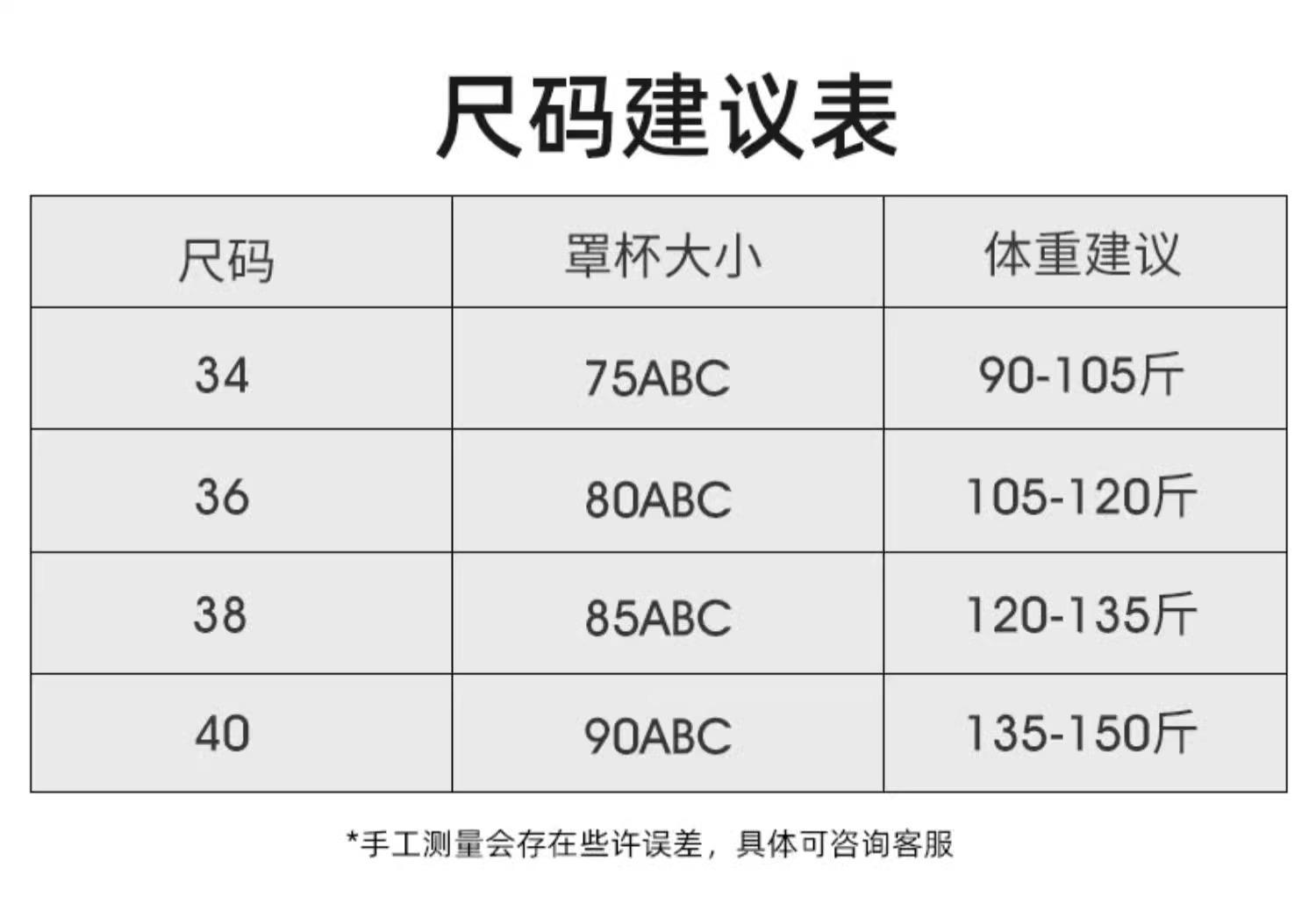M (34/75abc recommended), L (36/80abc recommended), Xl (38/85abc recommended), Xxl (40/90abc recommended)