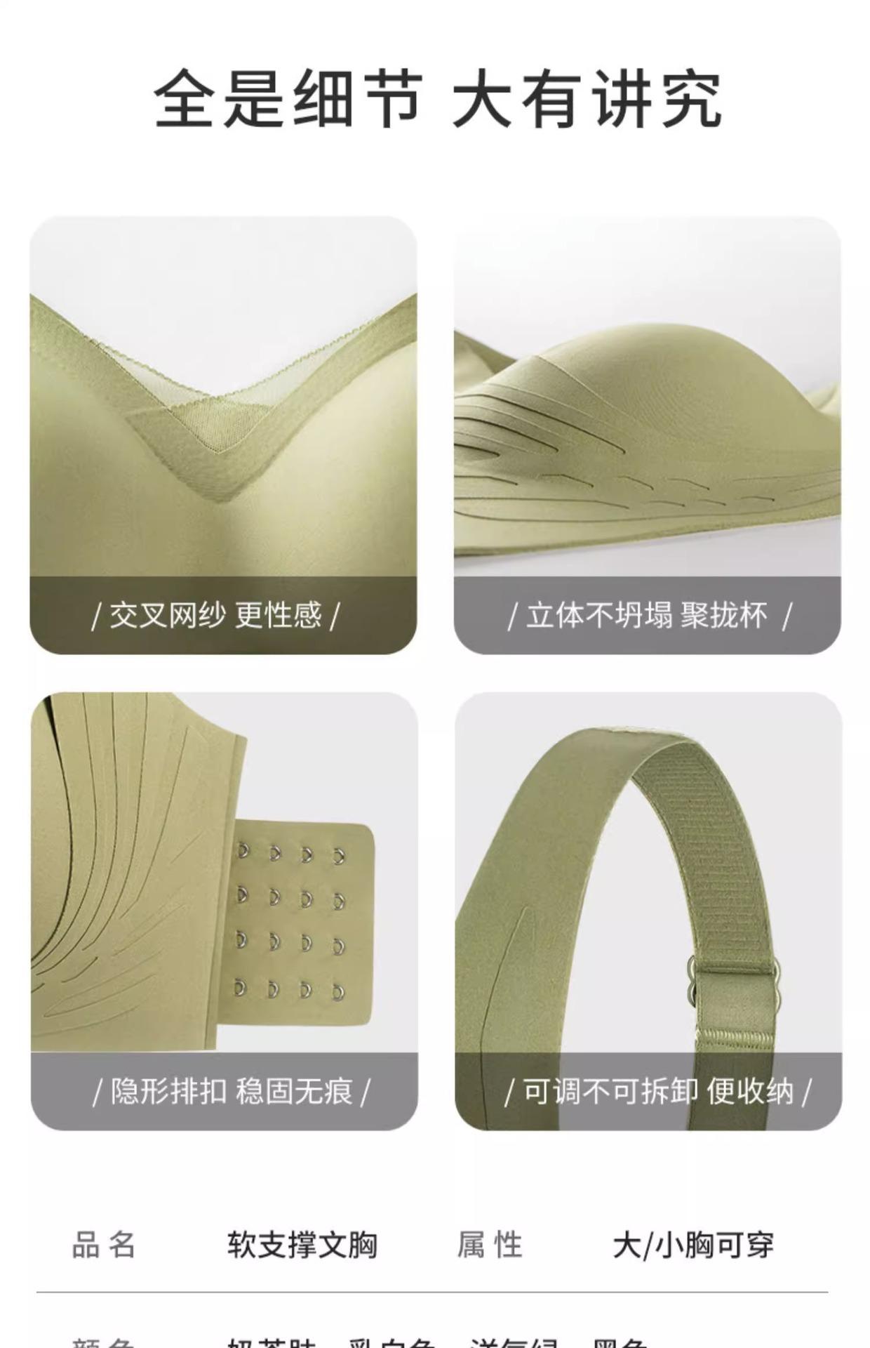 Gather, Traceless, Breathable, Push up, Anti-glare, Comfortable, Side collection, Breast reinforcement