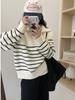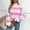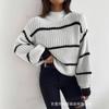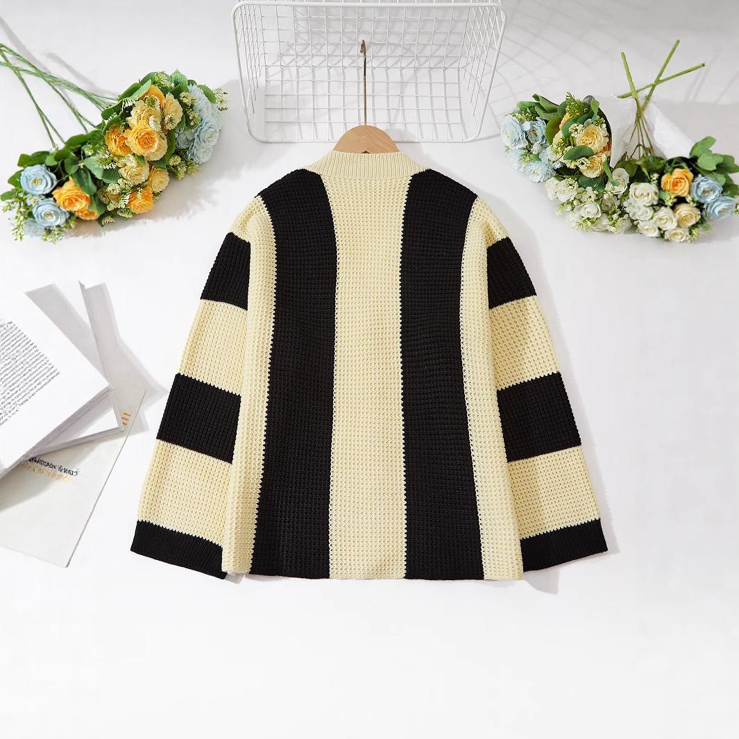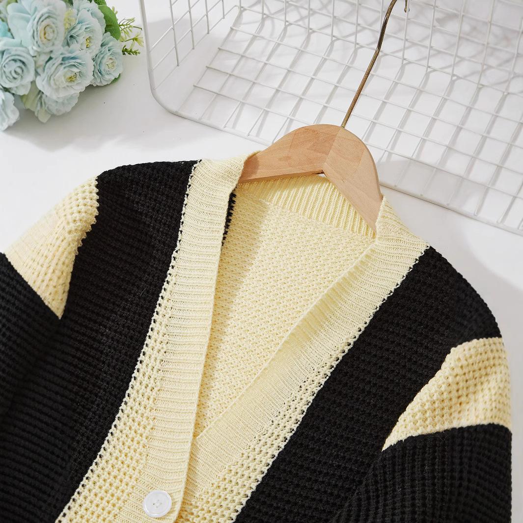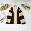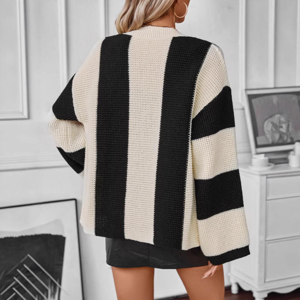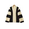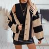 Moda Transfronteriza Europea y Americana Tejido de Punto Otoño e Invierno Nuevo Suéter Holgado de Contraste a Rayas Manga Acampanada Cárdigan de Punto para Mujer