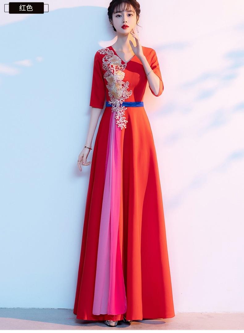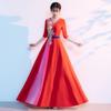 Traje de coro vestido largo elegante rojo canción coro adulto disfraz de mando anfitrión vestido de noche rojo
