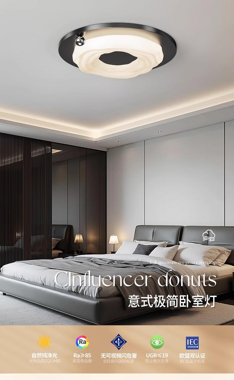 Luz de Techo Minimalista Italiana para Dormitorio Espectro Completo Patrón Ondulado Luz para Habitación de Niños Moderna Negra Protección Ocular Luz para Sala de Estudio