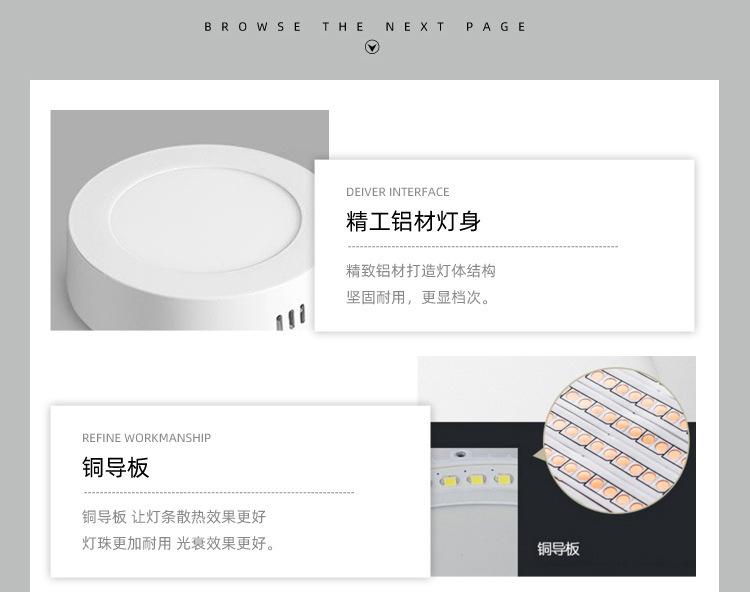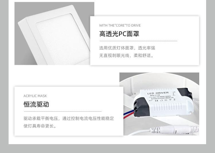 Downlight LED Redondo Ultrafino de Montaje Superficial 6w12w18w24w Luz de Panel Cuadrado Pasillo Corredor Balcón Luz de Techo