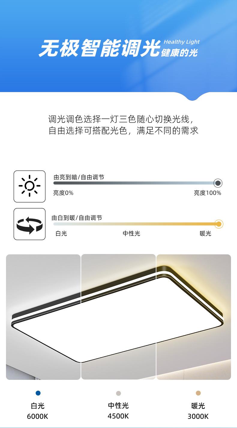 Modelo de control por voz sin conexión, puede ajustar tres temperaturas de color, luz blanca, luz amarilla, luz blanca cálida, se puede controlar desde la pared, ajustar mediante conmutación continua, y viene con un control remoto, puede ajustar el brillo, cambiar los modos de luz, modo de luz nocturna, se puede controlar descargando una aplicación móvil, sin necesidad de comprar dispositivos de red externos adicionales, solo hable para controlar las luces