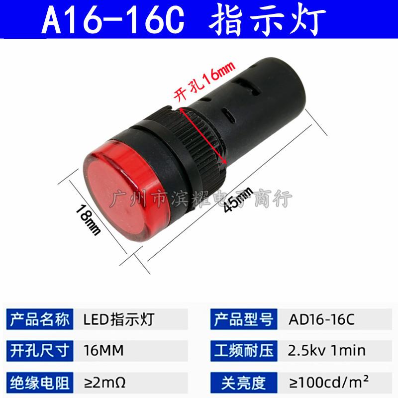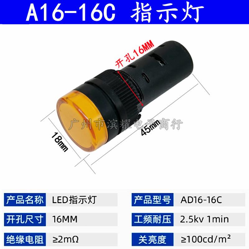 Indicador de encendido de 16 mm AD16-16C Lámpara de señal LED 12V24V220V380V rojo amarillo verde azul blanco