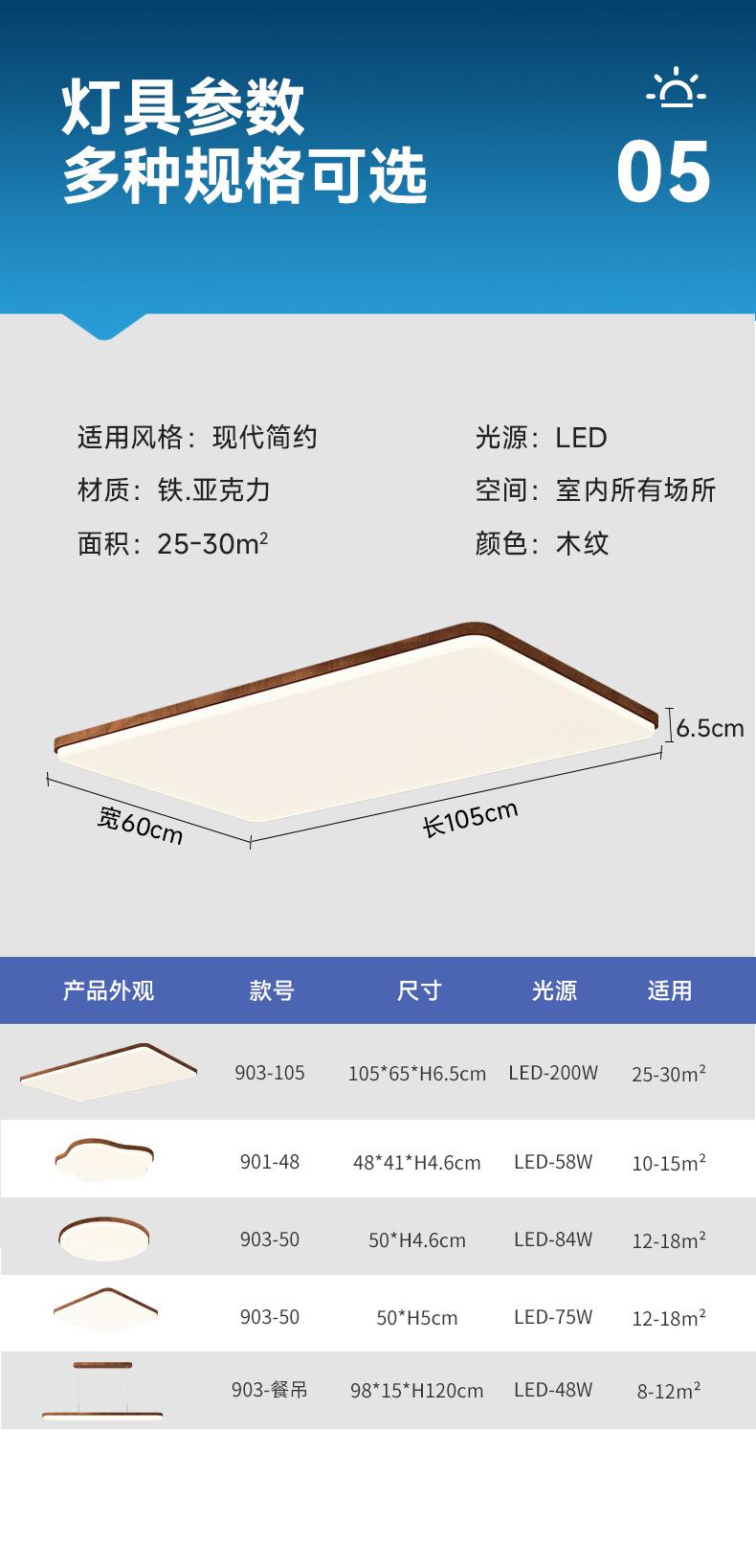 Lámpara de techo para sala de estar, moderna, sencilla, creativa, color nogal, para dormitorio, protección ocular, paquete para toda la casa, lámpara combinada