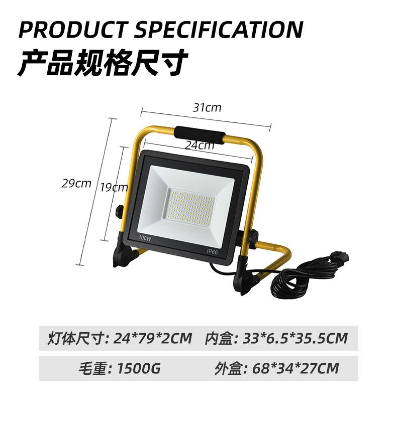 20W Handheld Floodlight 6500K, 30W Handheld Floodlight 6500K, 50W Handheld Floodlight 6500K, 100W Handheld Flo...