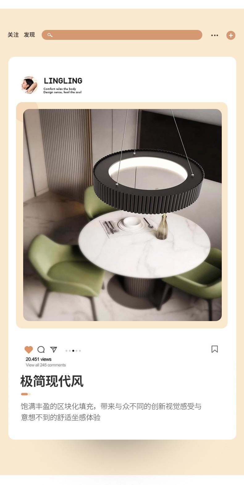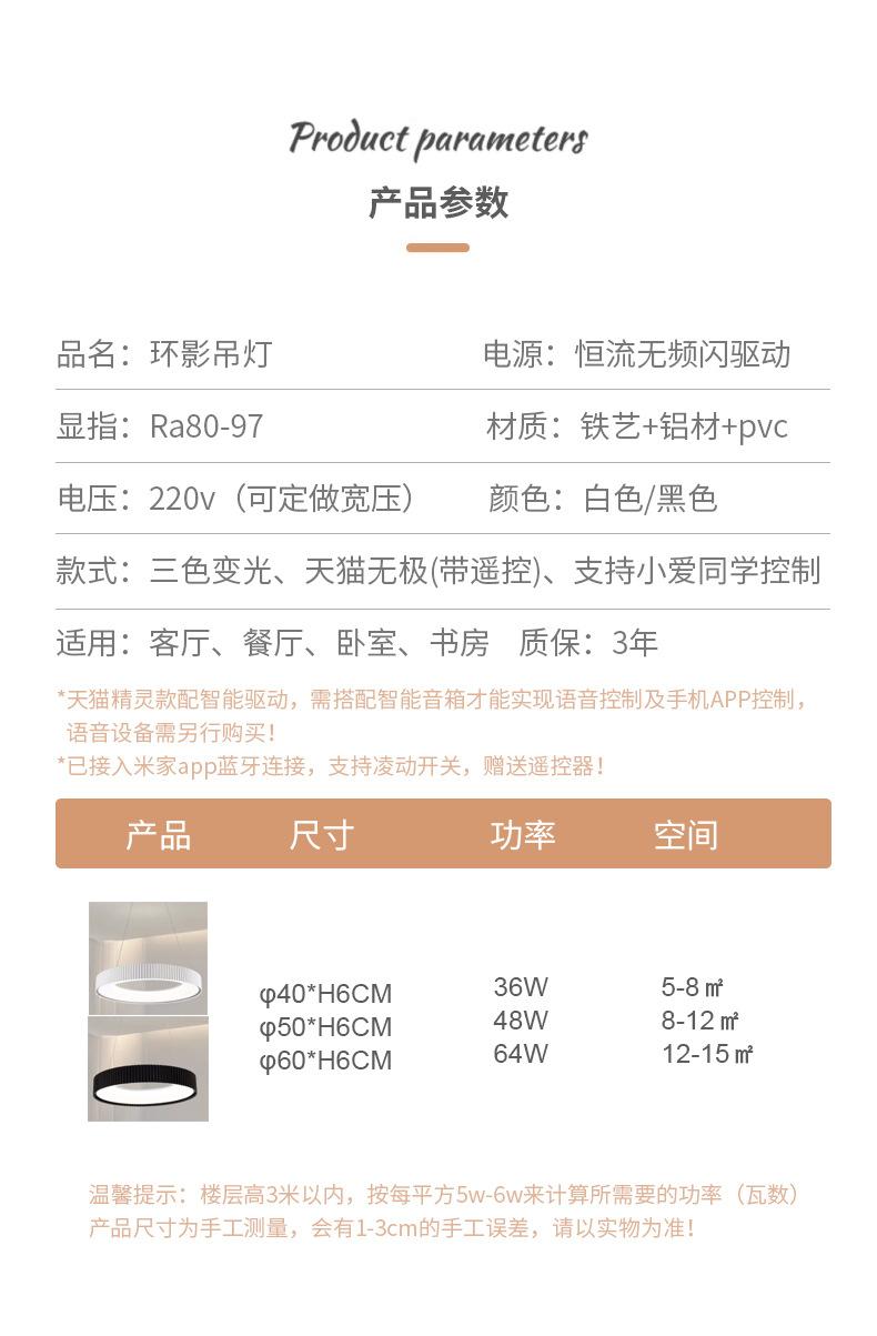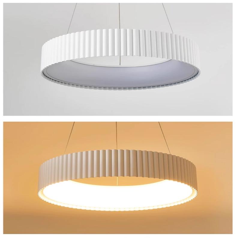 Regular model-white-round φ40cm-36w-striped ring shadow series chandelier, Regular model-black-round φ40cm-36w...