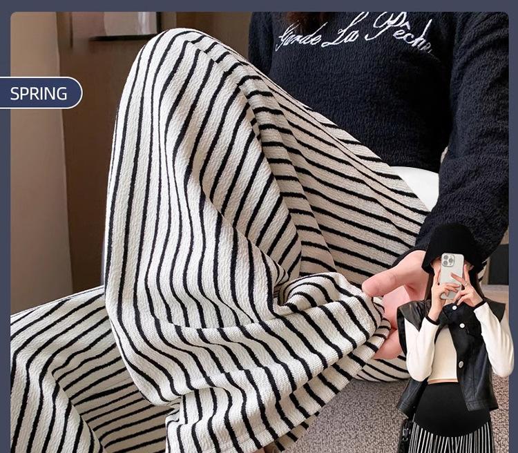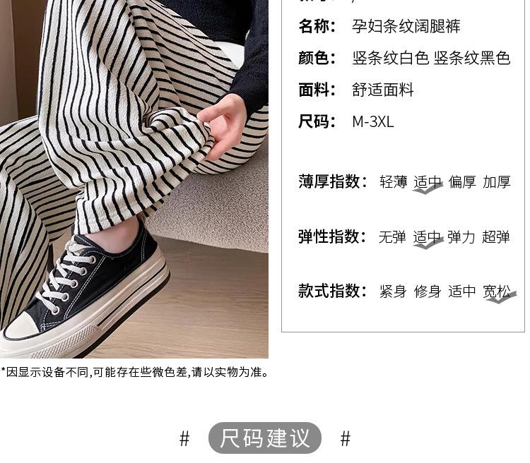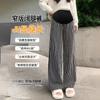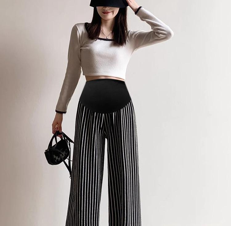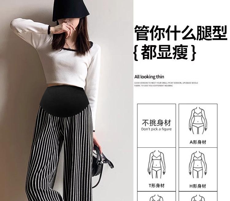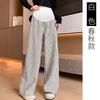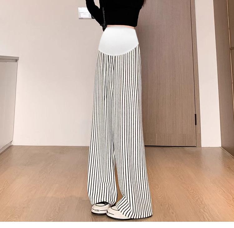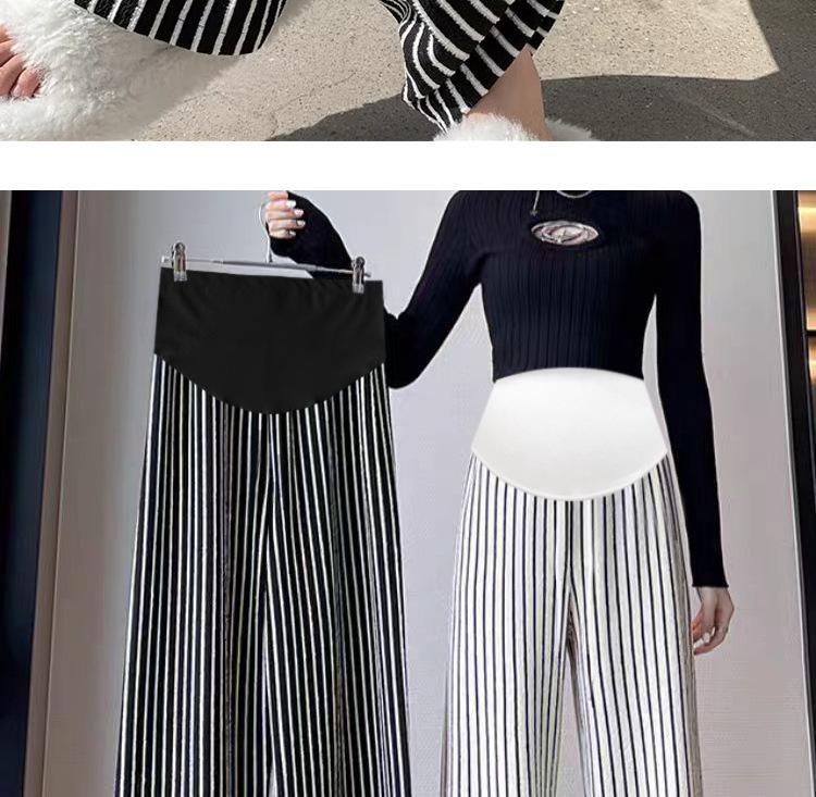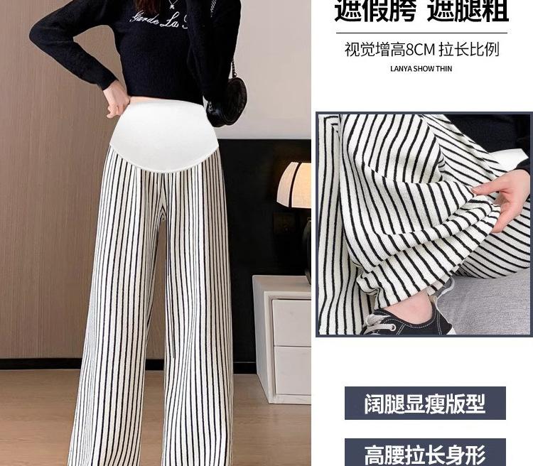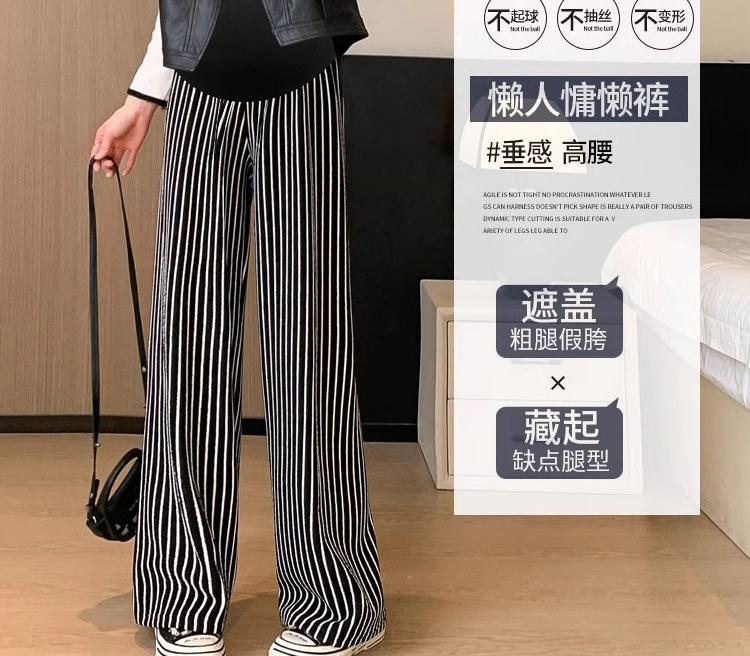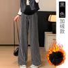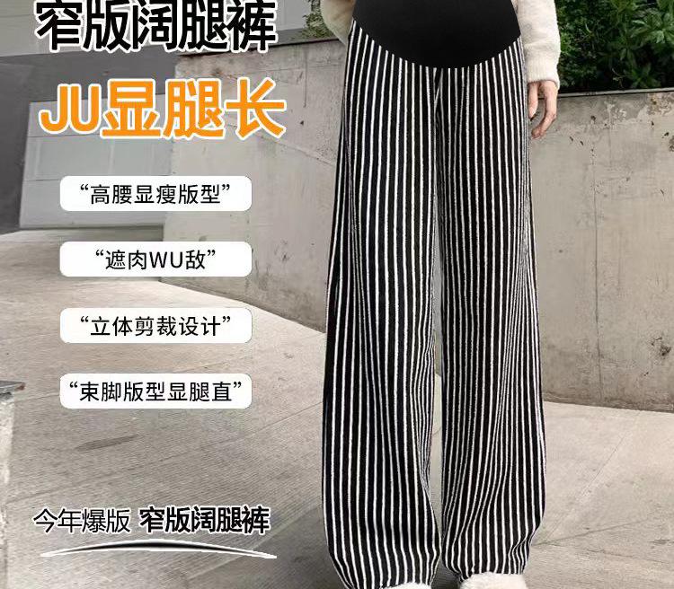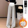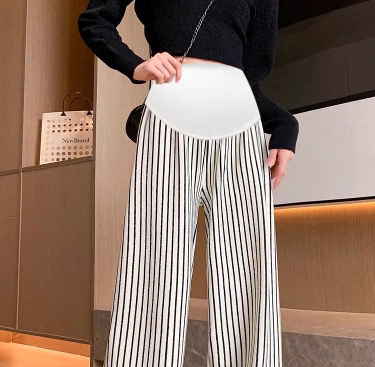 Pantalones de rayas de pierna ancha para mujeres embarazadas para otoño e invierno 2024 Ropa exterior Pantalones abdominales Holgados Casuales Perezosos con forro polar Engrosados Pantalones para mujeres embarazadas