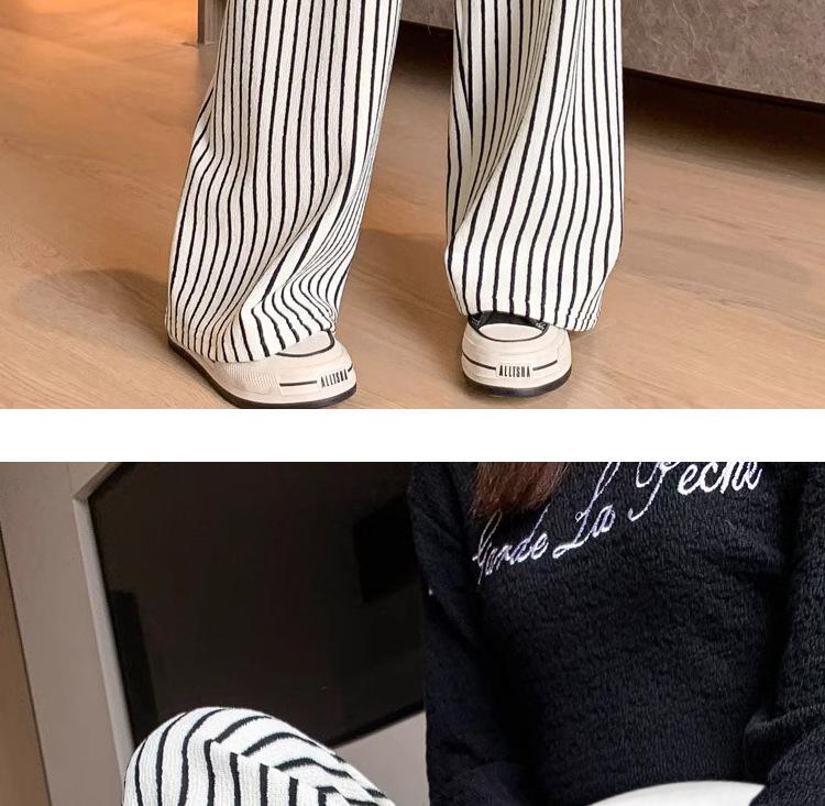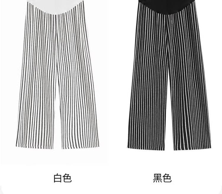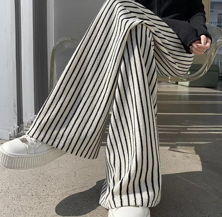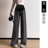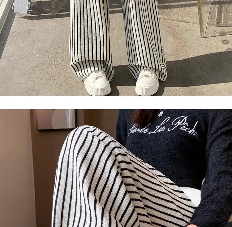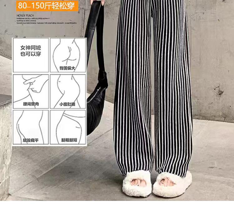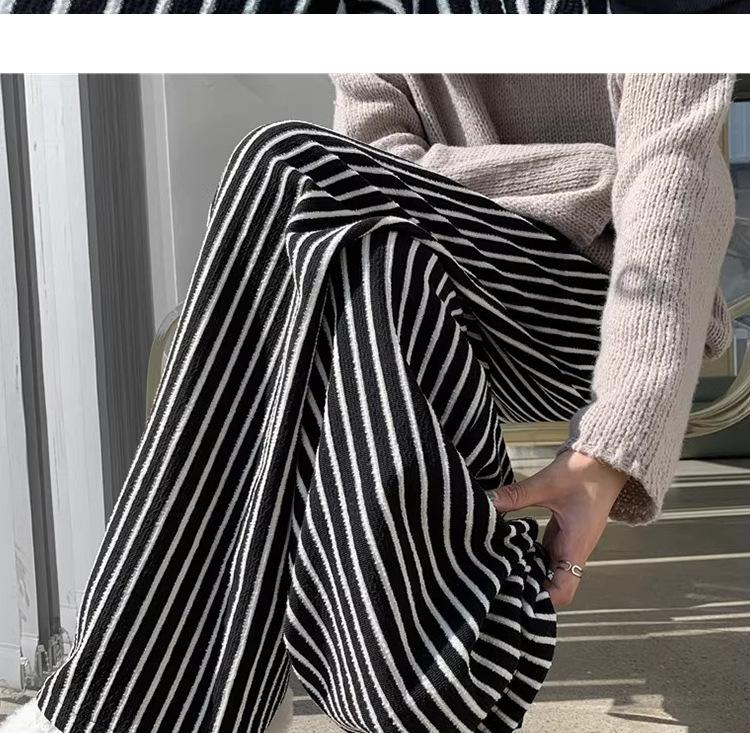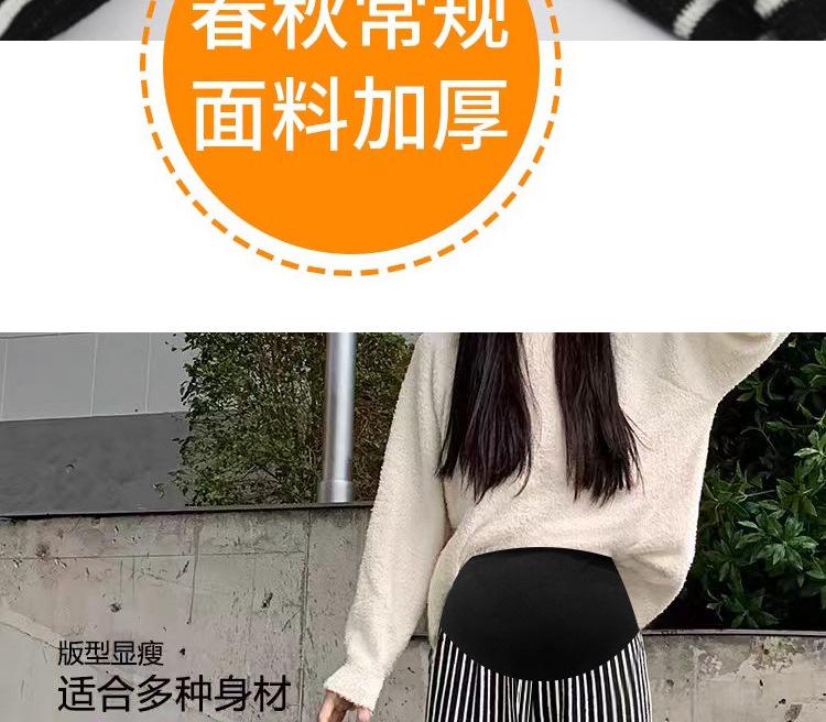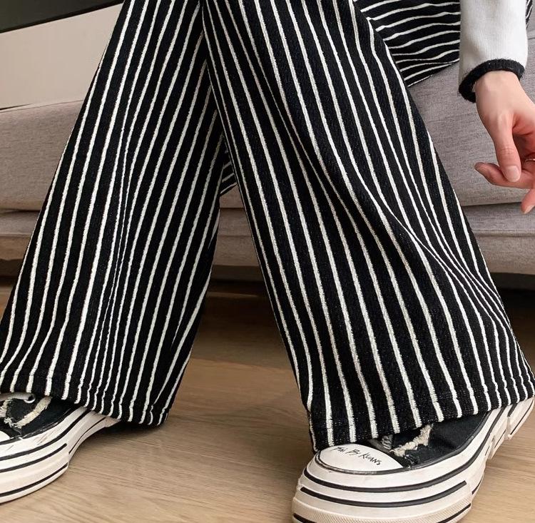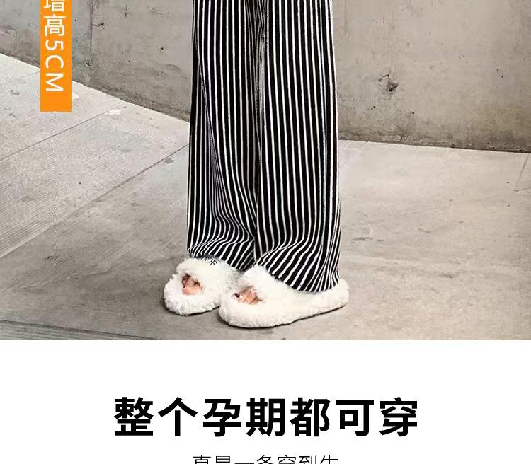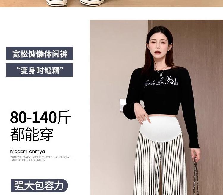 Pantalones de rayas de pierna ancha para mujeres embarazadas para otoño e invierno 2024 Ropa exterior Pantalones abdominales Holgados Casuales Perezosos con forro polar Engrosados Pantalones para mujeres embarazadas