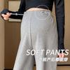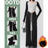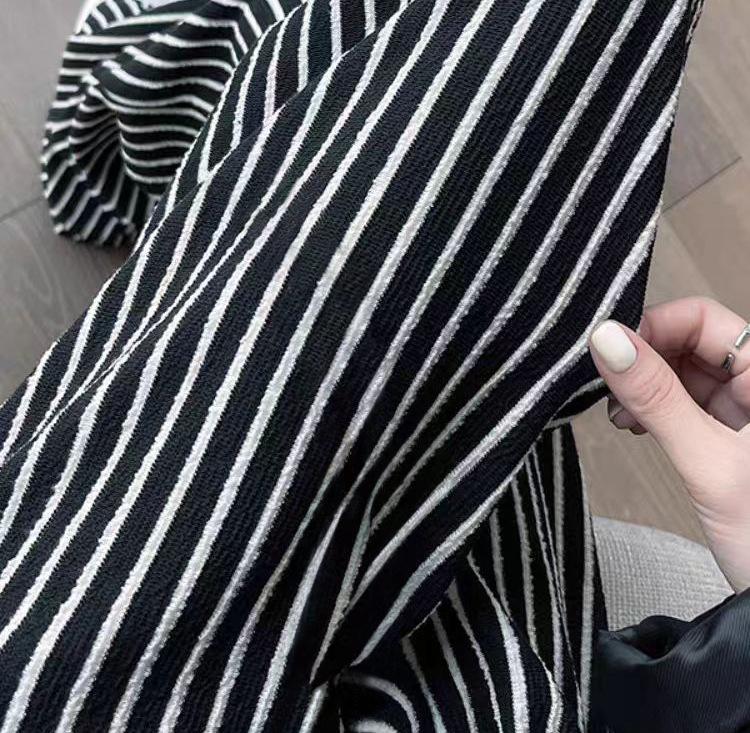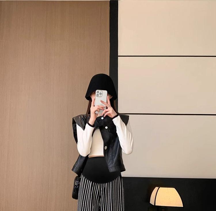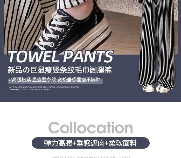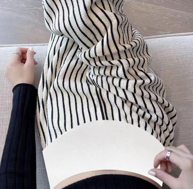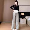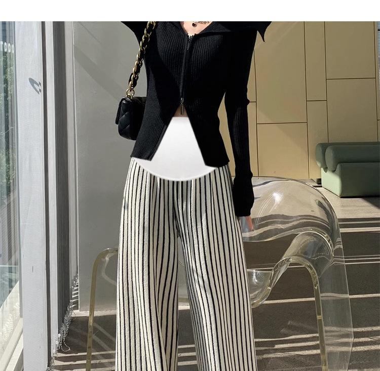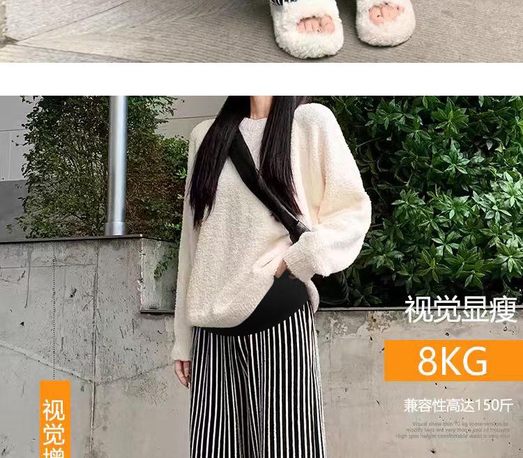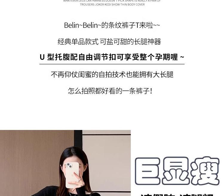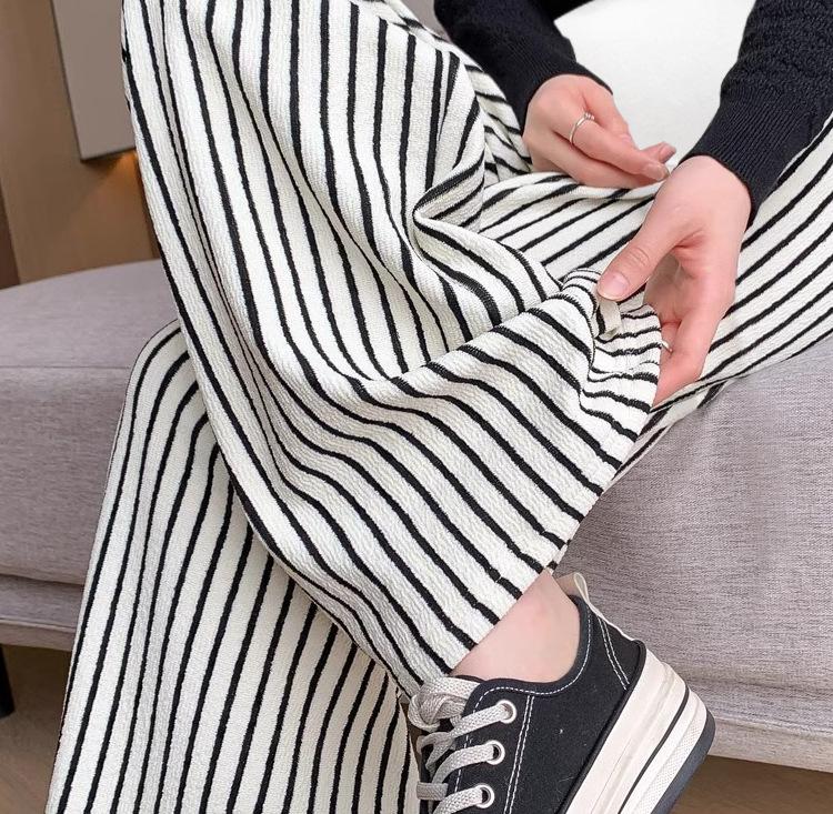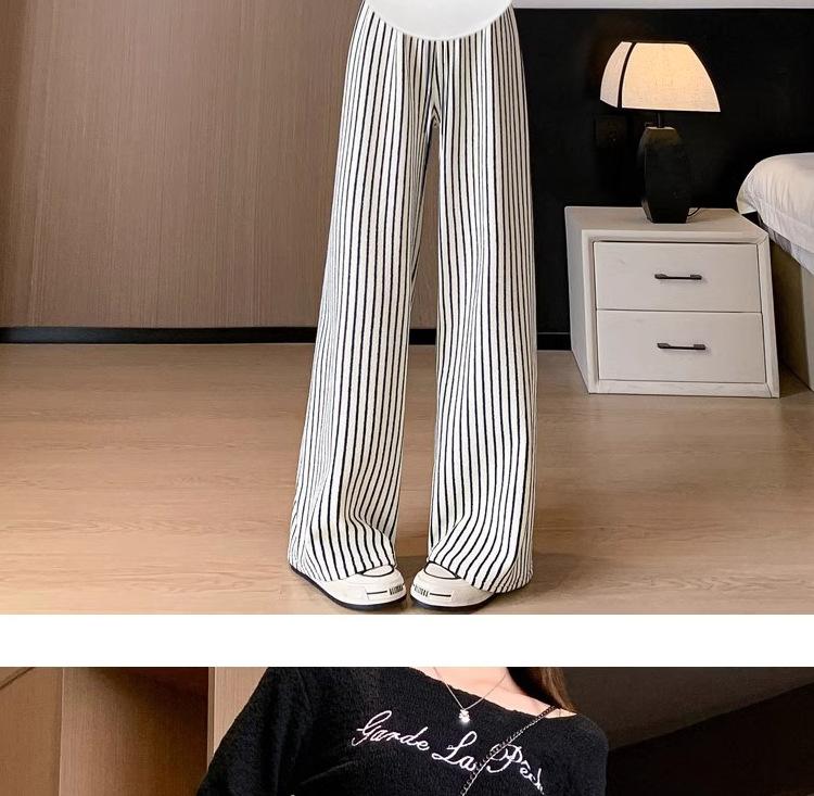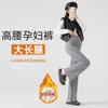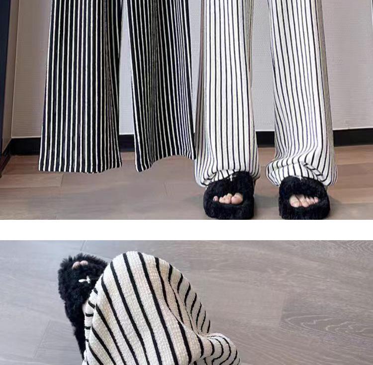 Pantalones de rayas de pierna ancha para mujeres embarazadas para otoño e invierno 2024 Ropa exterior Pantalones abdominales Holgados Casuales Perezosos con forro polar Engrosados Pantalones para mujeres embarazadas