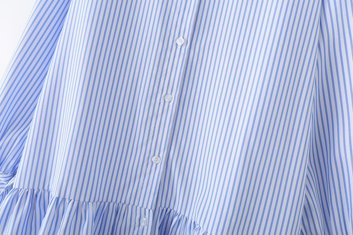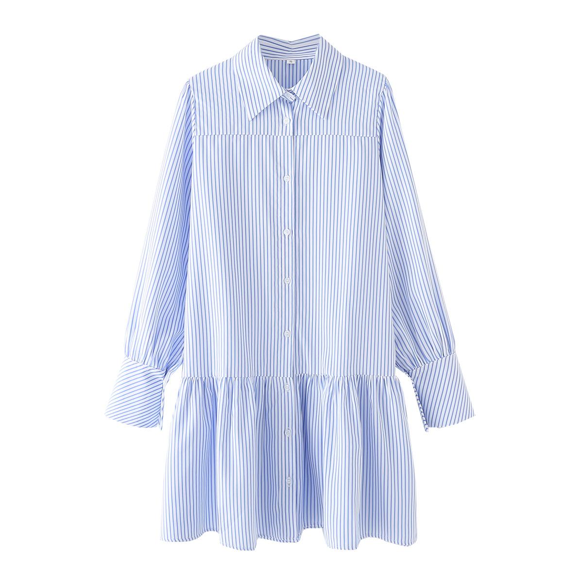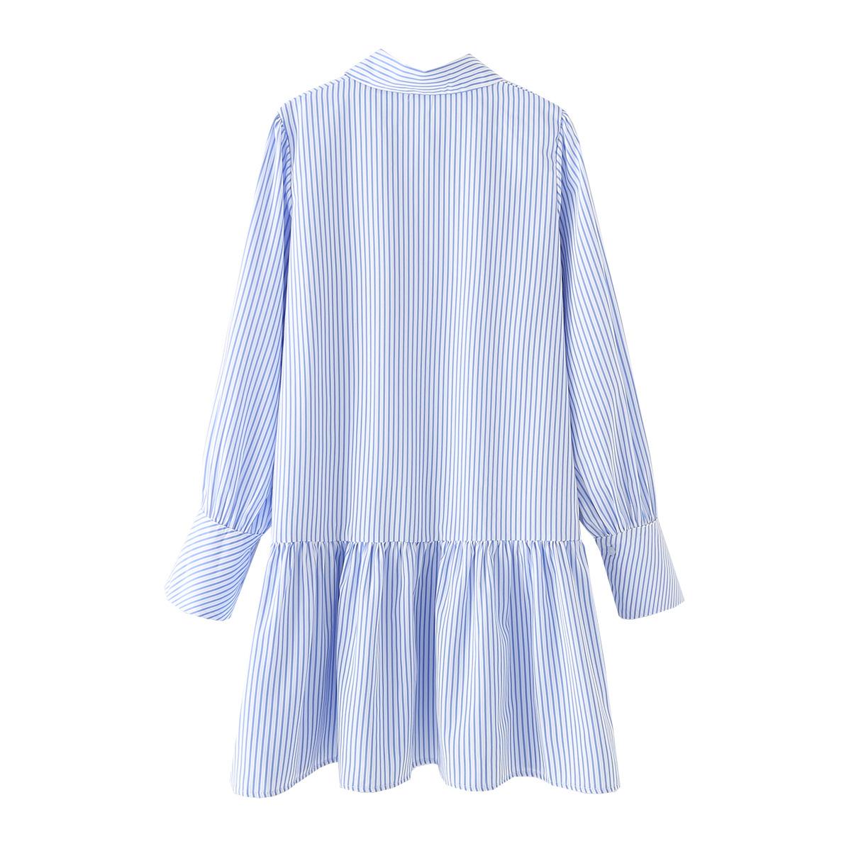 Vestido camisero de manga larga con estampado de rayas azules para mujer, estilo europeo y americano, primavera 2024 al por mayor