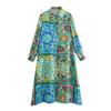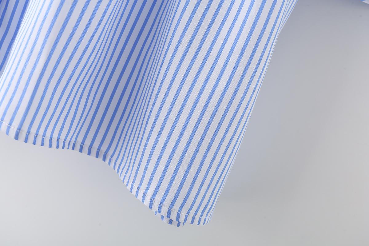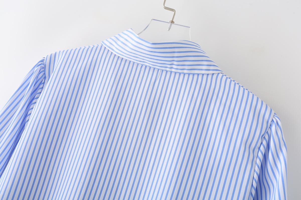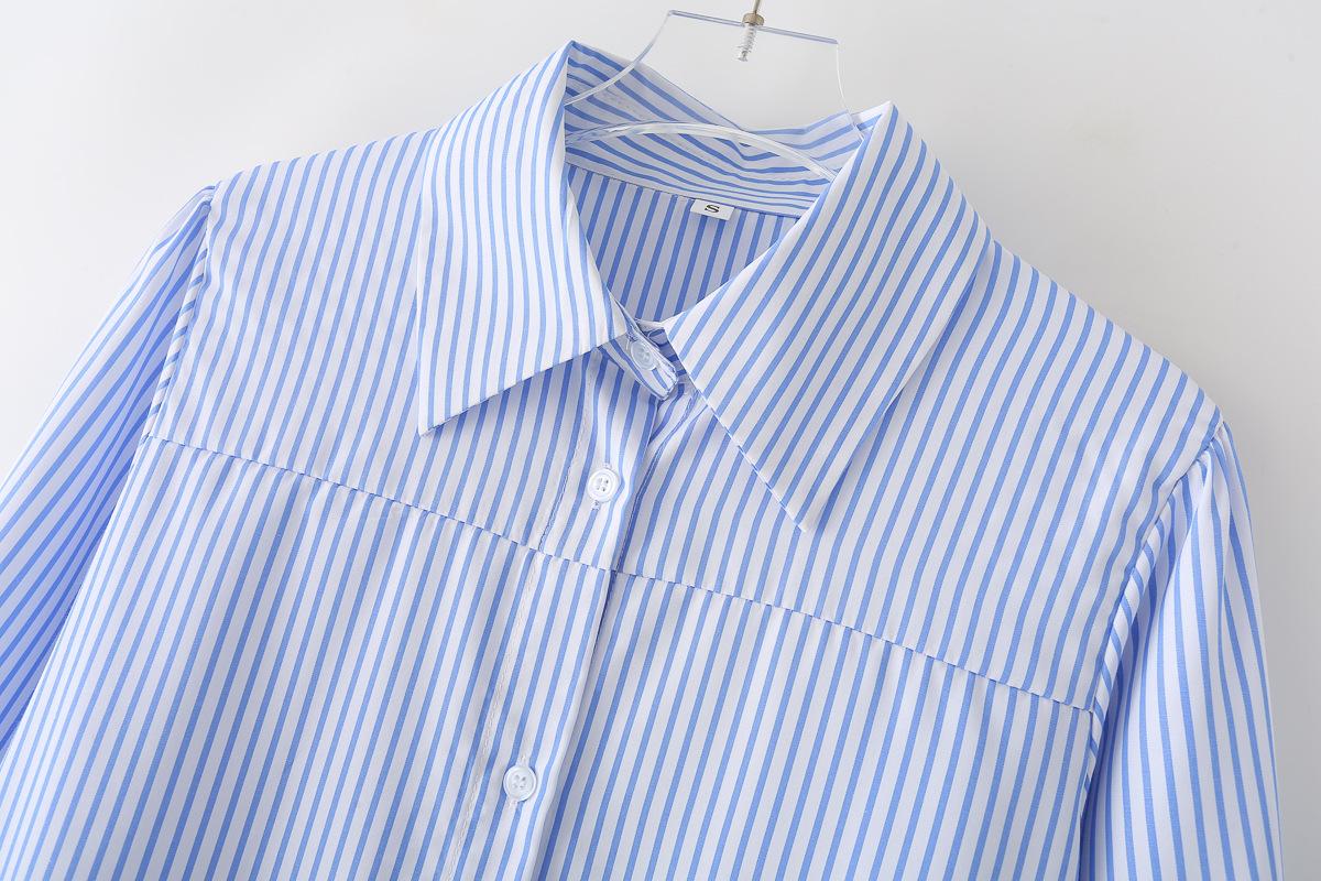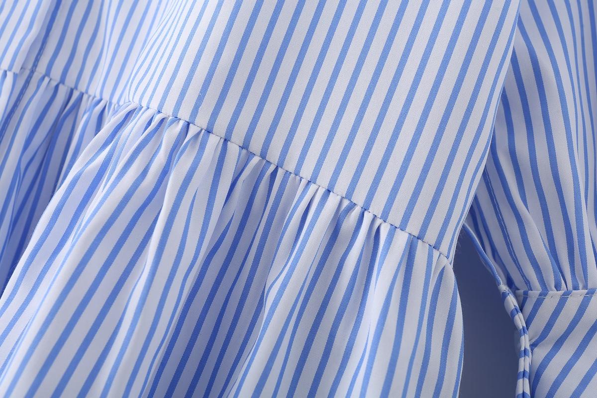 Vestido camisero de manga larga con estampado de rayas azules para mujer, estilo europeo y americano, primavera 2024 al por mayor