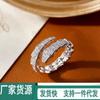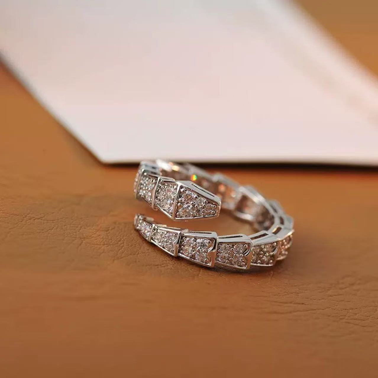 Anillo Abierto Ajustable de Serpiente con Diamantes Completos Europeos y Americanos para Mujer, Nicho de Lujo Ligero de Alta Gama Estilo Minimalista Anillo para Dedo Índice y Cola al Mayoreo