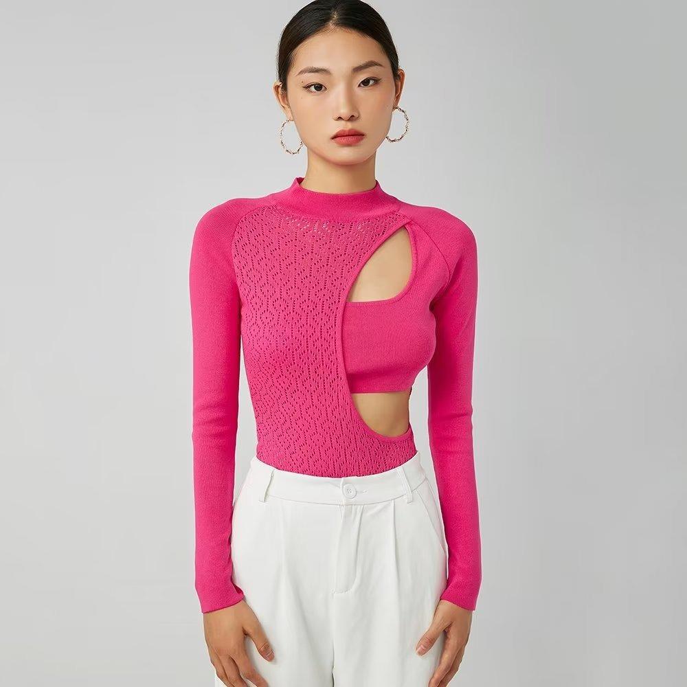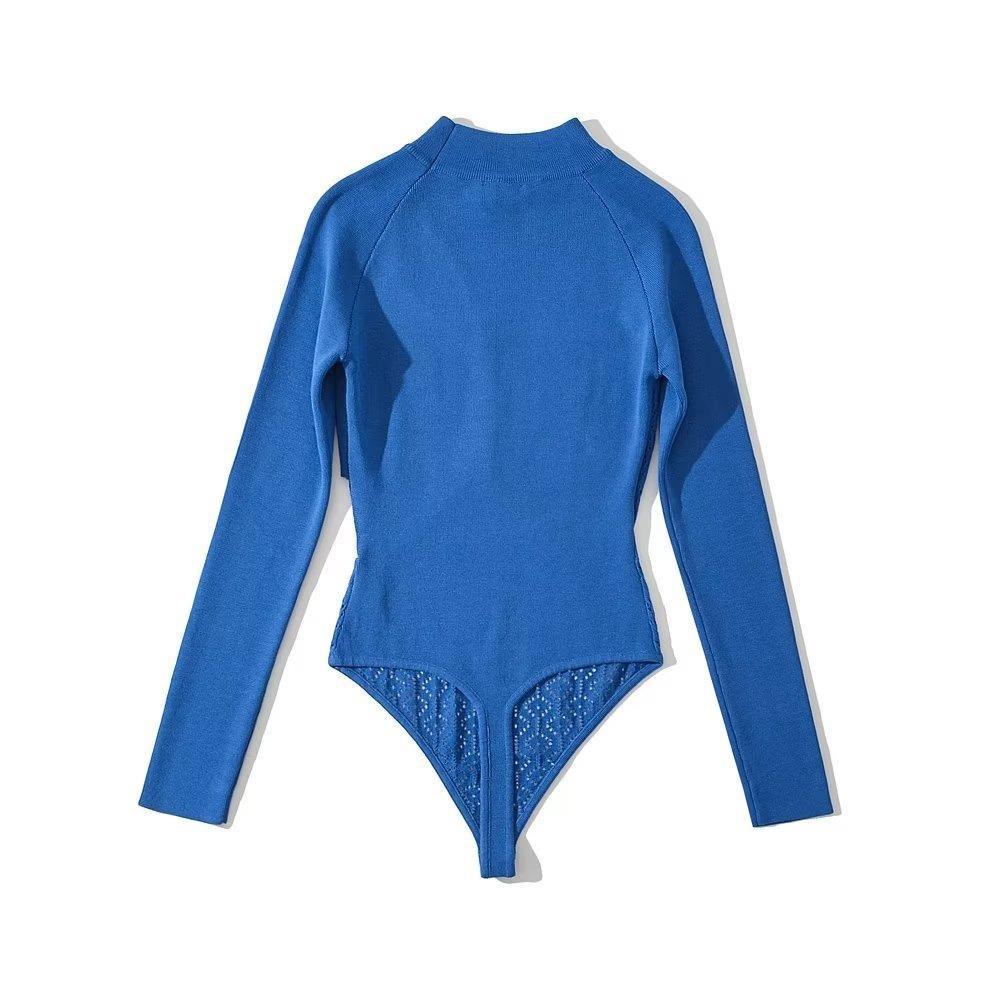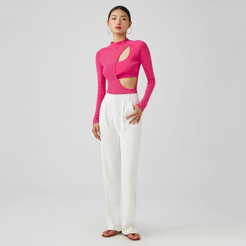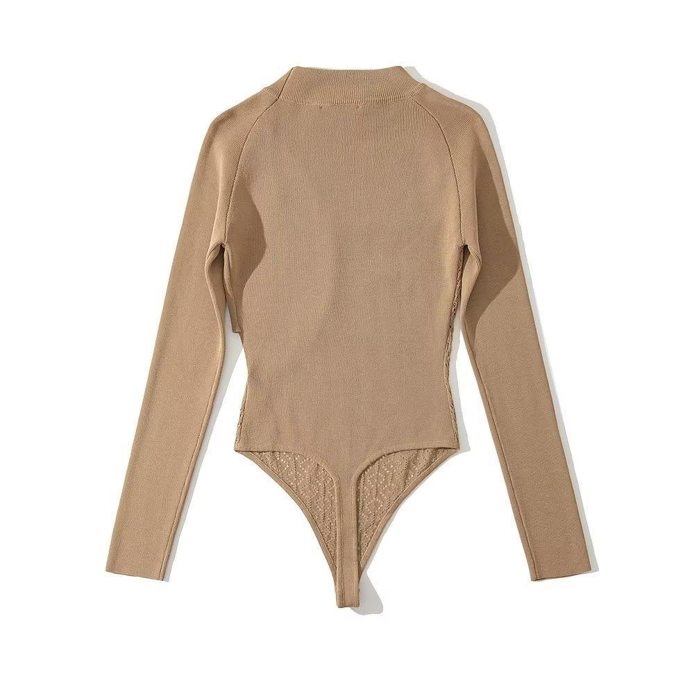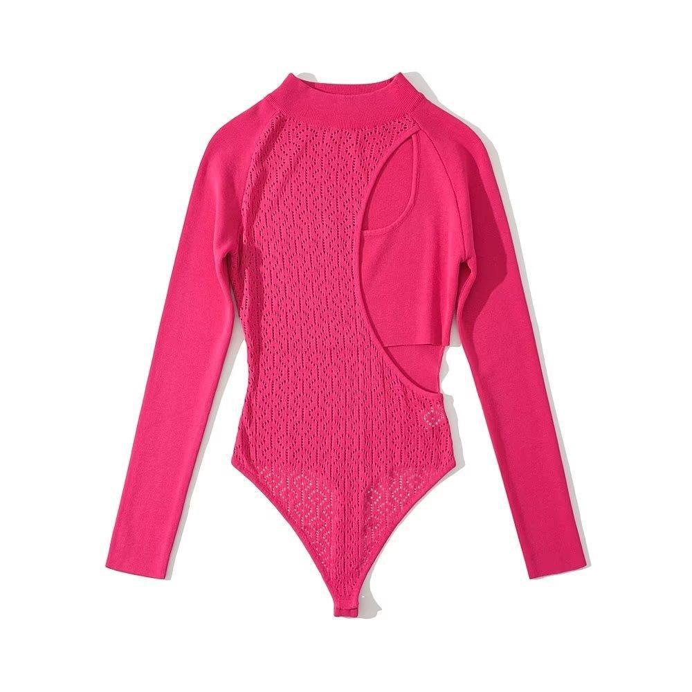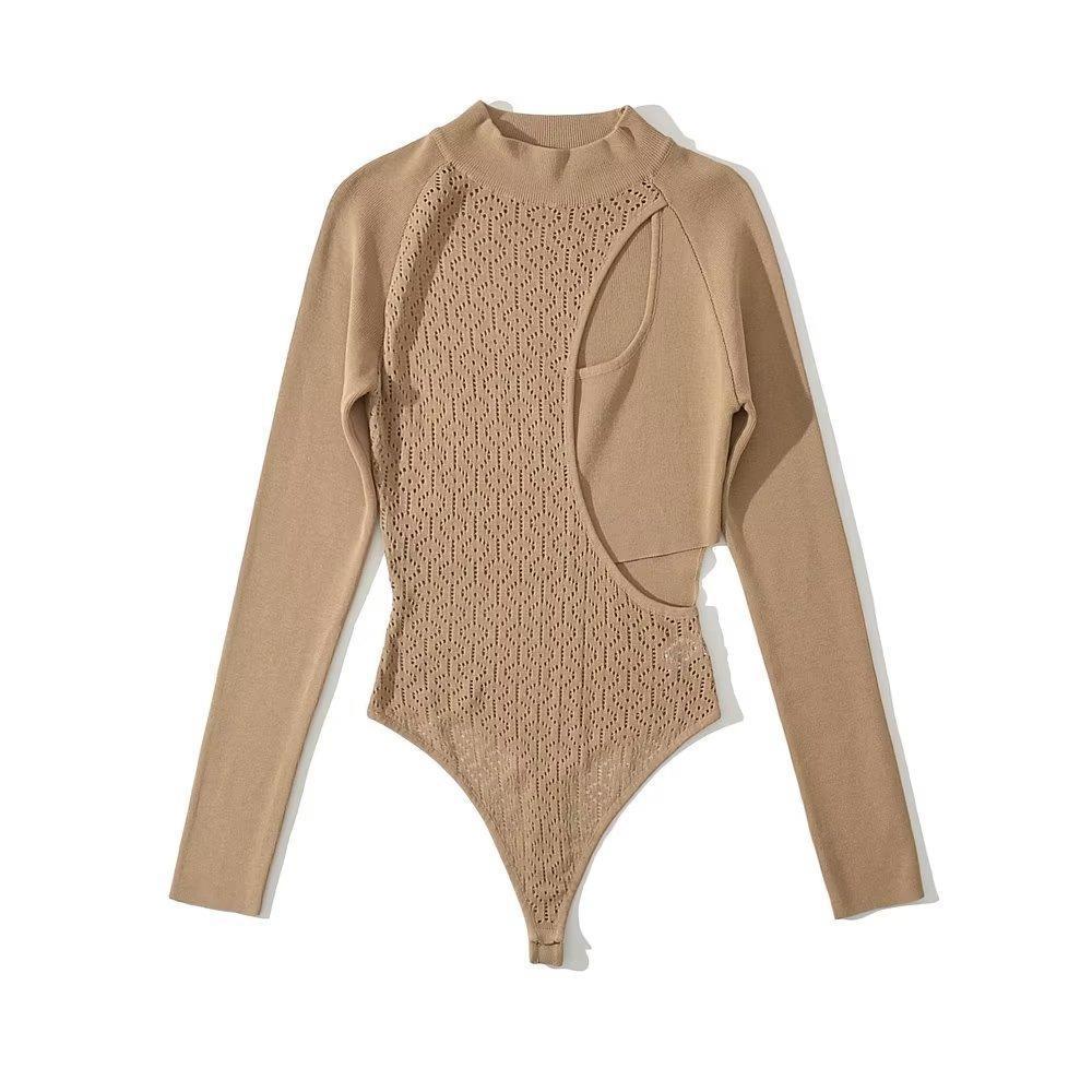 Jumpsuit de punto ajustado de manga larga con cuello redondo y diseño cruzado hueco dislocado, nuevo otoño 2022 para mujer europea y americana, venta al por mayor