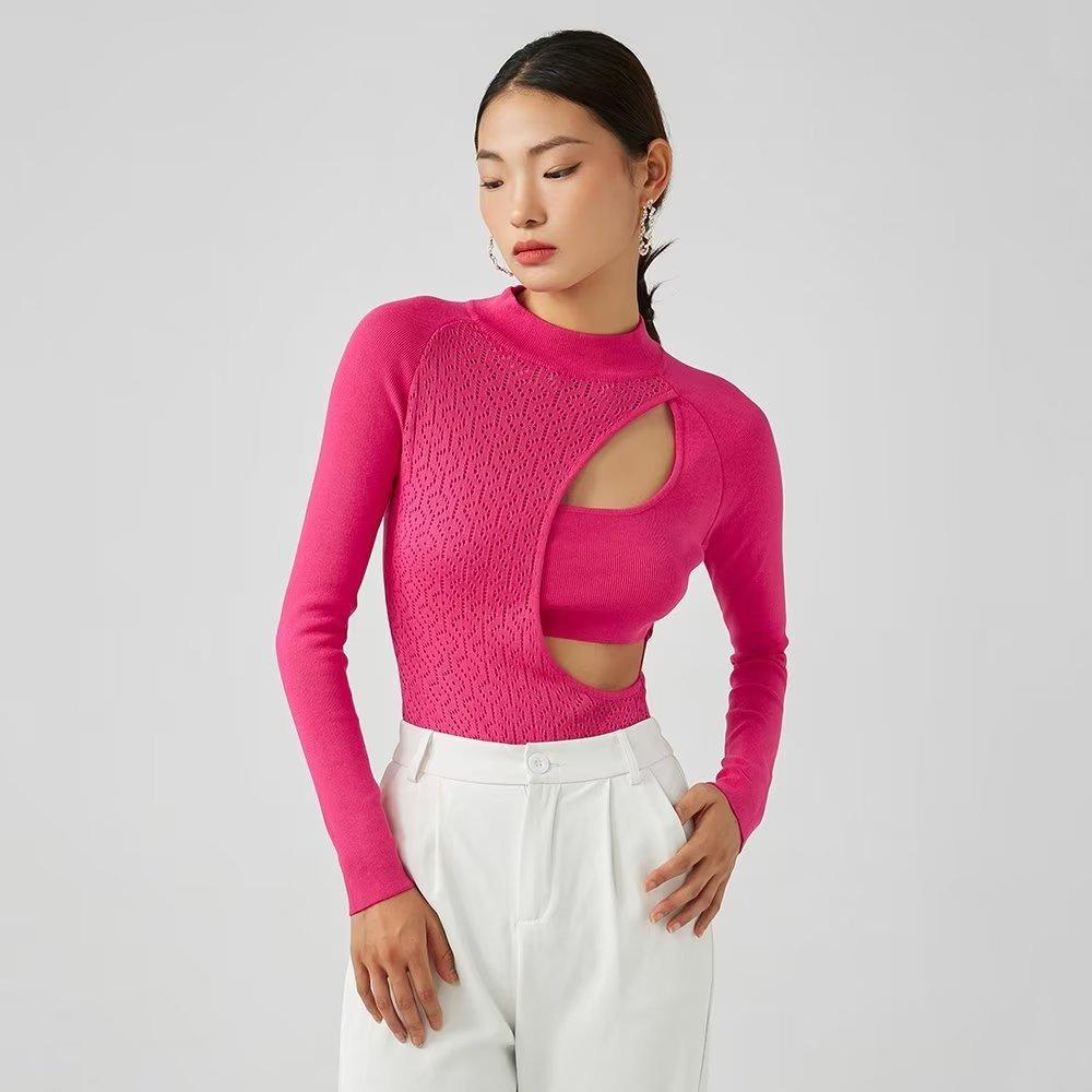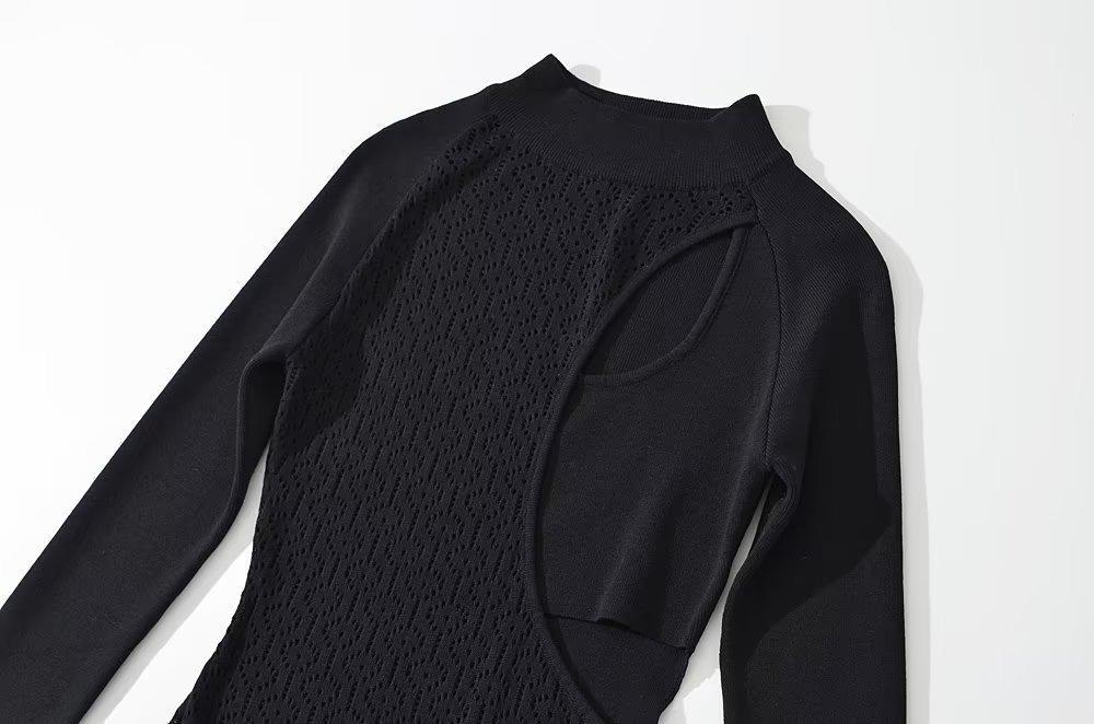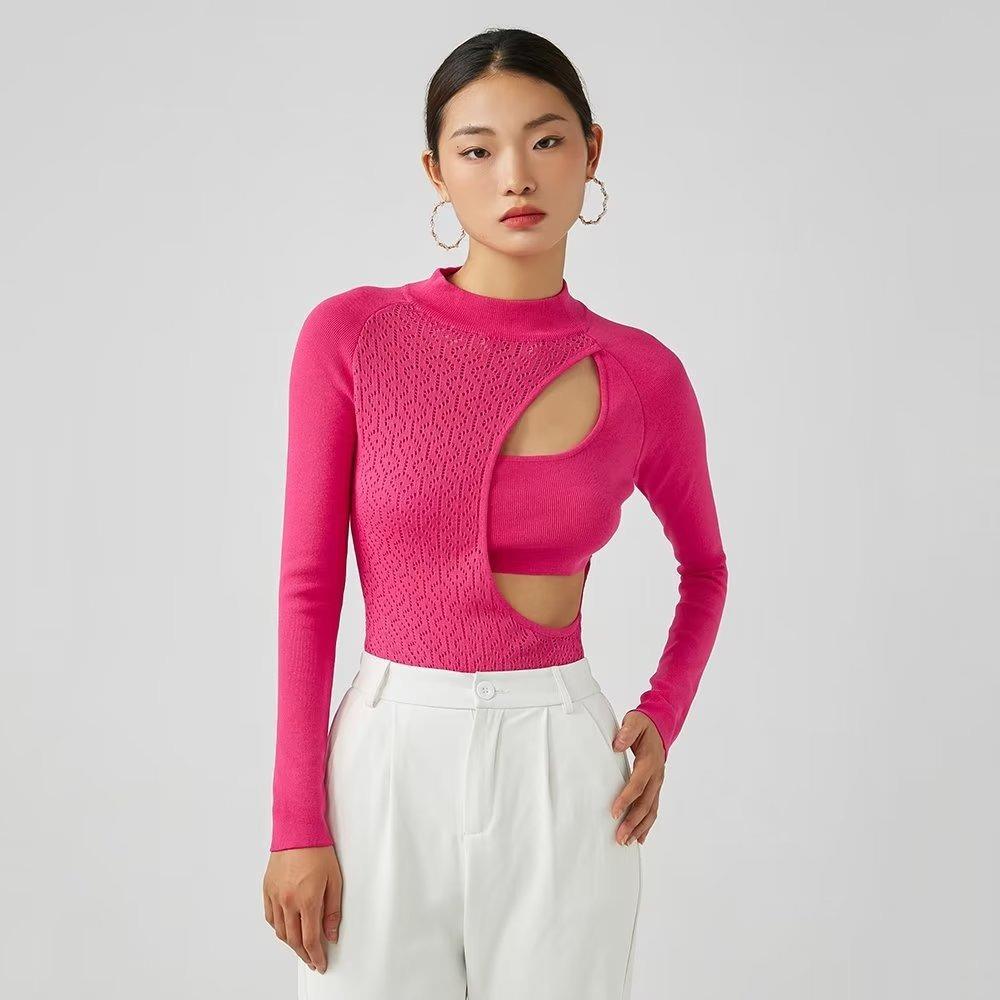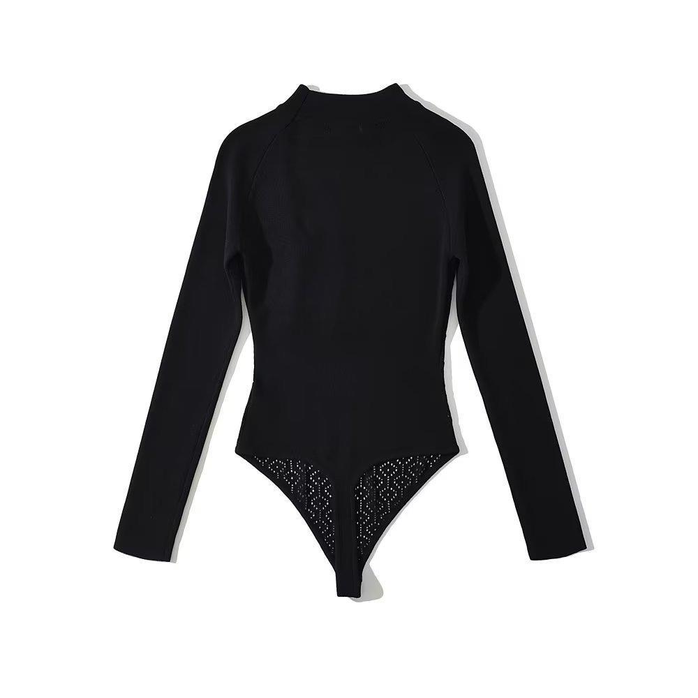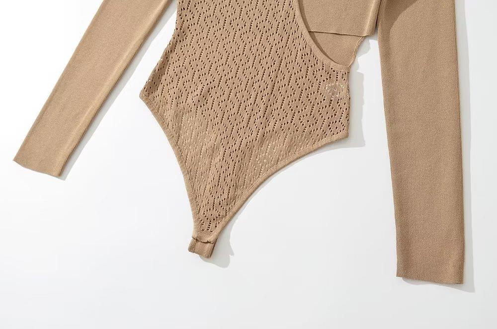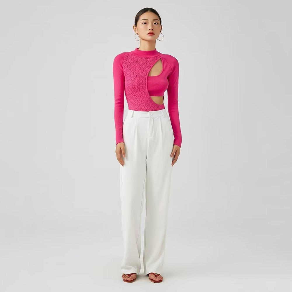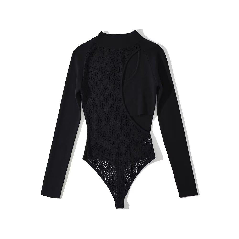 Jumpsuit de punto ajustado de manga larga con cuello redondo y diseño cruzado hueco dislocado, nuevo otoño 2022 para mujer europea y americana, venta al por mayor