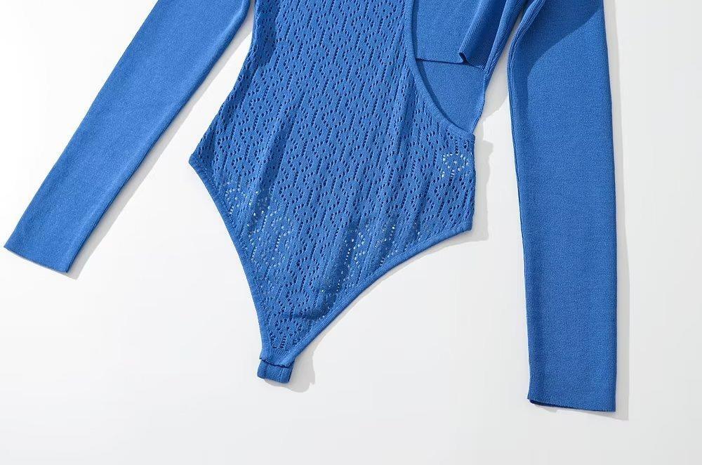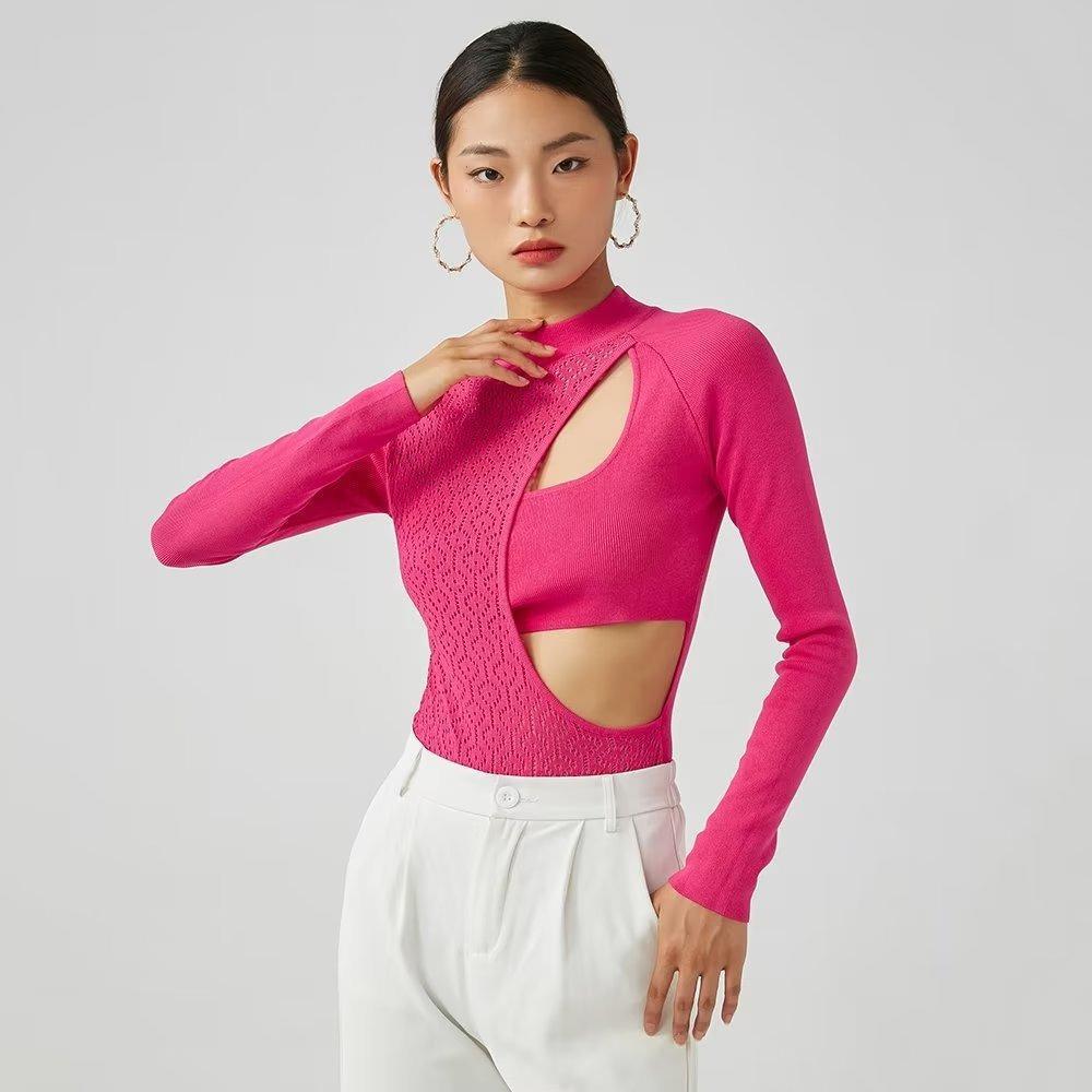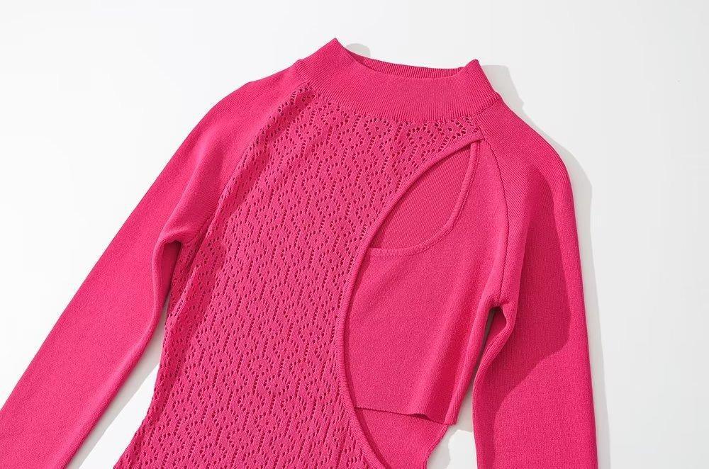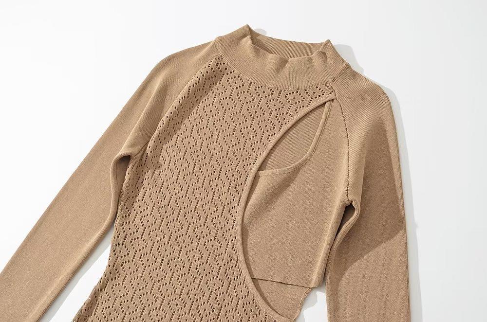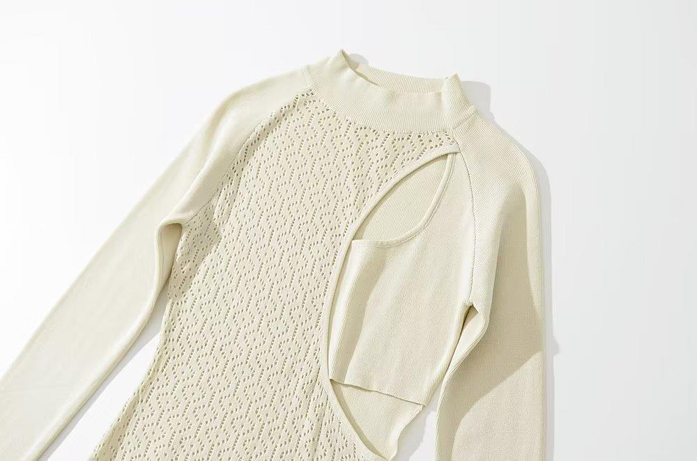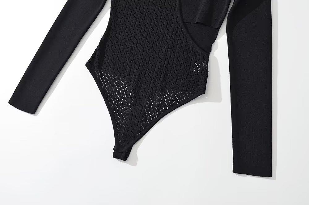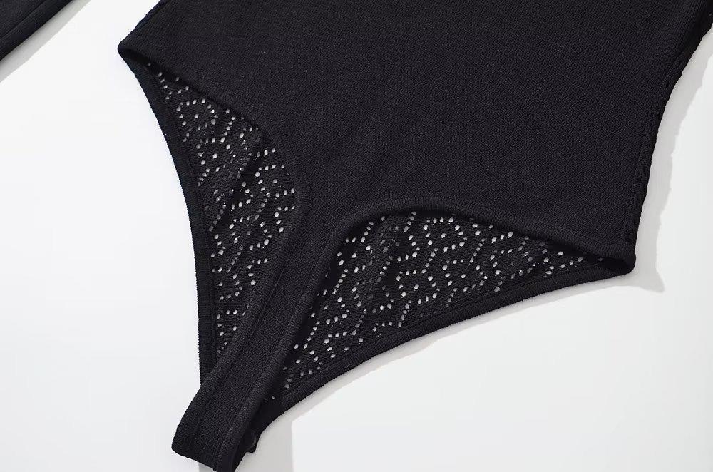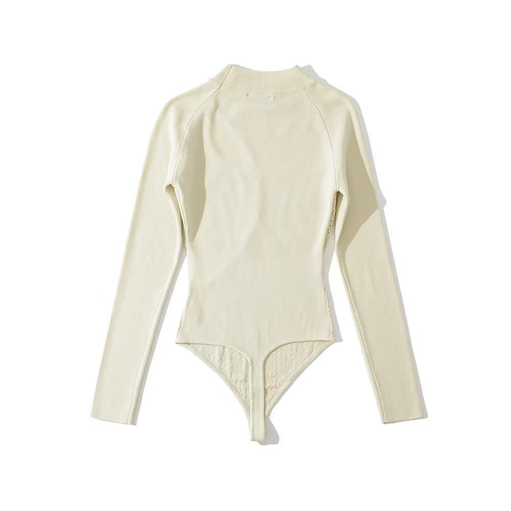 Jumpsuit de punto ajustado de manga larga con cuello redondo y diseño cruzado hueco dislocado, nuevo otoño 2022 para mujer europea y americana, venta al por mayor