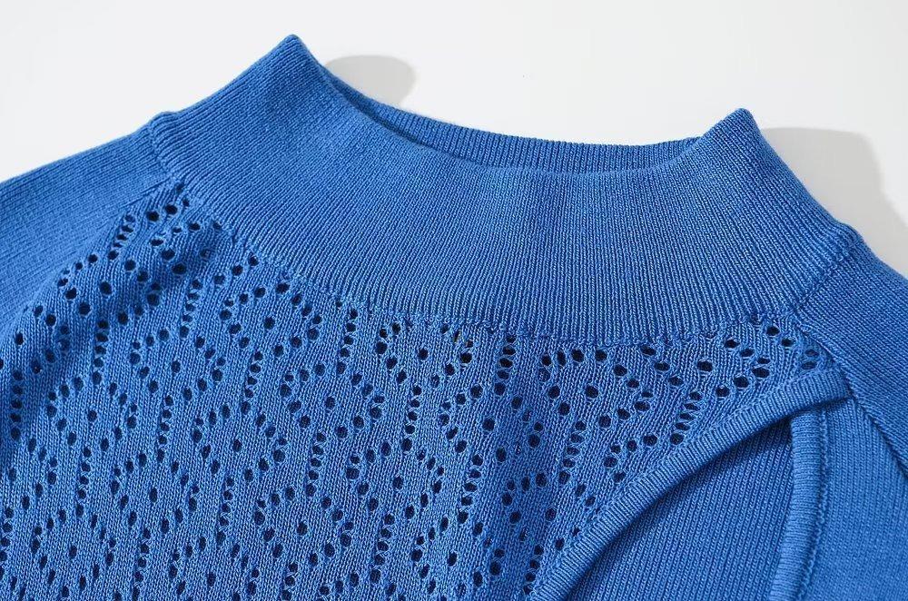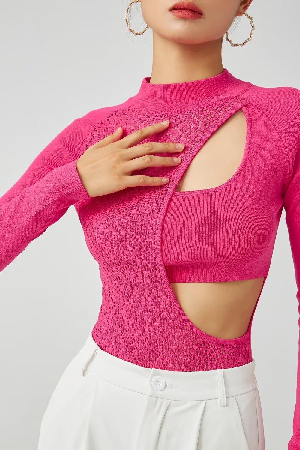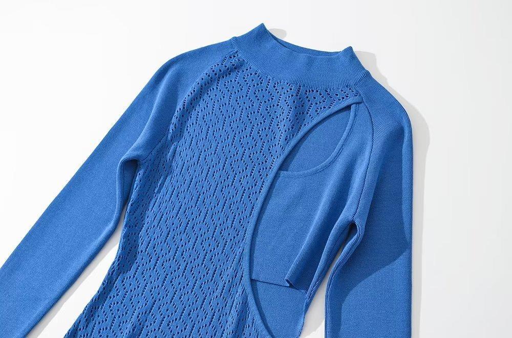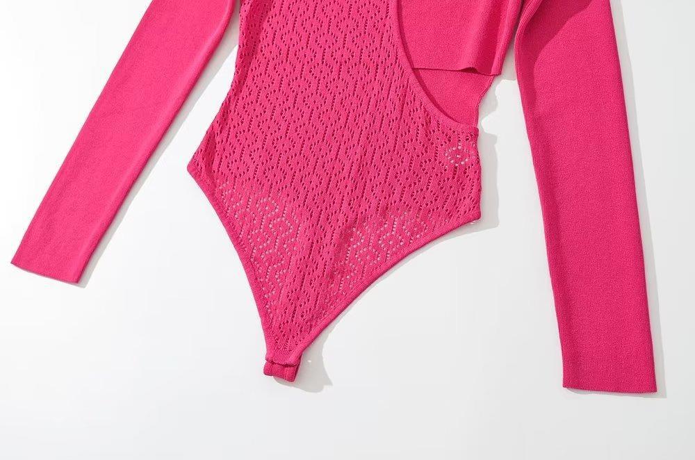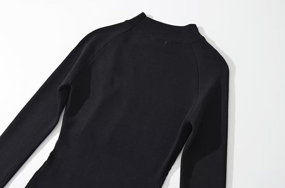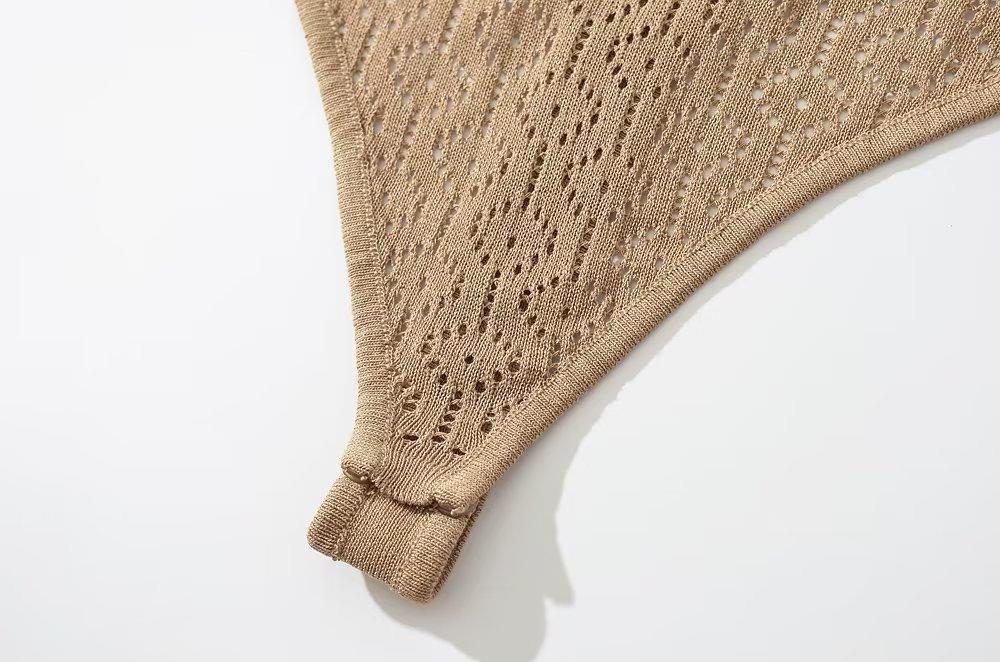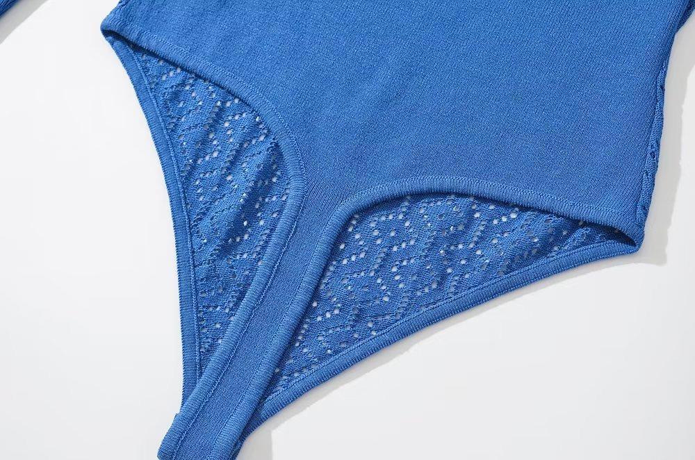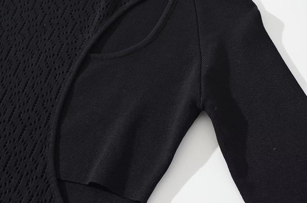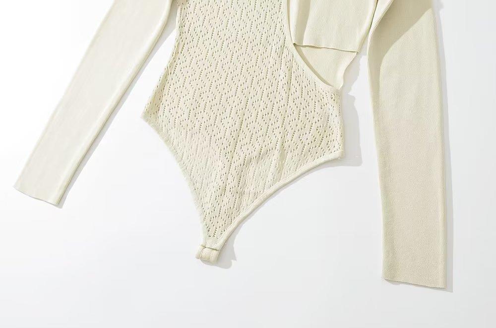 Jumpsuit de punto ajustado de manga larga con cuello redondo y diseño cruzado hueco dislocado, nuevo otoño 2022 para mujer europea y americana, venta al por mayor