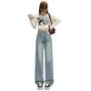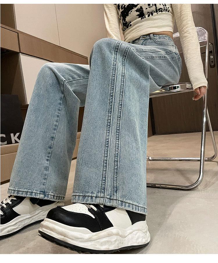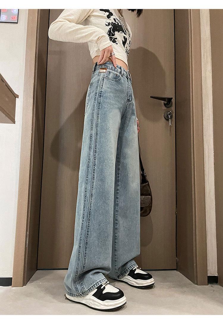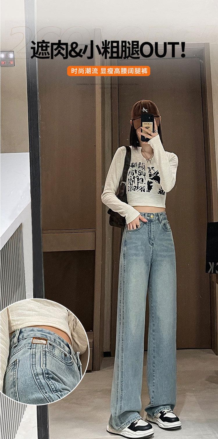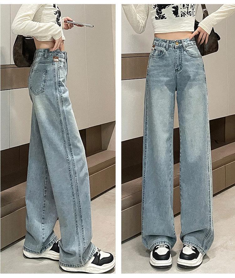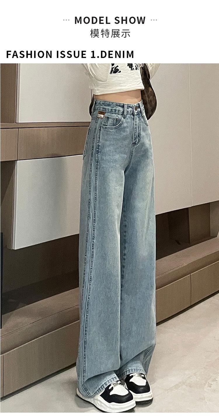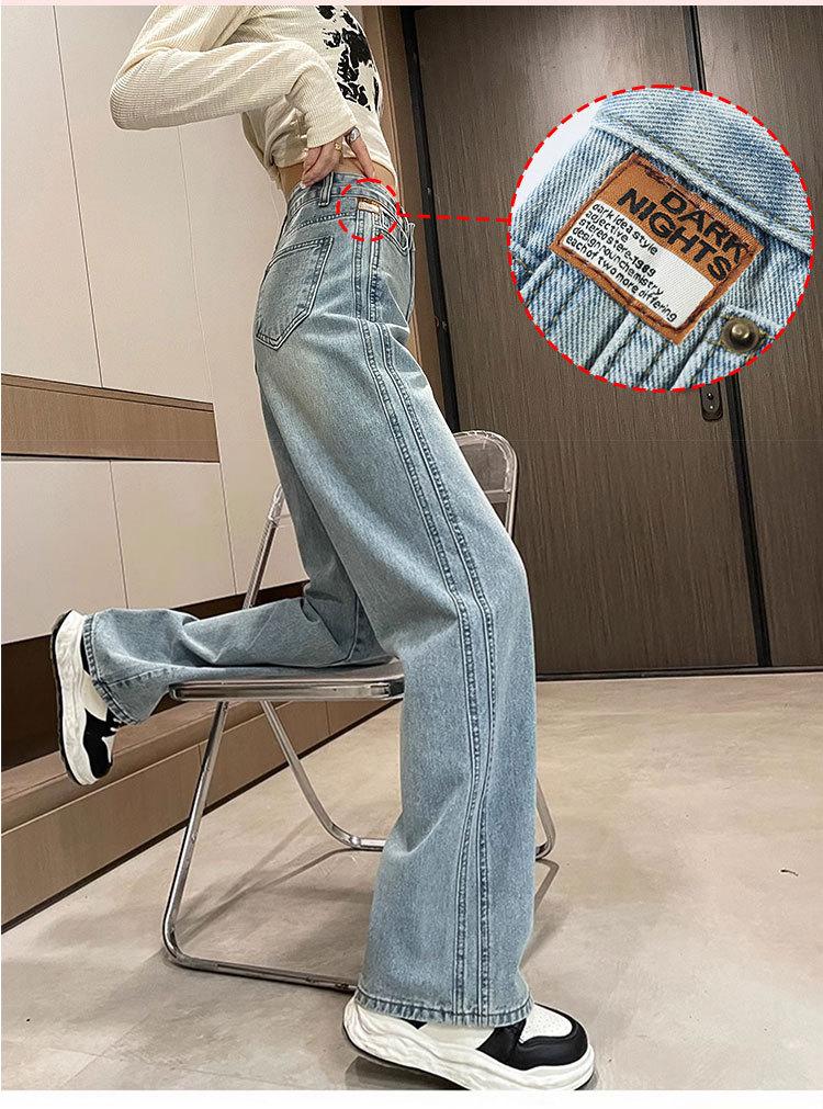 Jeans de pierna ancha para mujer de talla grande, nuevos de primavera y otoño, retro versátiles, diseño de cintura alta que estiliza, pantalones largos hasta el suelo