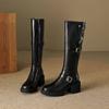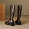 Botas de caballero de piel auténtica para mujer de otoño e invierno, color sólido, cremallera trasera, tacón alto, talla grande, botas para mujer versátiles, tacón cuadrado, piel de vaca, botas de caña alta