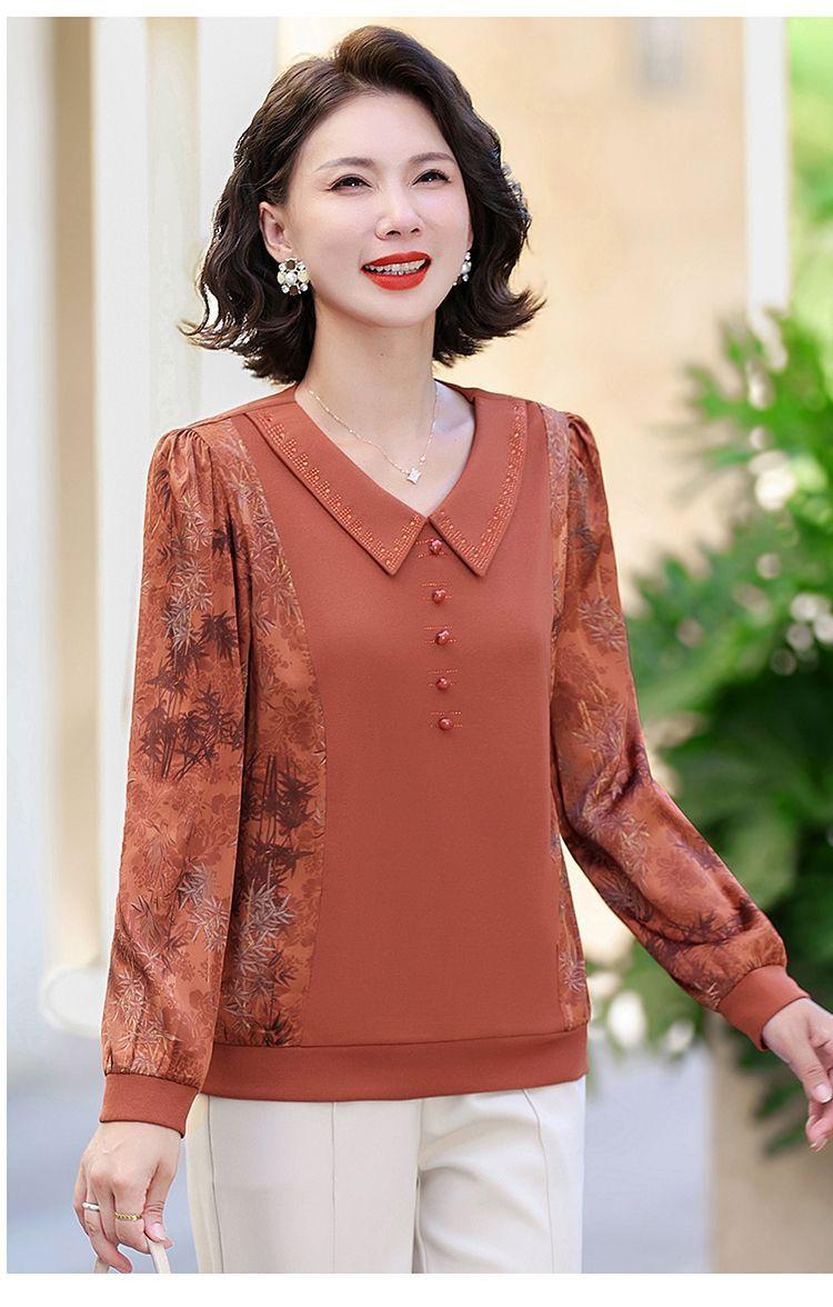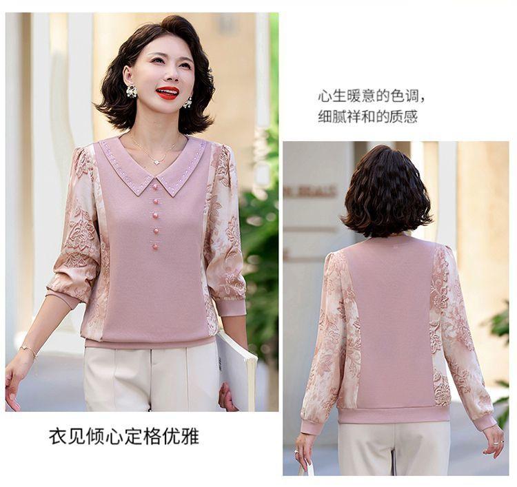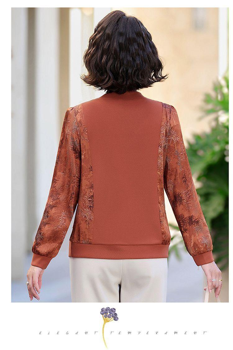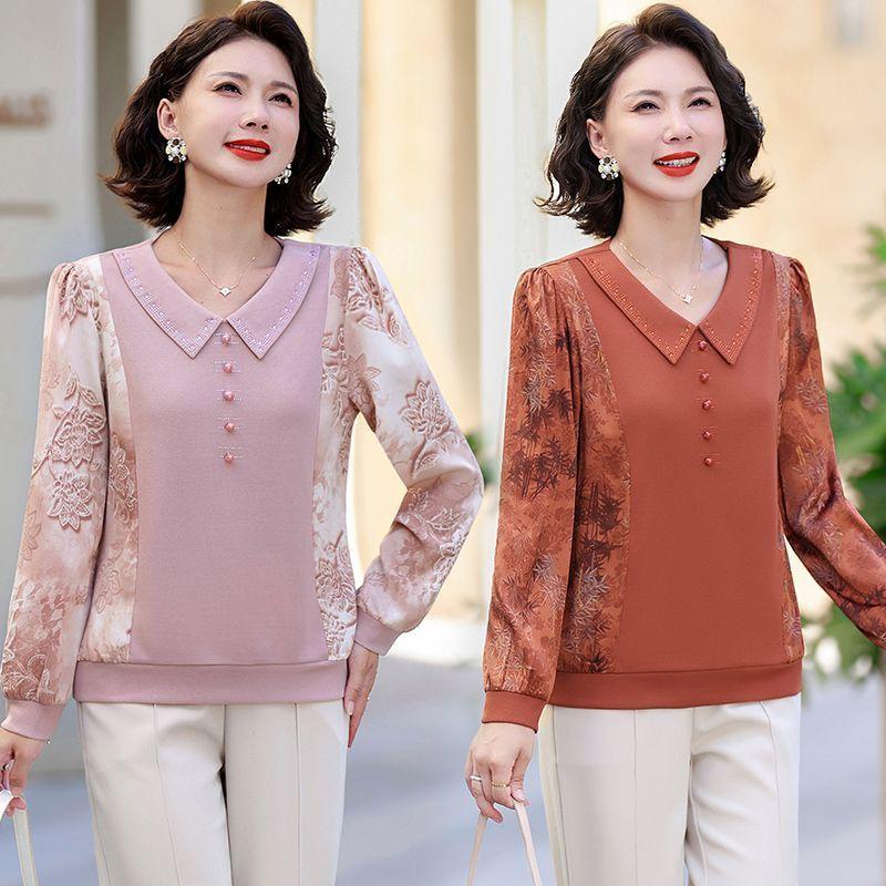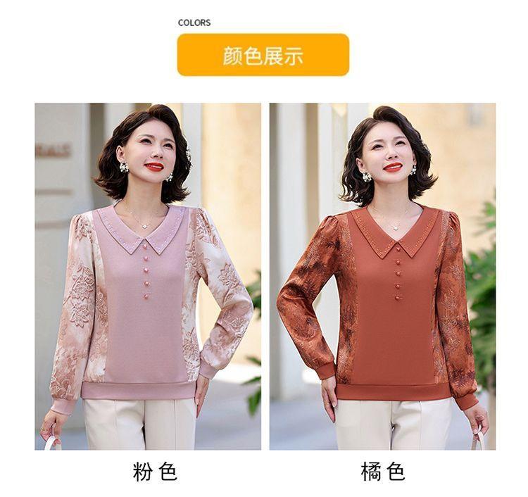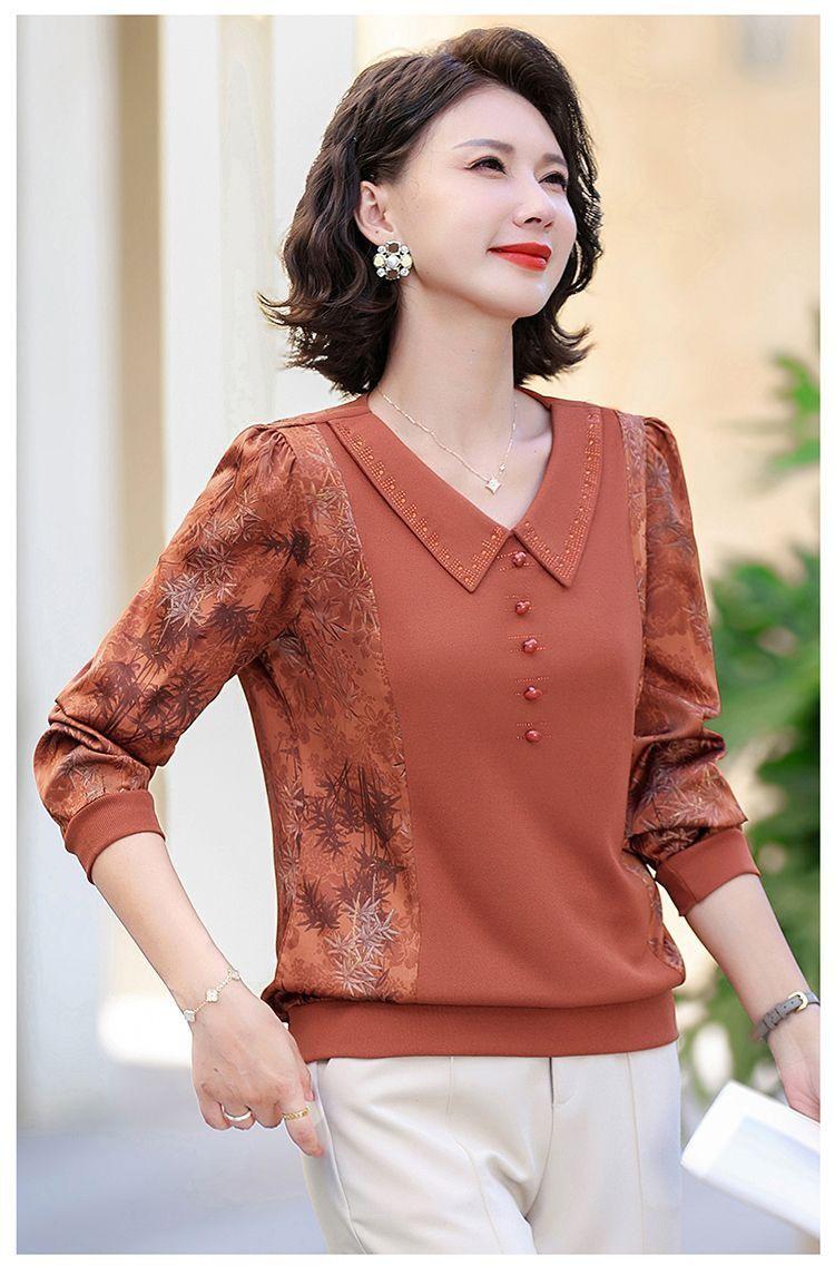 Camiseta Base de Otoño para Mamá 2025 Nueva Camiseta de Moda de Otoño para Mujeres de Mediana Edad y Mayores Estilo Corto Camisa Pequeña para Mujer