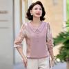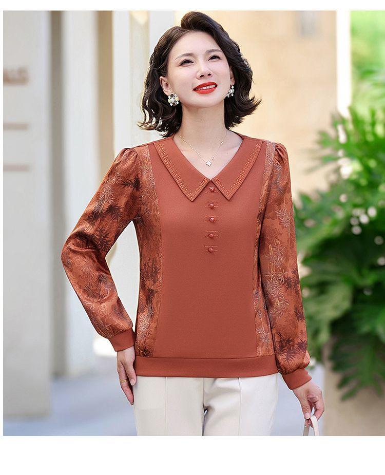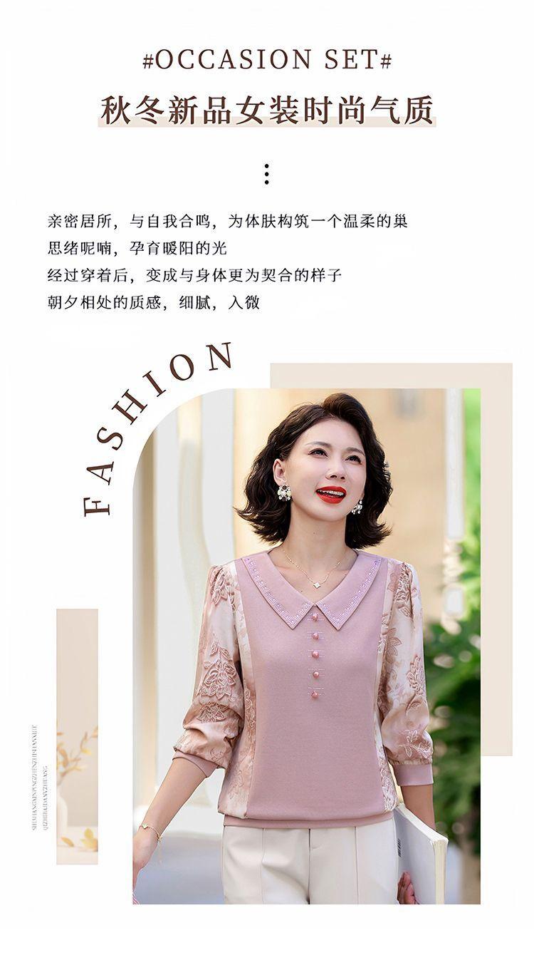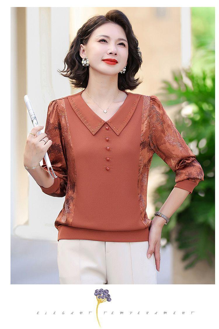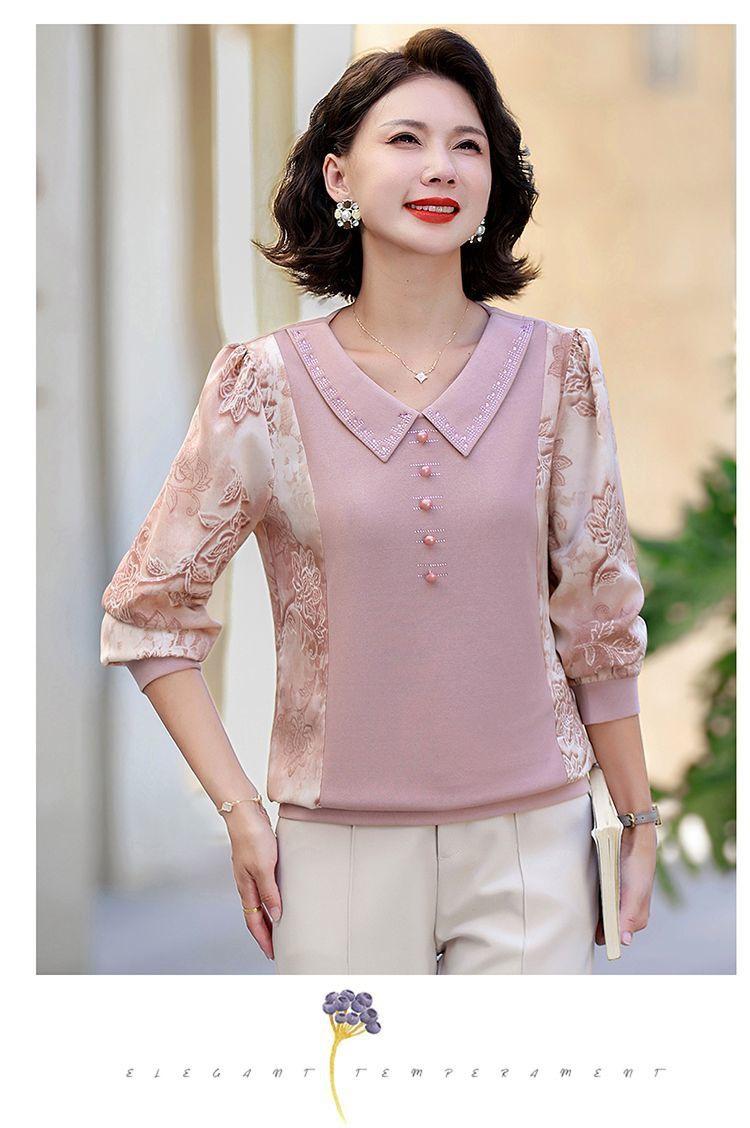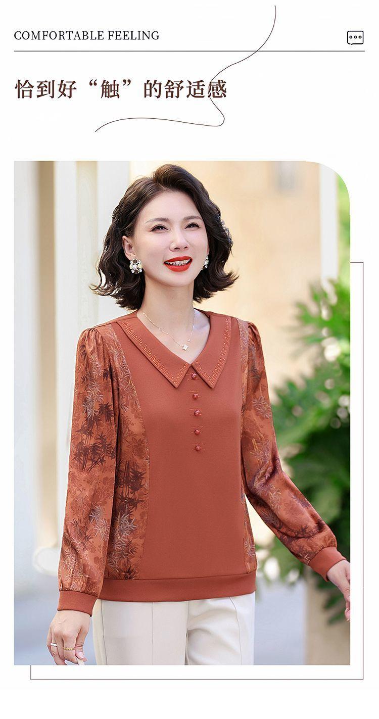Camiseta Base de Otoño para Mamá 2025 Nueva Camiseta de Moda de Otoño para Mujeres de Mediana Edad y Mayores Estilo Corto Camisa Pequeña para Mujer