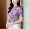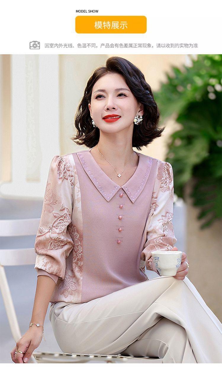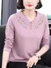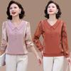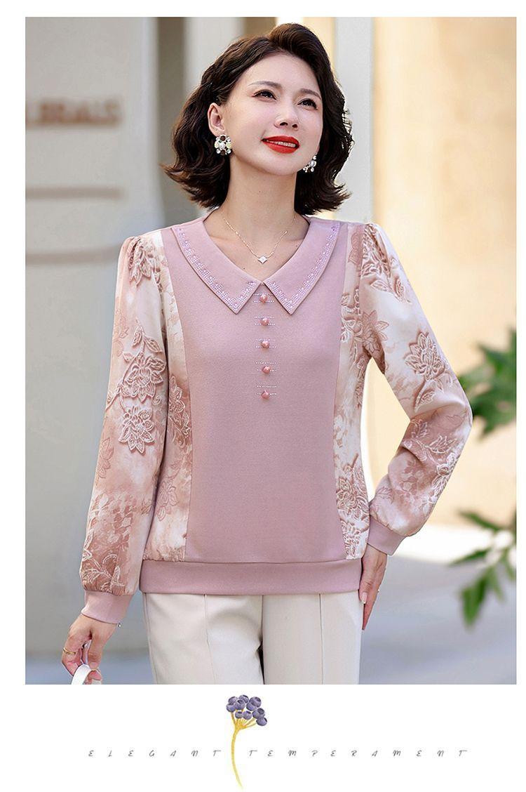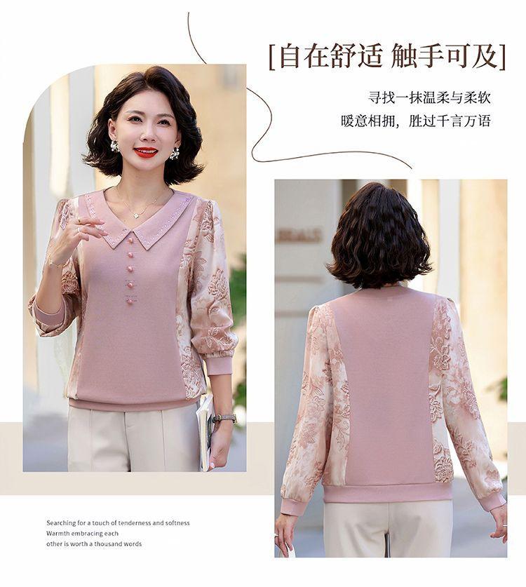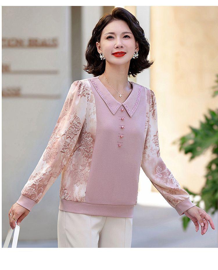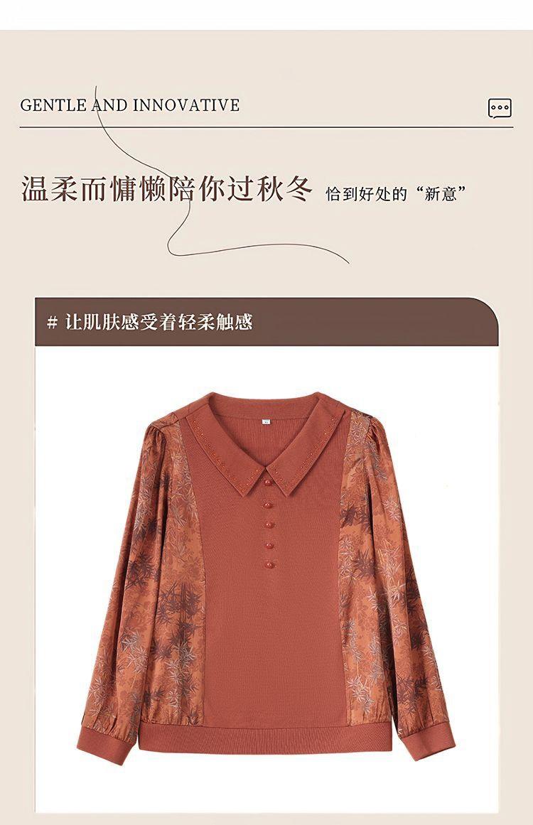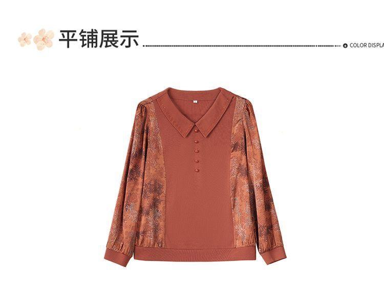 Camiseta Base de Otoño para Mamá 2025 Nueva Camiseta de Moda de Otoño para Mujeres de Mediana Edad y Mayores Estilo Corto Camisa Pequeña para Mujer