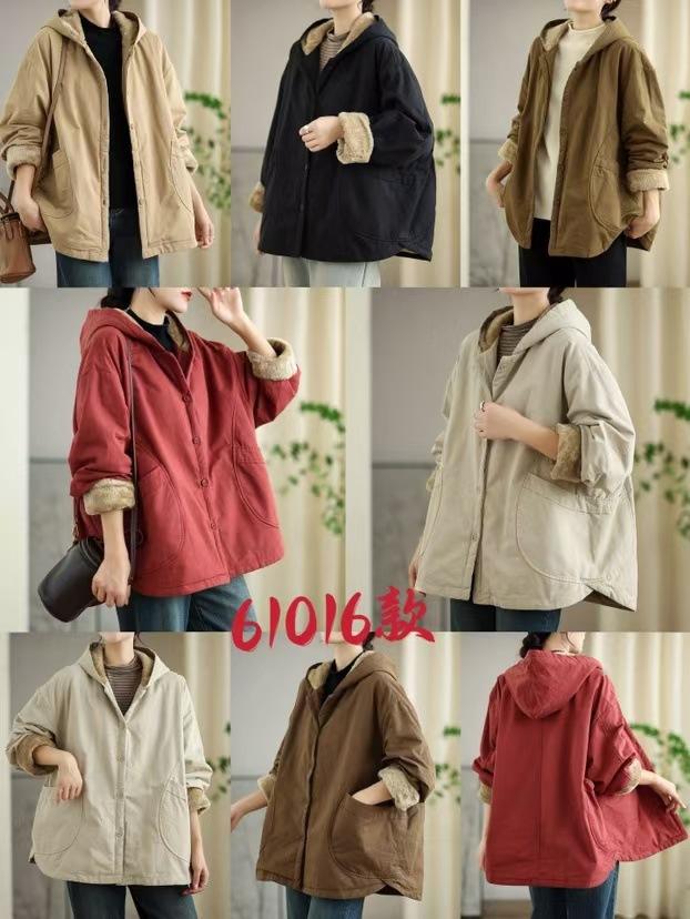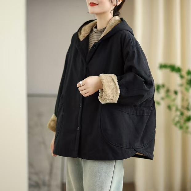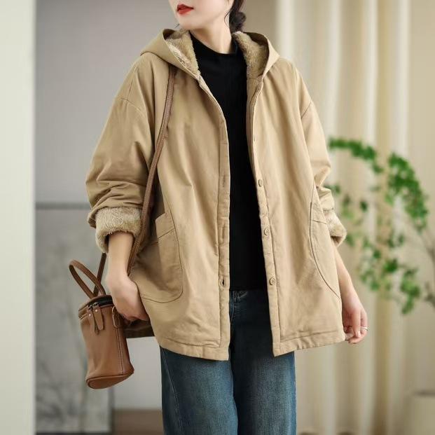 Chaqueta Acolchada de Algodón con Terciopelo Plus 2024 Invierno Nueva Retro con Capucha Cálida Chaqueta Acolchada de Algodón para Mujer Estilo Universitario Chaqueta Casual Chaqueta Gruesa