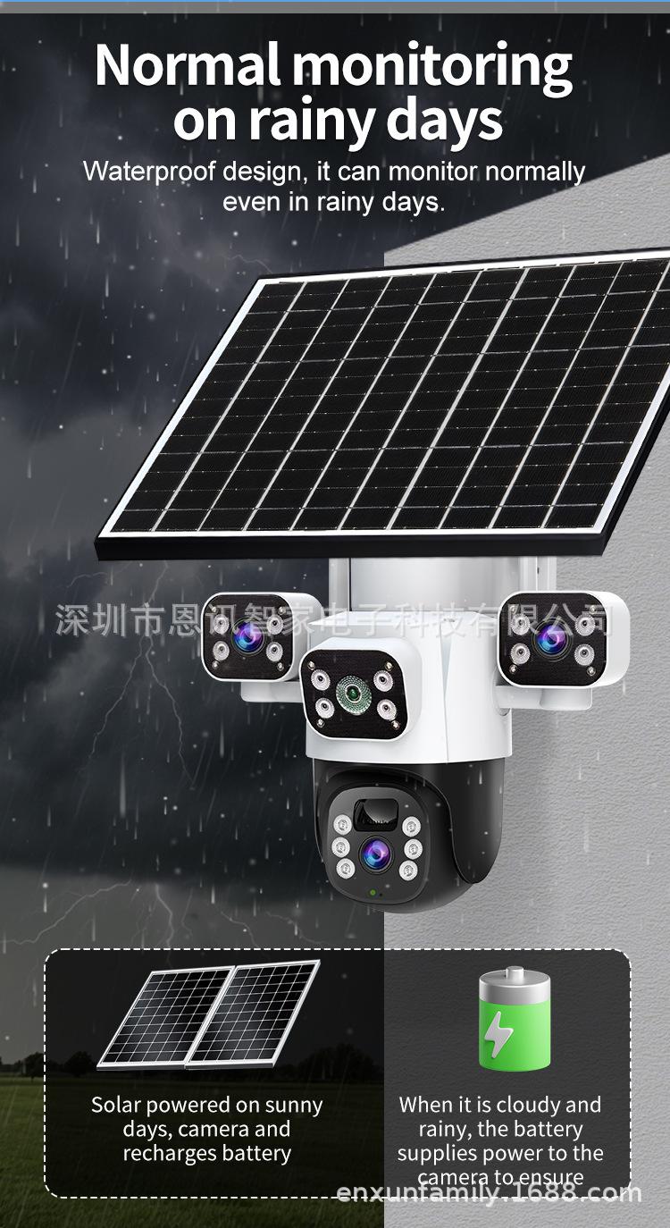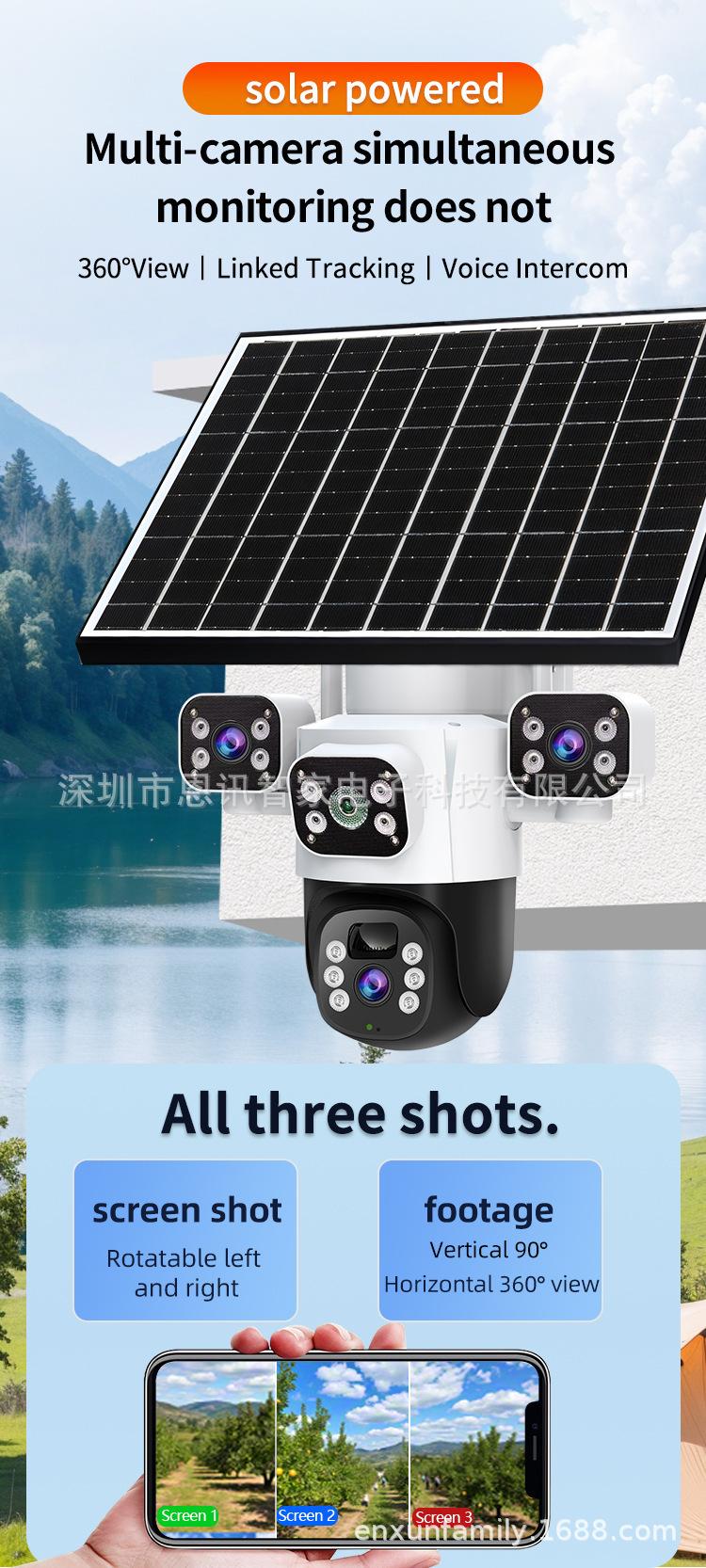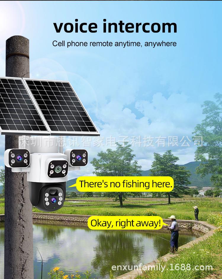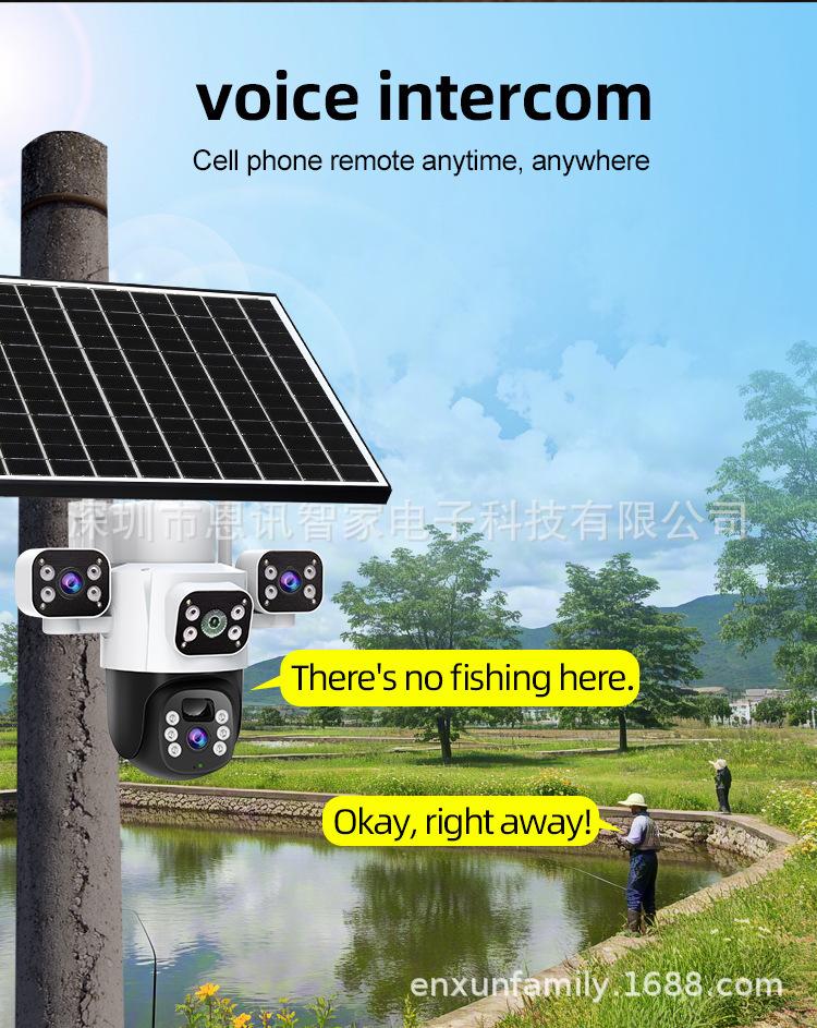Cámara Solar de Tres Lentes de Venta Caliente Transfronteriza Visión Nocturna a Color Impermeable para Exteriores Intercomunicador de Voz Monitor Personalizado