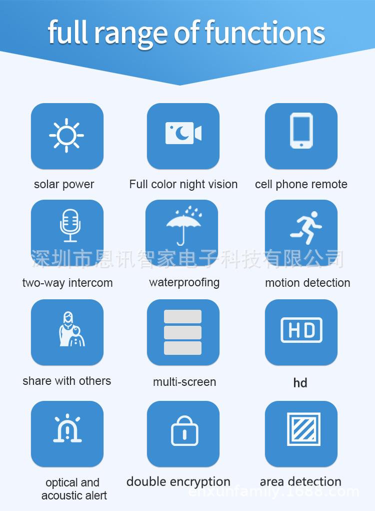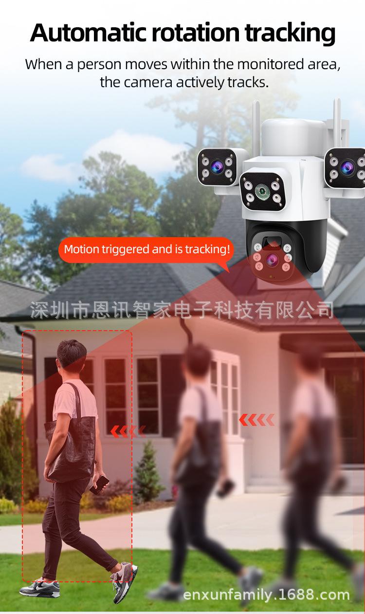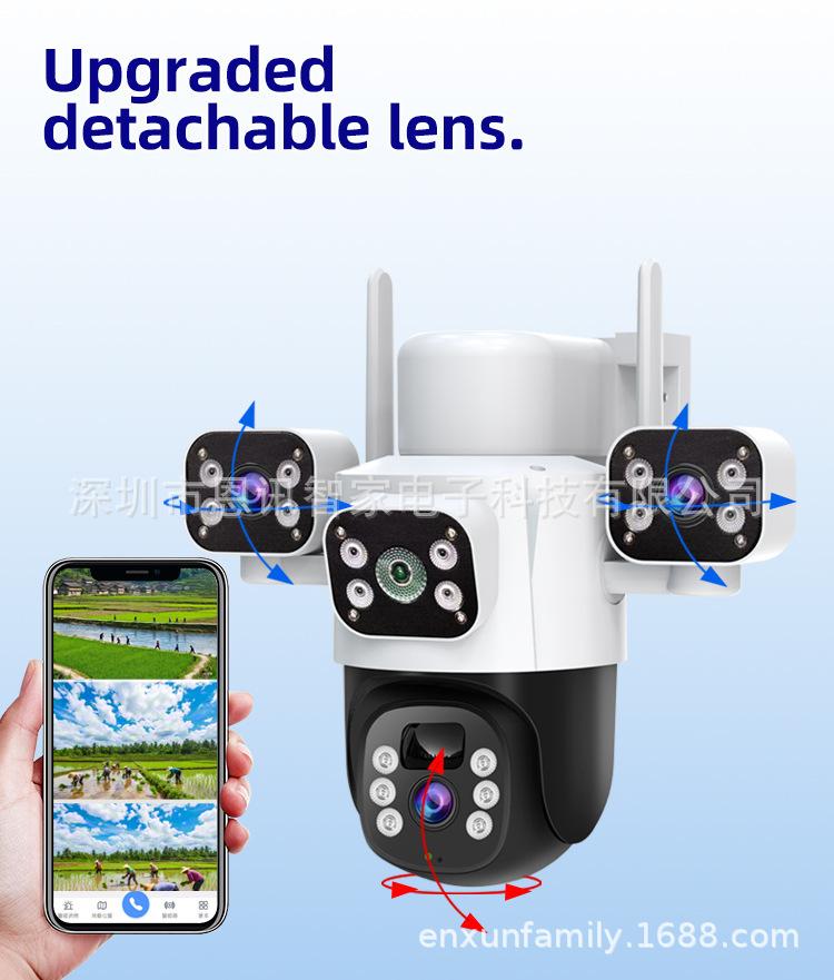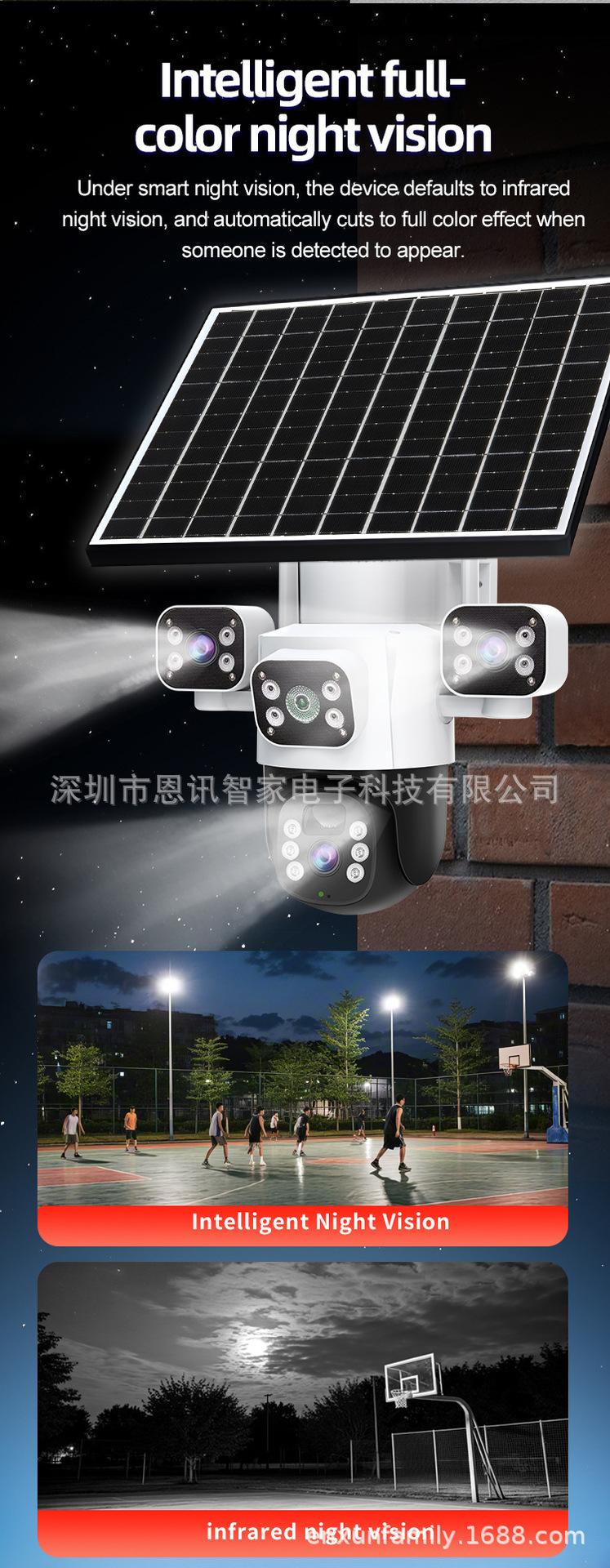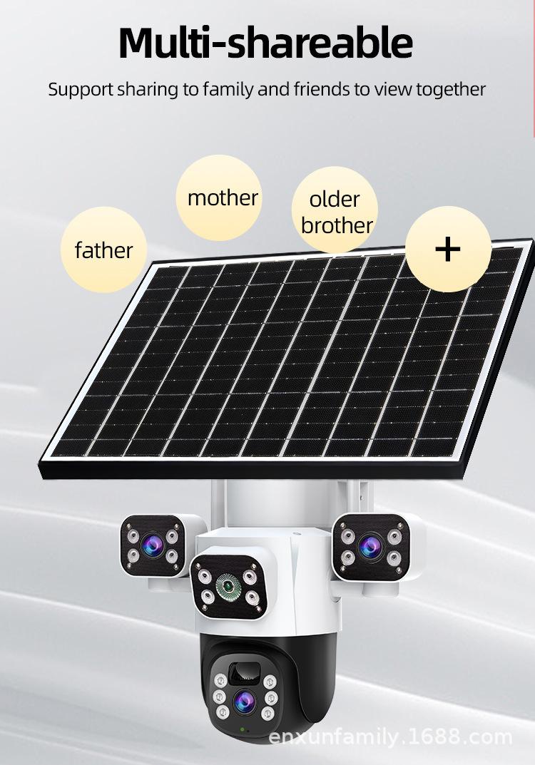 Cámara Solar de Tres Lentes de Venta Caliente Transfronteriza Visión Nocturna a Color Impermeable para Exteriores Intercomunicador de Voz Monitor Personalizado