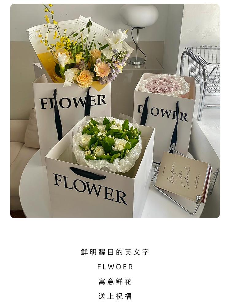 Bolsa Tote Flor Flor Estilo Ins Bolsa de Papel Ramo Regalo Bolsa de Embalaje Bolsa Grande de Papel Kraft Arte Floral