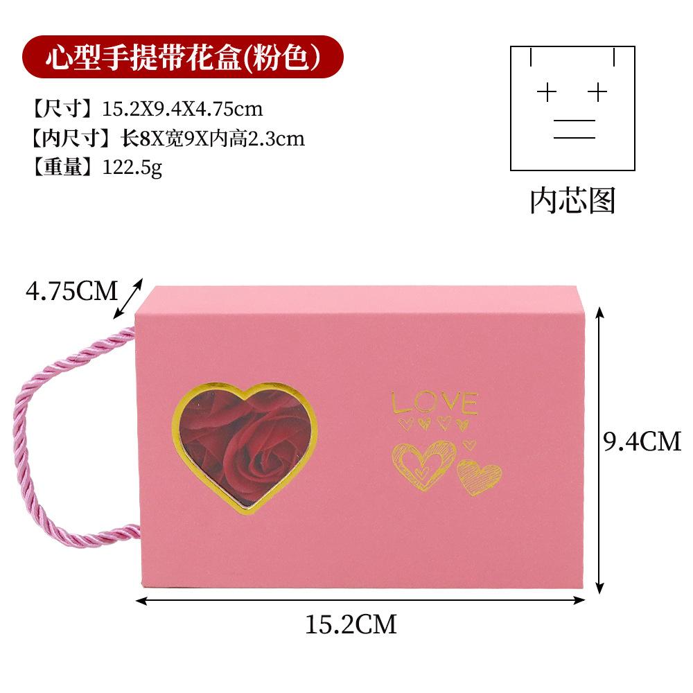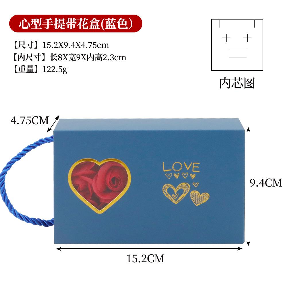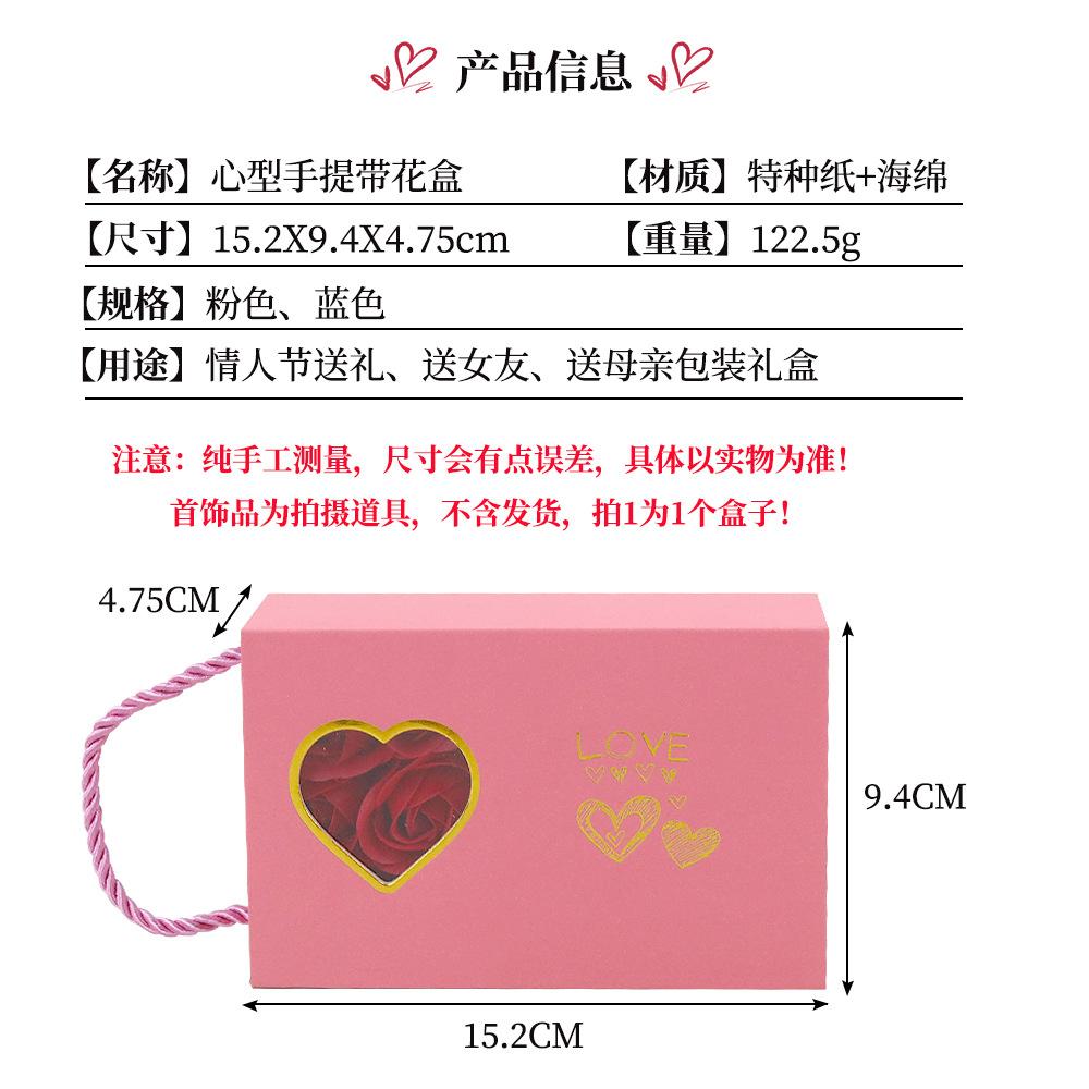 Heart-shaped handbag with flower box (blue);, Heart-shaped handbag with flower box (pink);