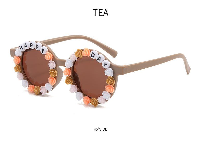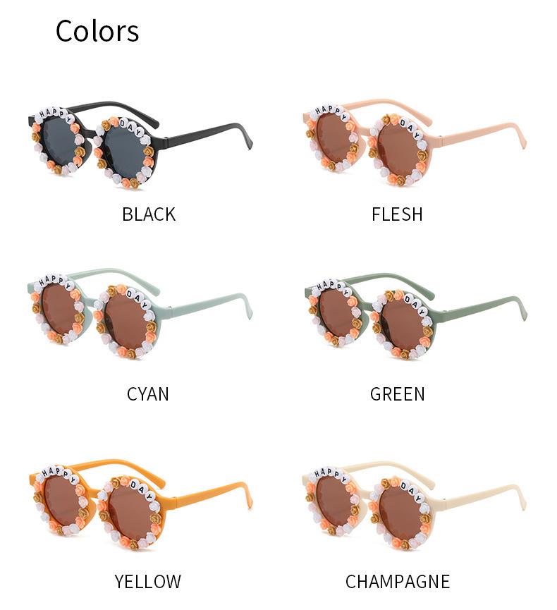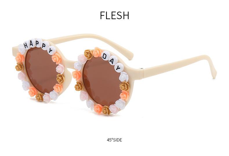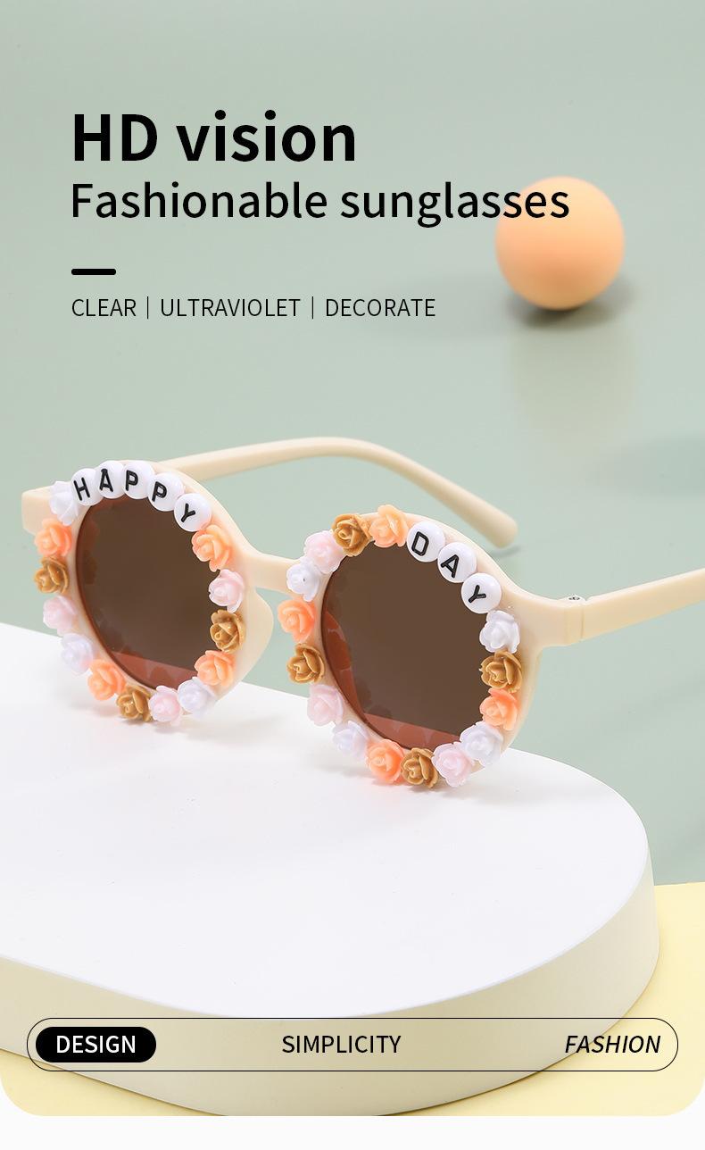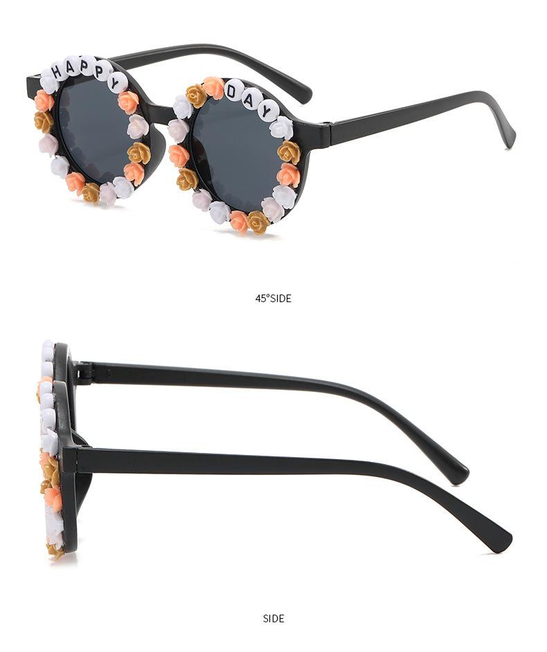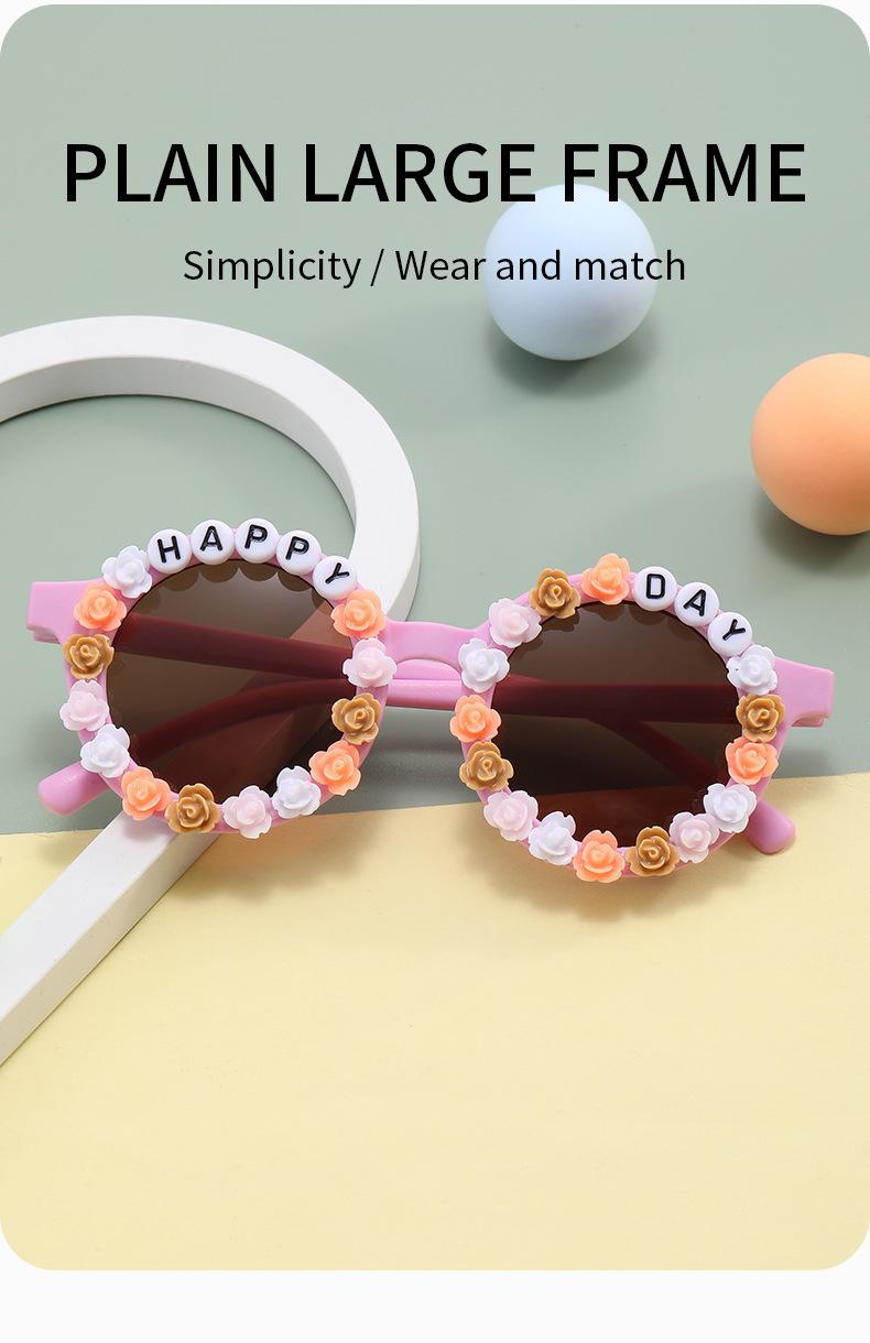 Gafas nuevas para niños 2023 con letras inglesas, lindas gafas de sol redondas para bebés, gafas de sol de flores para niños y niñas